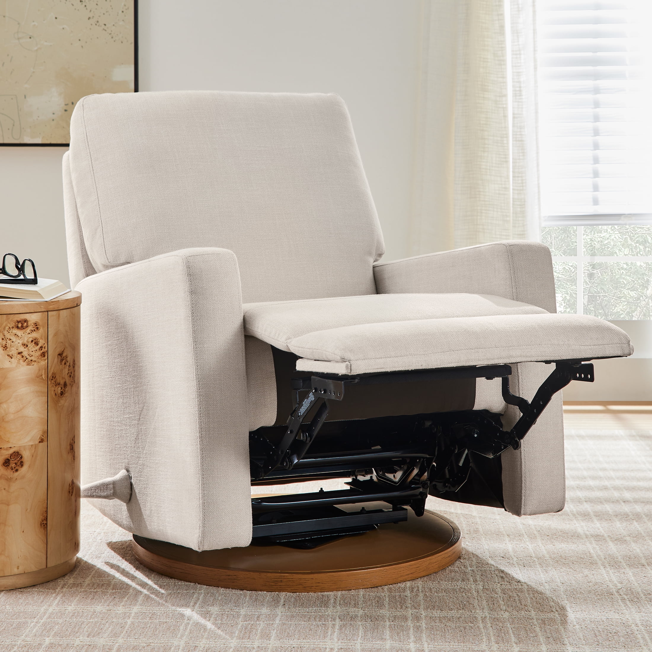 Better Homes & Gardens Modern Farmhouse Swivel Glider Recliner, Cream Linen