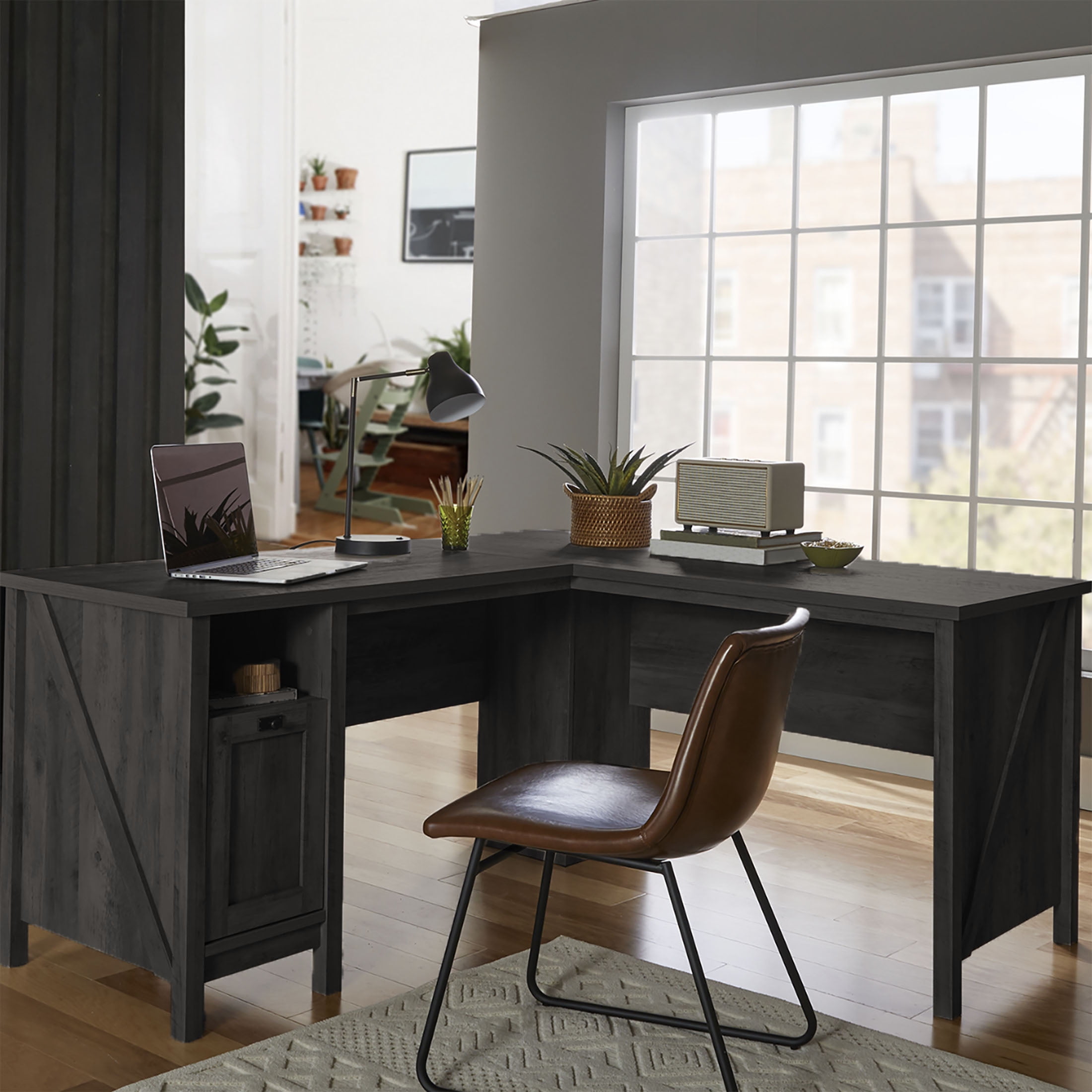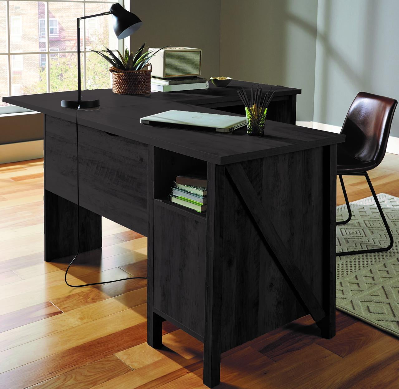 Better Homes & Gardens Modern Farmhouse L-Desk, Black Finish