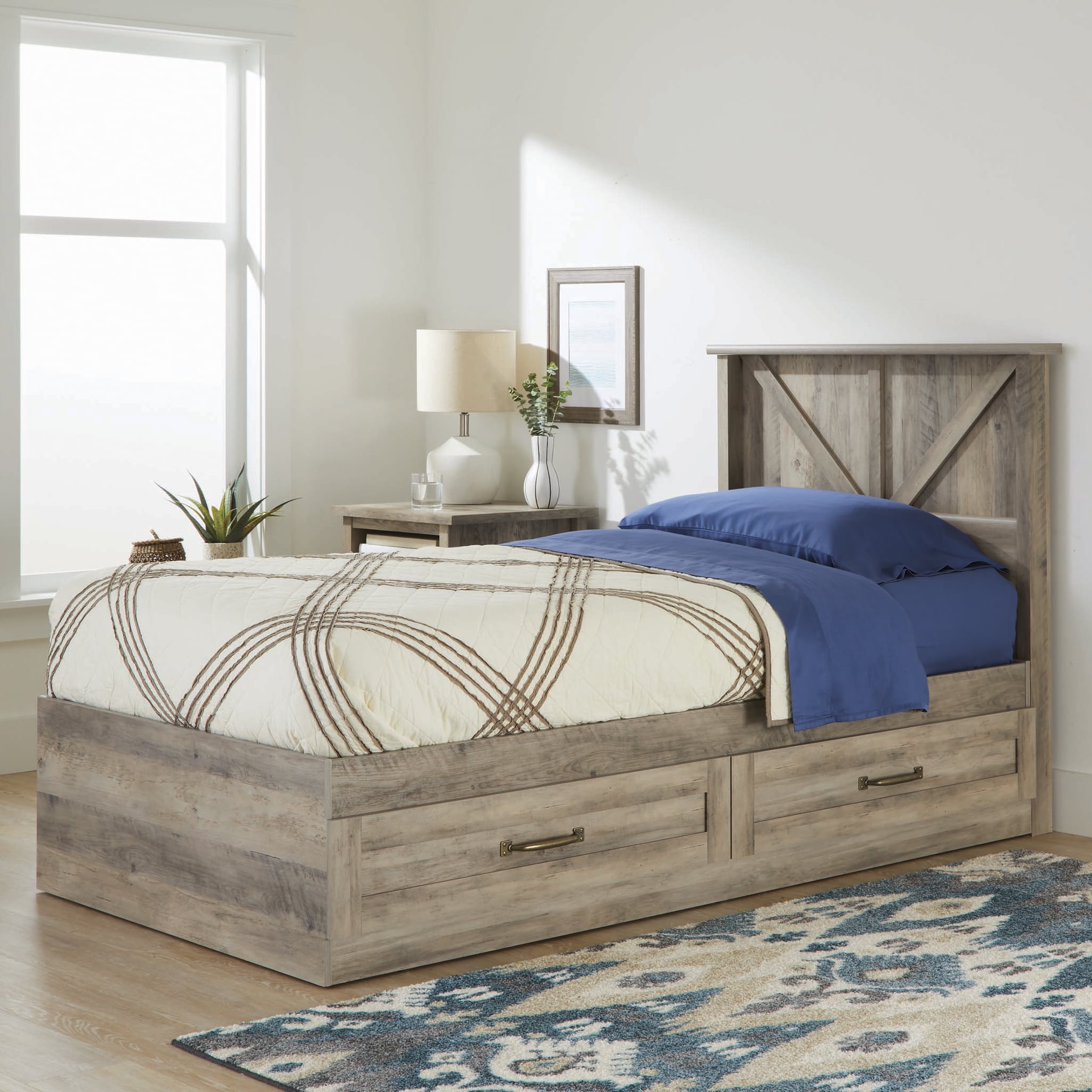 Better Homes & Gardens Modern Farmhouse Platform 2-Drawer Storage Bed, Twin, Rustic Gray Finish