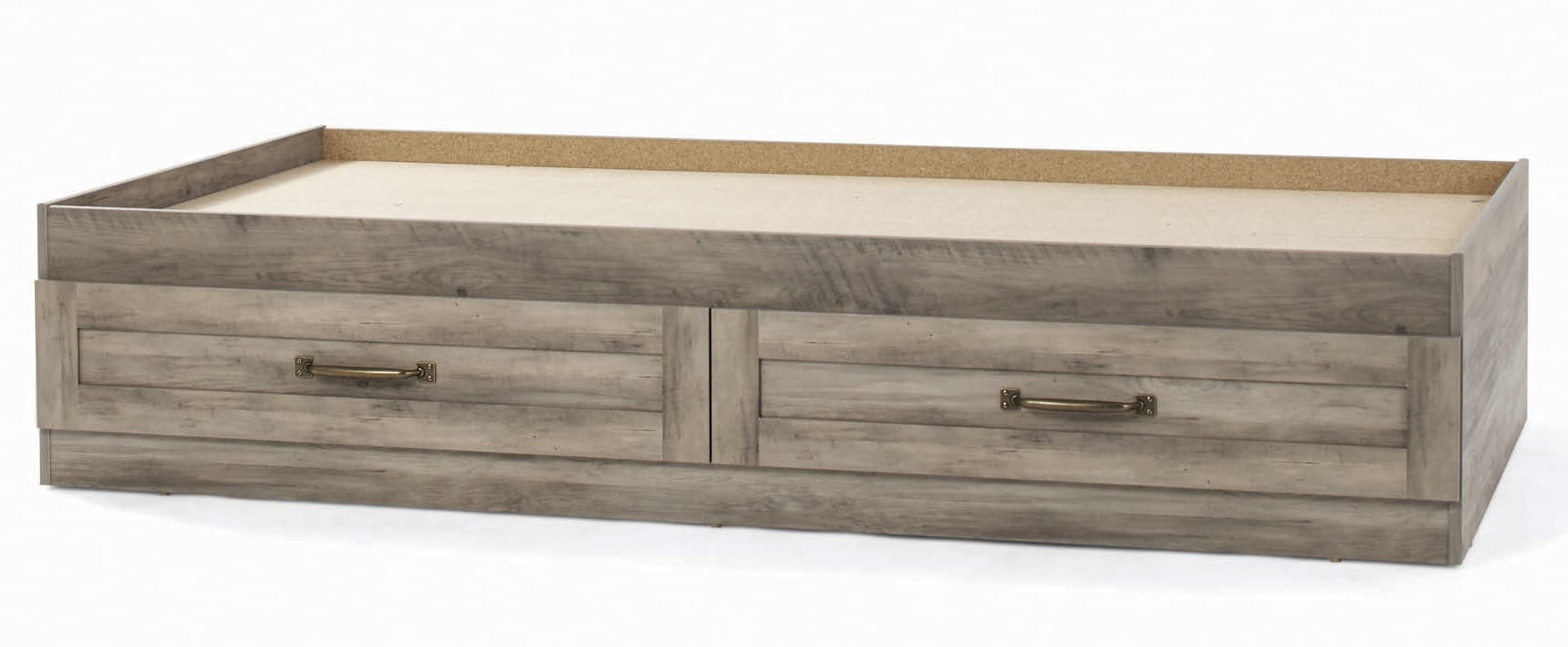 Is your sleepy bedroom decor in need of a wake-up call? We’ve got you covered. Give your bedroom a fresh, new look and begin to snooze in style with this mates bed from the Better Homes & Gardens Modern Farmhouse collection. Its convenient under the bed storage includes two large storage drawers that open and close on smooth metal runners. Both drawers feature a removable divider for versatile storage options of an array of different items. Enjoy an easy access space to stow away anything from stacks of sweatshirts and shoes to board games and an extra set of sheets and blankets. You can find room for all your stuff! It accommodates a twin-sized mattress to give you a completed look, whether it is in your master suite or down the hallway in the guest room. It adds cozy style and simplistic beauty no matter where it rests. Its detailed with framed panel doors and stylish hardware to give it its charming good looks. Finished in Rustic Gray, this mates bed is everything your bedroom needs.