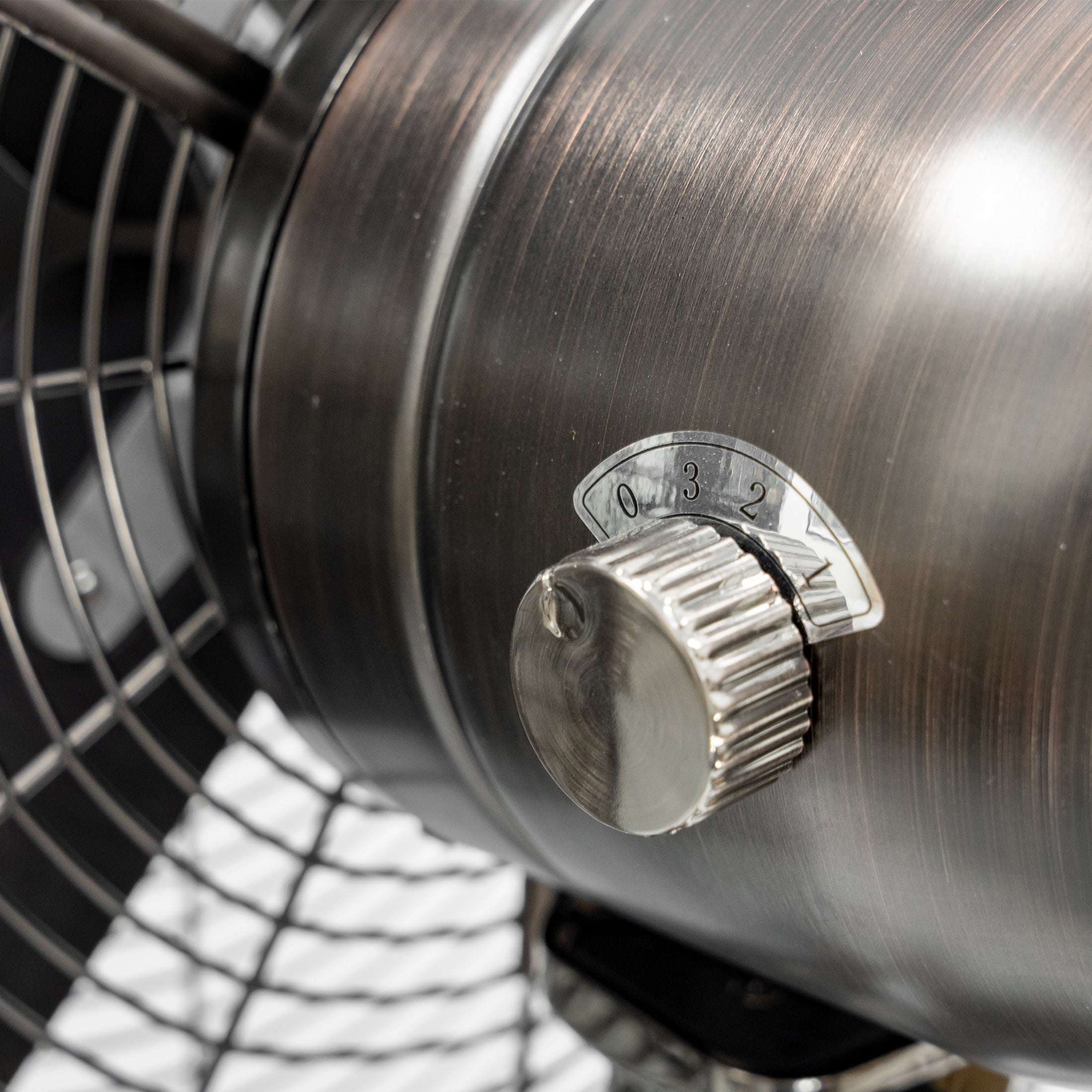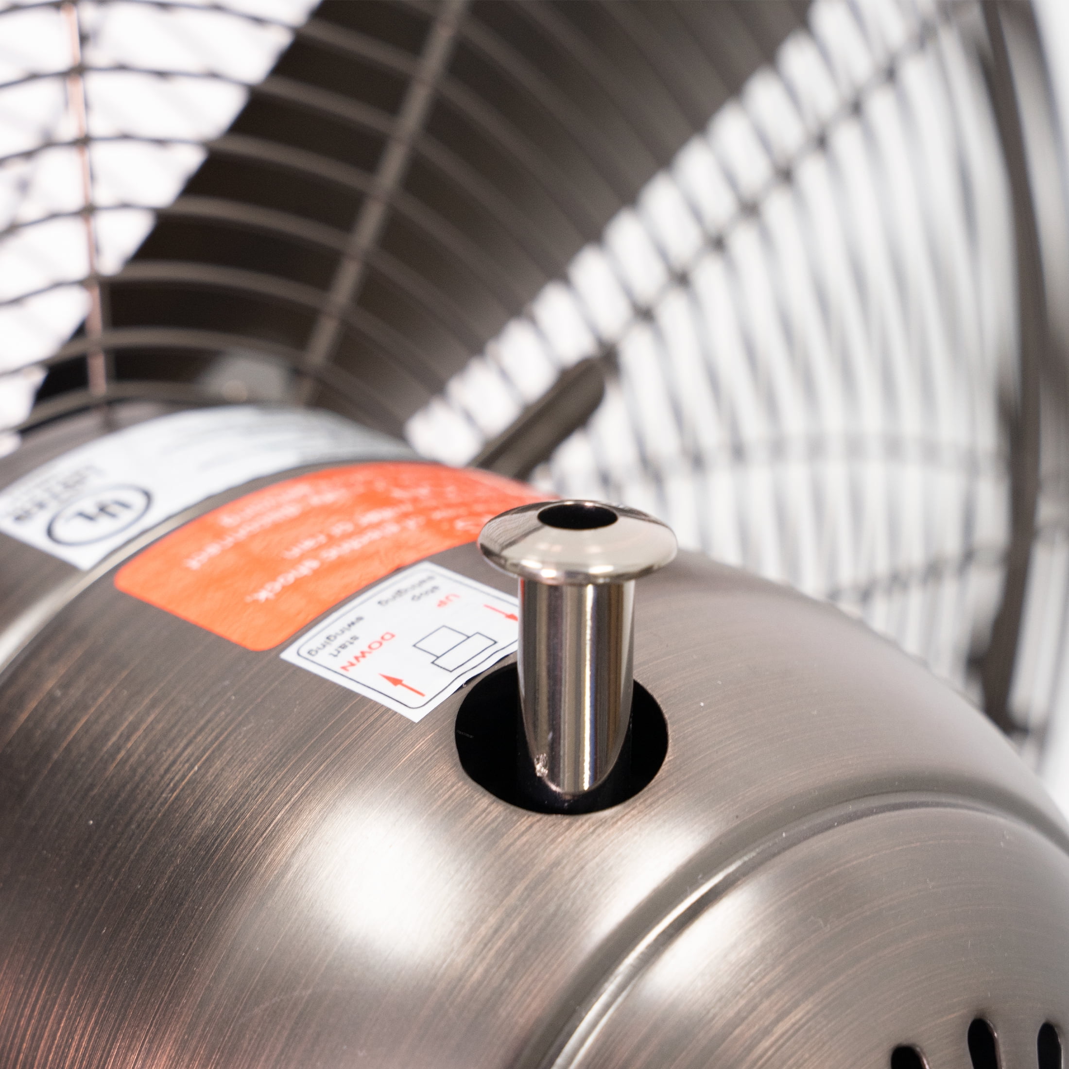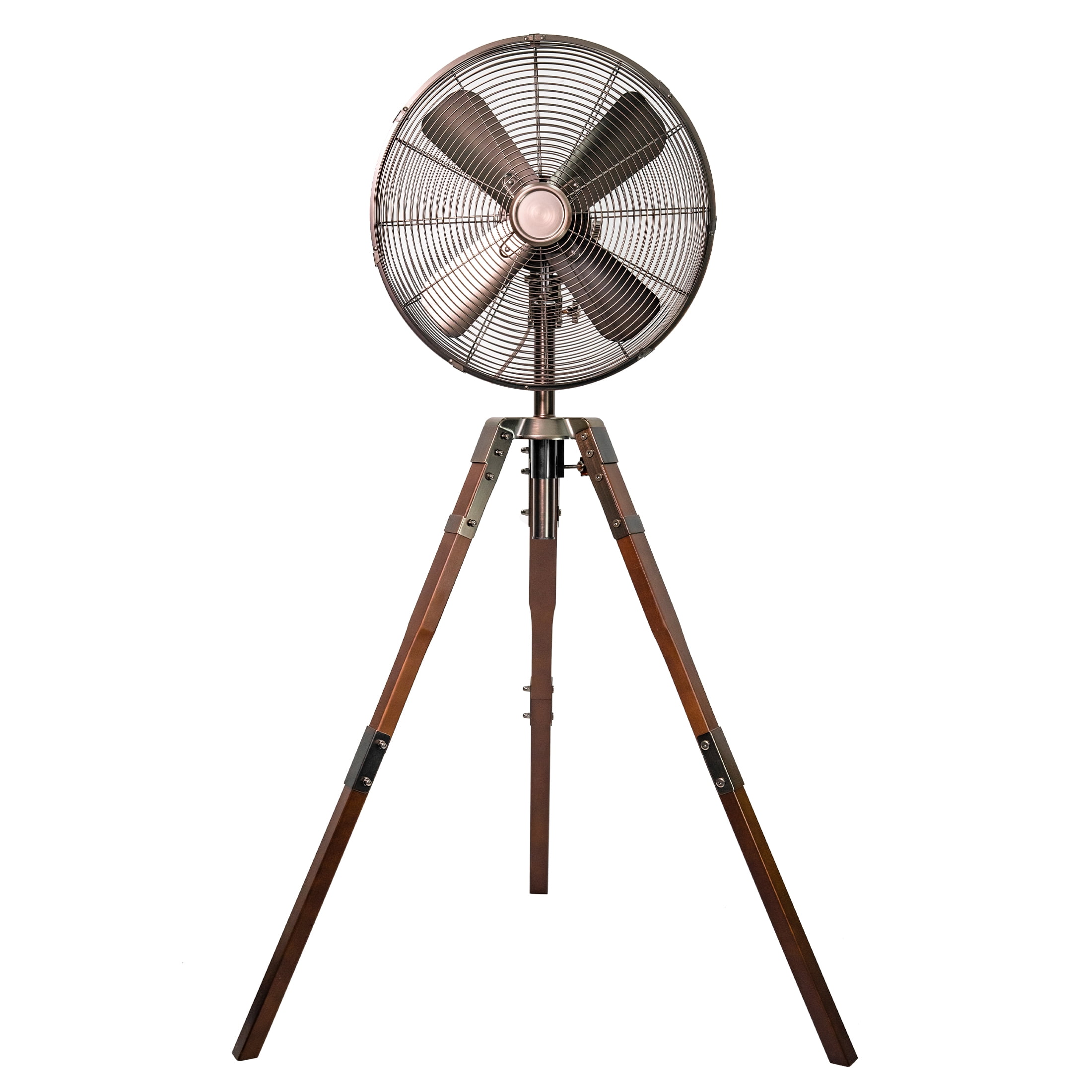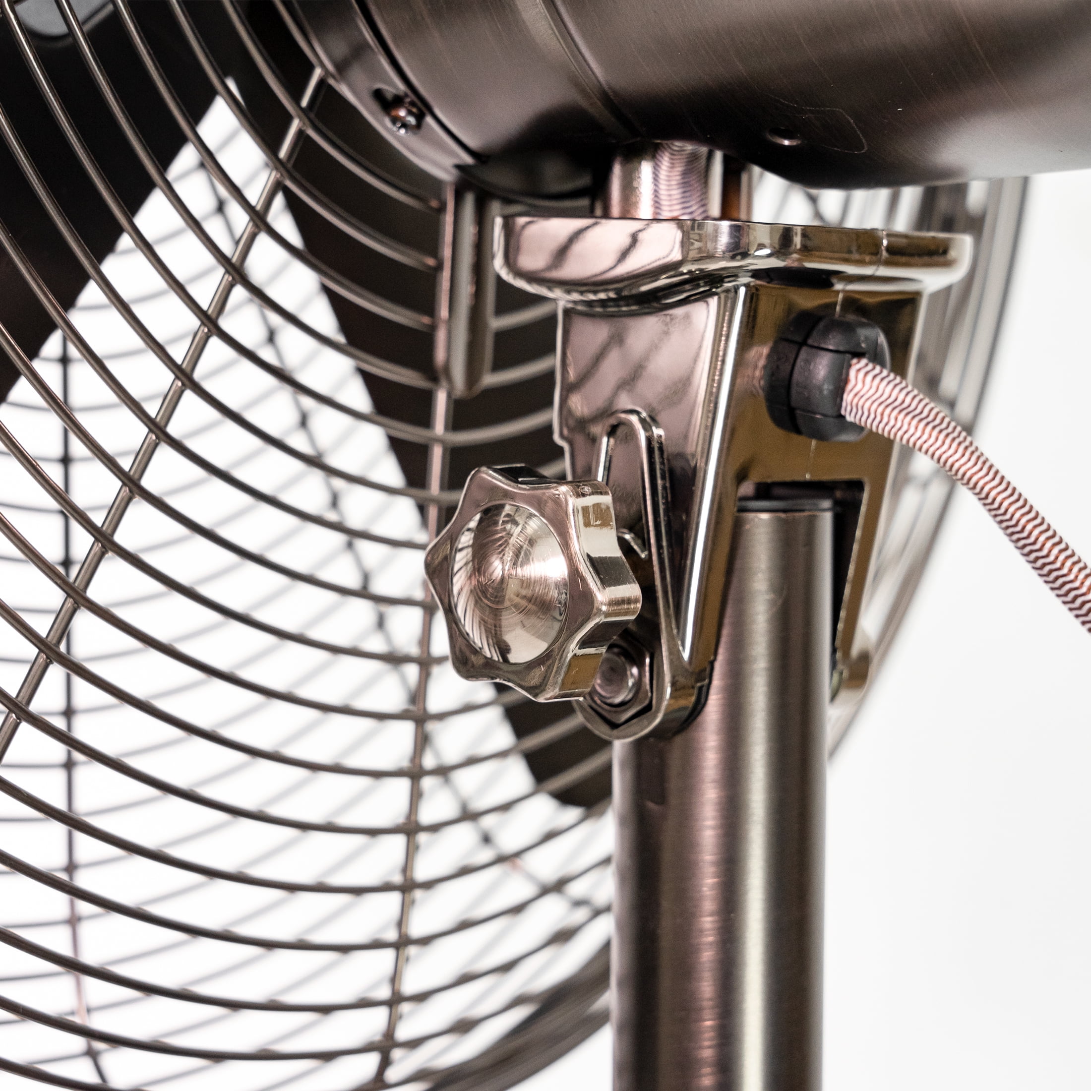 Retro-styled, vintage looking Stand fan Durable metal construction for a long life Oscillation covers the entire space with adequate airflow 110 inch length cord included Assembled height of 51 inches Adjustable Tripod legs UL Listed Customer service: (855) 540-2883 or [email protected]