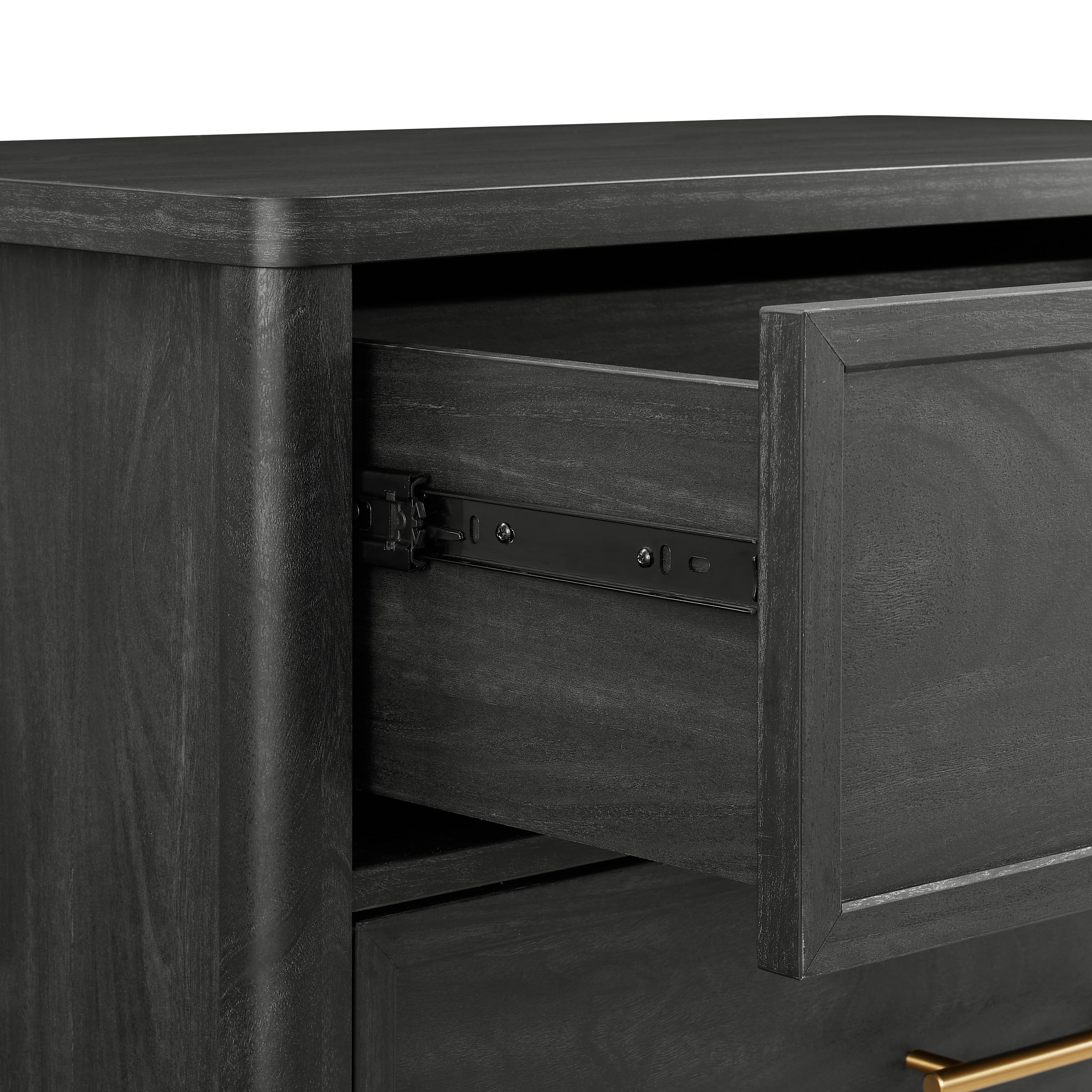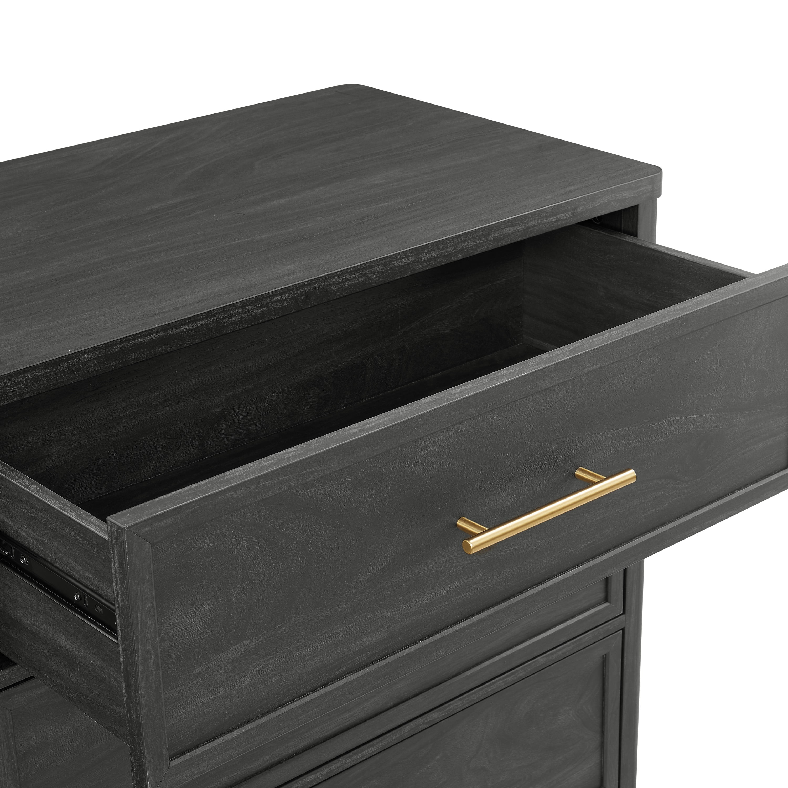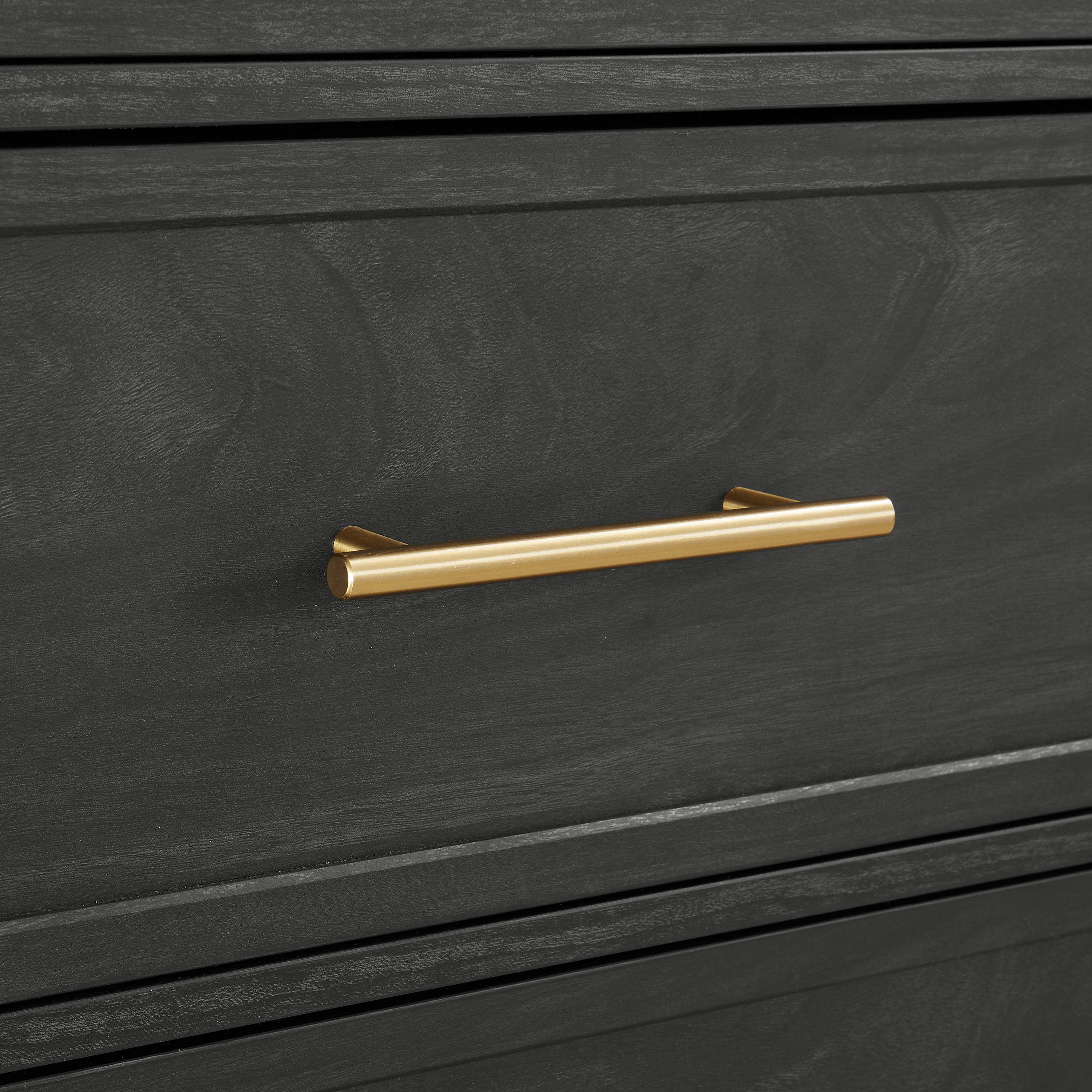 Add stylish bedroom storage with the Better Homes & Gardens Oaklee 4-Drawer Dresser in Charcoal for Adult. This contemporary dresser features four extra-deep drawers and raised legs with rounded edges for an elegant look. Style it in your bedroom for clothing or as a storage table in your entryway, hallway, or office. The wide tabletop can be used for lighting, storage trays, and décor, while the sturdy metal legs ensure long-lasting durability. Finished in a smooth, glossy charcoal with natural wood texture and gold handles, this dresser makes a great addition to any room. Pair it with matching contemporary furniture from the Better Homes & Gardens Oaklee Collection to complete the look.
