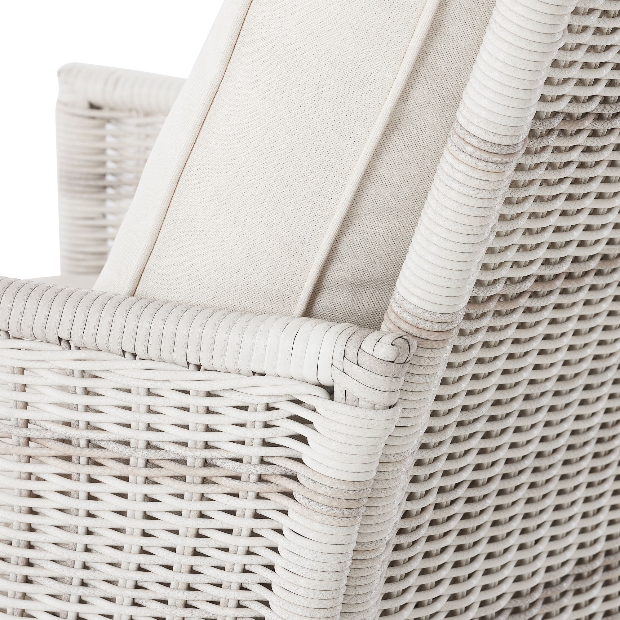 Outdoor, steel and wicker loveseat with cushions ideal for conversation and relaxation Features high-back design with white wicker frame and plush cushions Crafted with weather-resistant materials for all-season durability Relaxing comfort, reliable strength, and timeless style make outdoor loveseat ideal for any porch, patio, or deck Coordinates with other pieces in the Better Homes & Gardens Paige outdoor furniture collection (sold separately) Includes instructions and a weatherproof cover Materials: Steel, polyethylene wicker, polyester fabric, weather-resistant fiberfill Weight capacity: 500 lbs Seat height: 12.2″; seat back height: 22.44″ Assembled dimensions: 29.92″L x 50.39″W x 33.27″H Weight: 50.66 lbs Care: Clean with a soft cloth and mild soap Shipping dimensions: 49.21”x12.2”x29.53” Shipping Weight: 61.6lbs