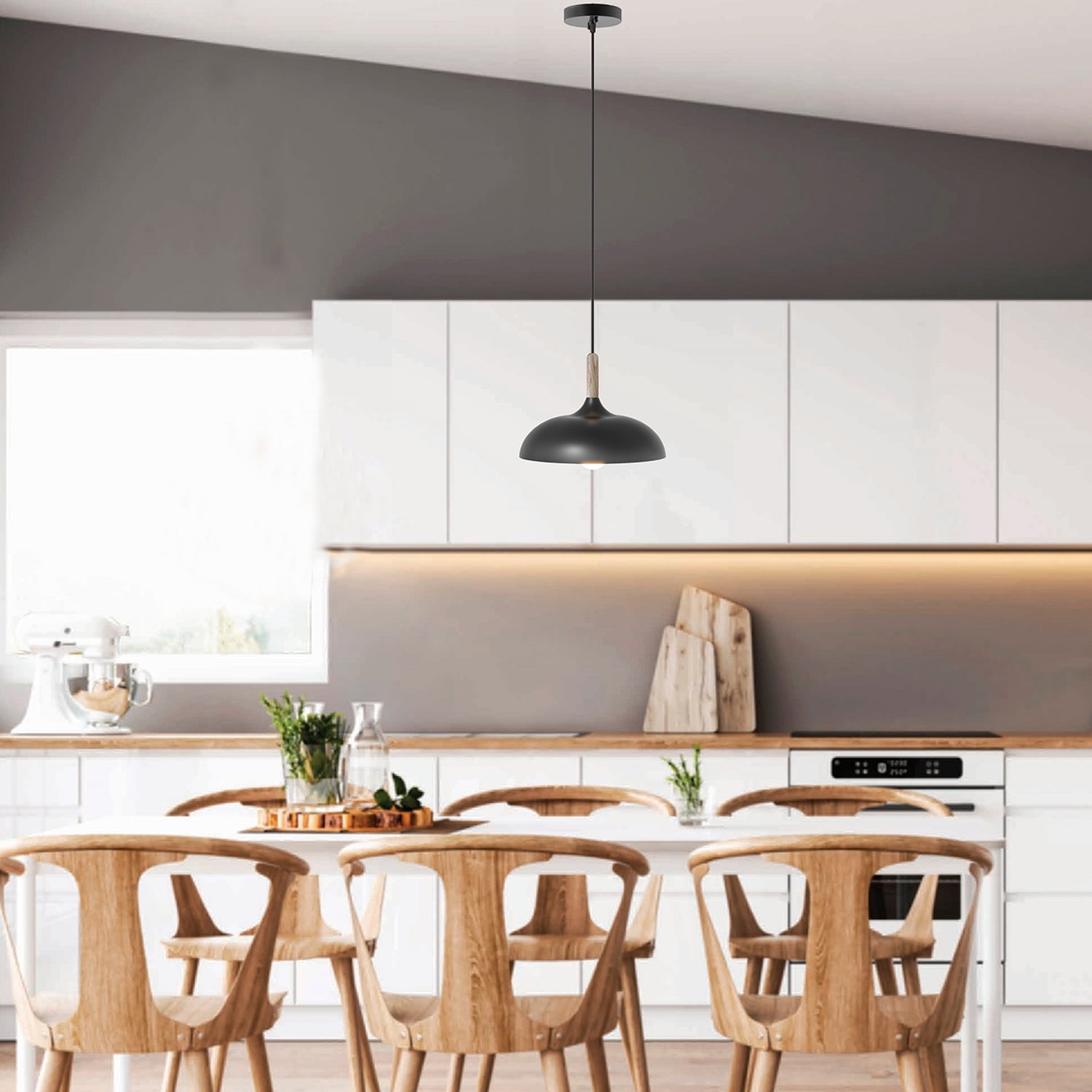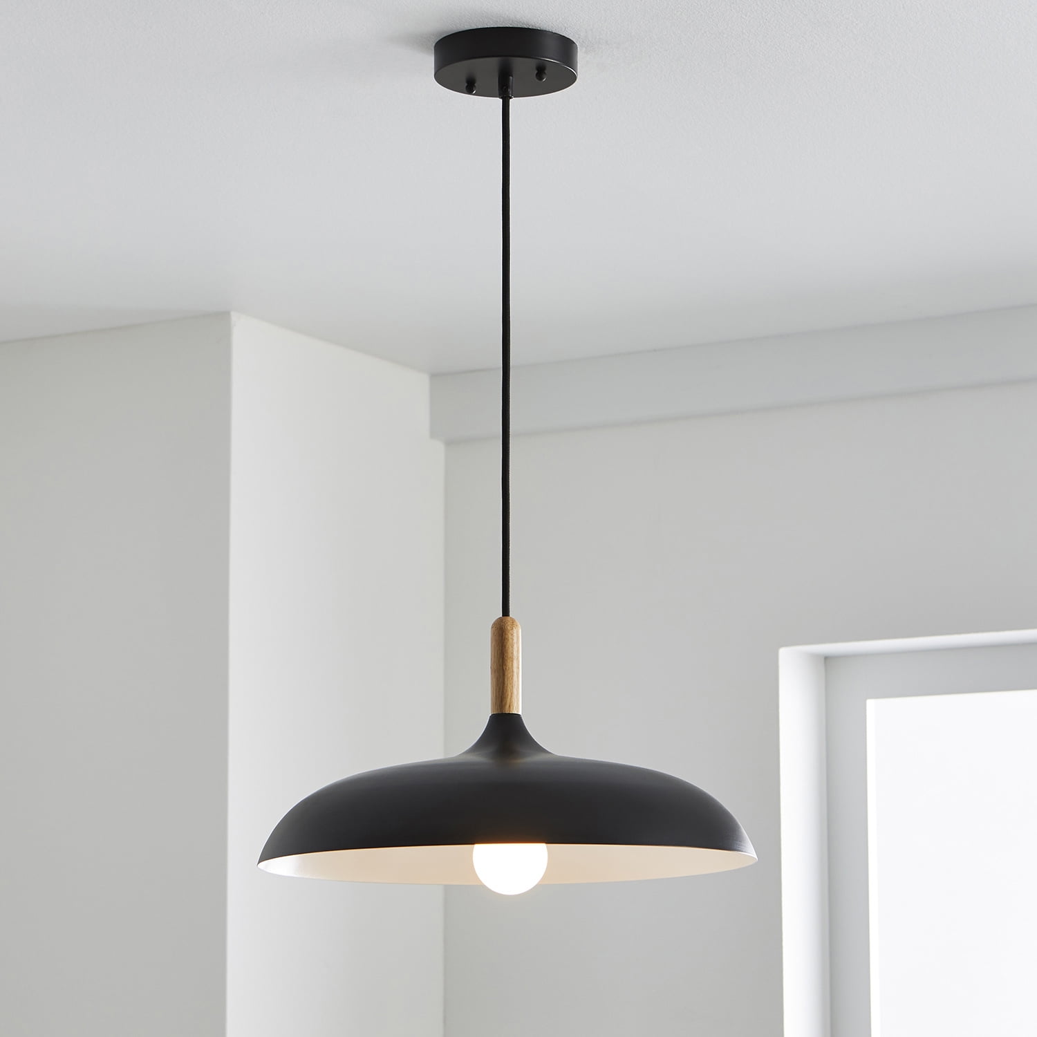 Better Homes & Gardens Single Head Pendant Light with Round Shade Matte Black Finish, A19 60W Soft White, Medium Base, Dimmable, 1 pack