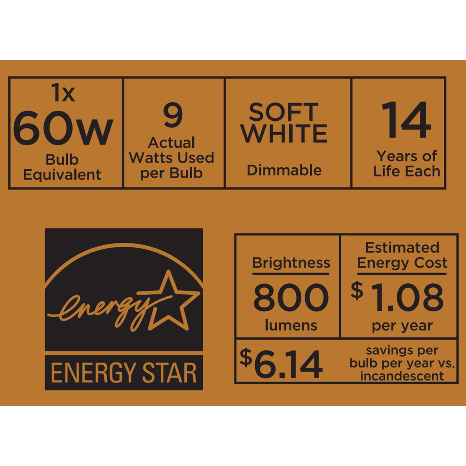 Matte Black Finish Classic design and includes one 60W Equivalent A19 LED bulb ENERGY STAR® certified 5 years limited life time warranty for defects in material and workmanship Size: 15.75×15.75×55.51IN Dimmable 1 A19 9W LED bulb Light output: 800 Lumen x 1 Color temperature: Soft white 2700K Estimated energy cost is $1.08 per year 15000H life time