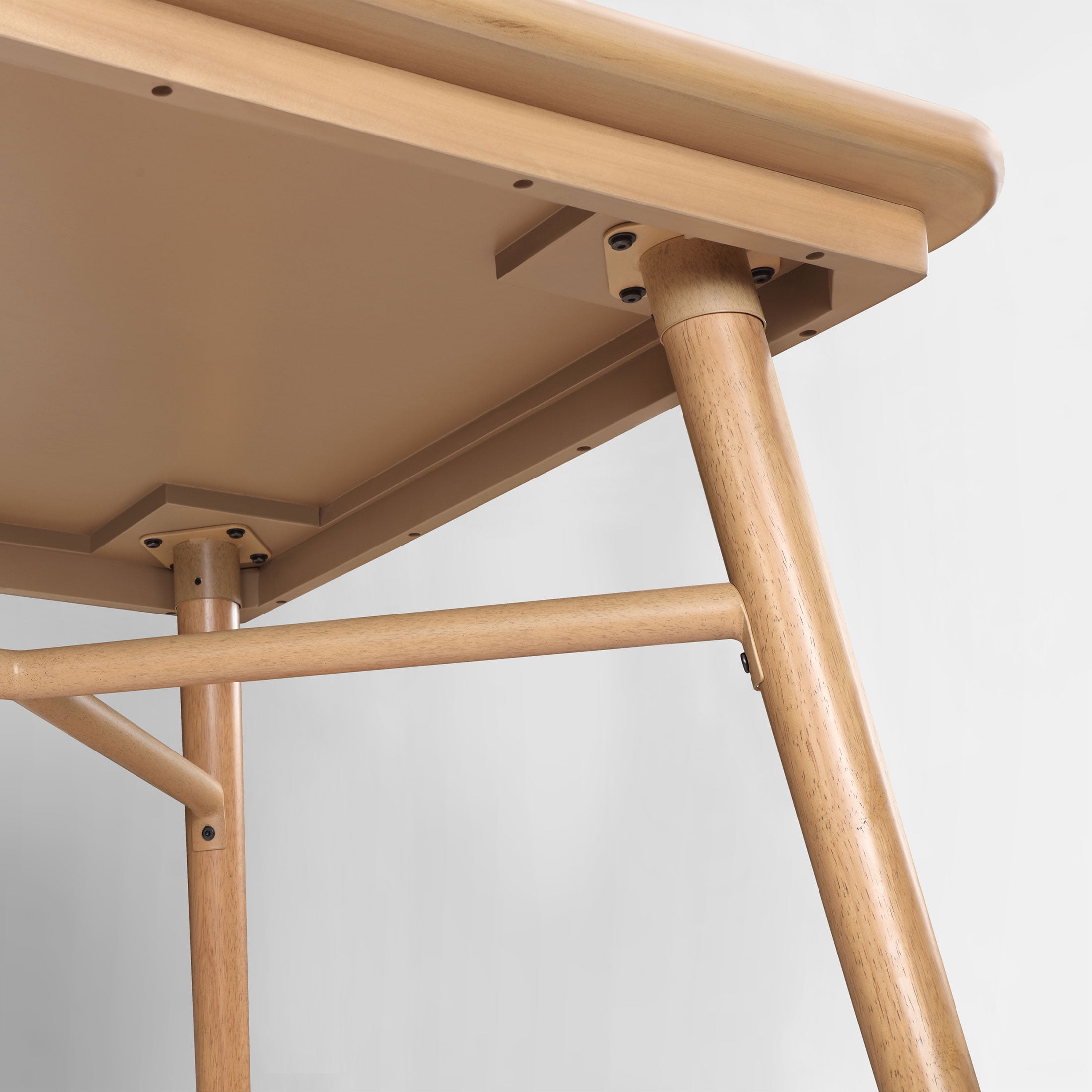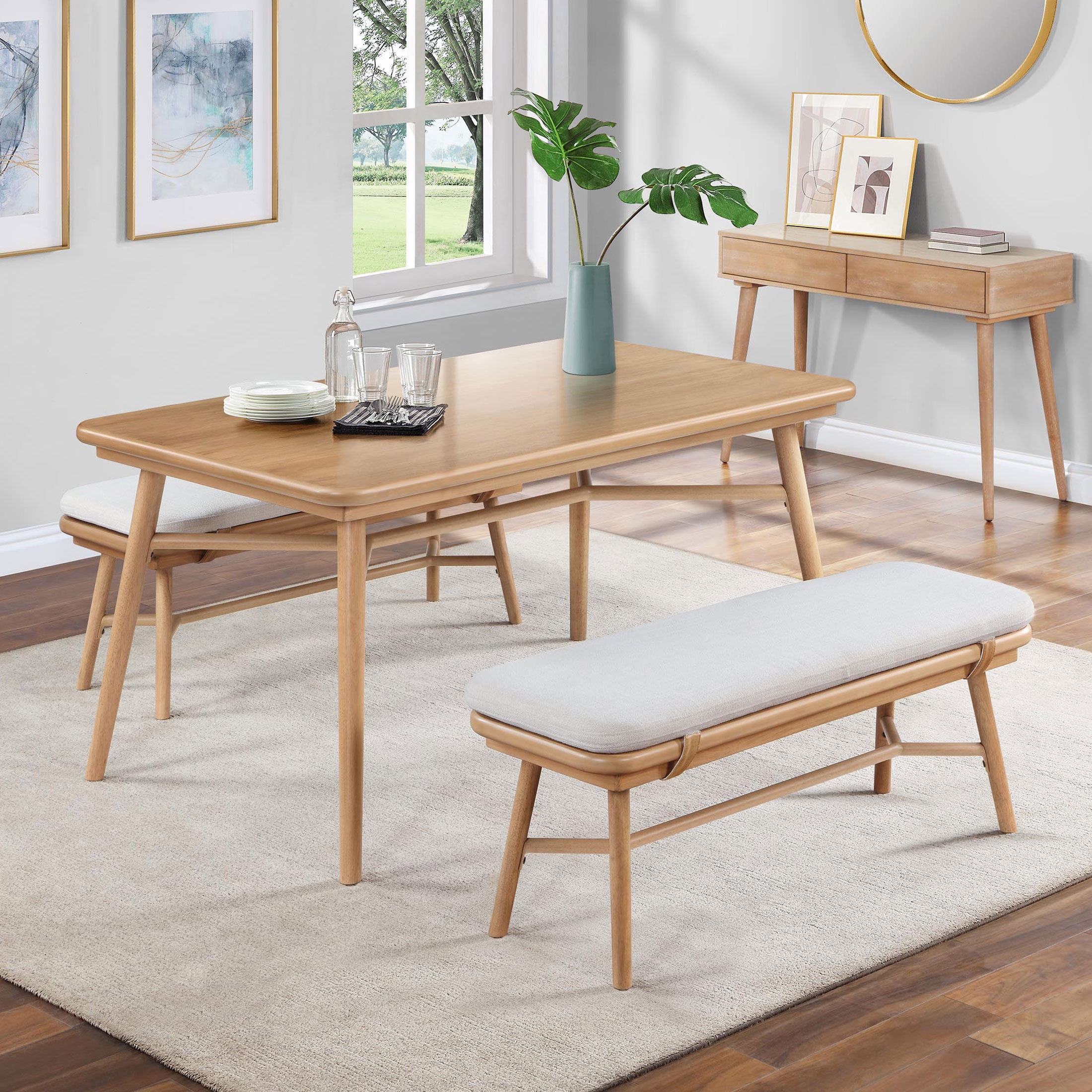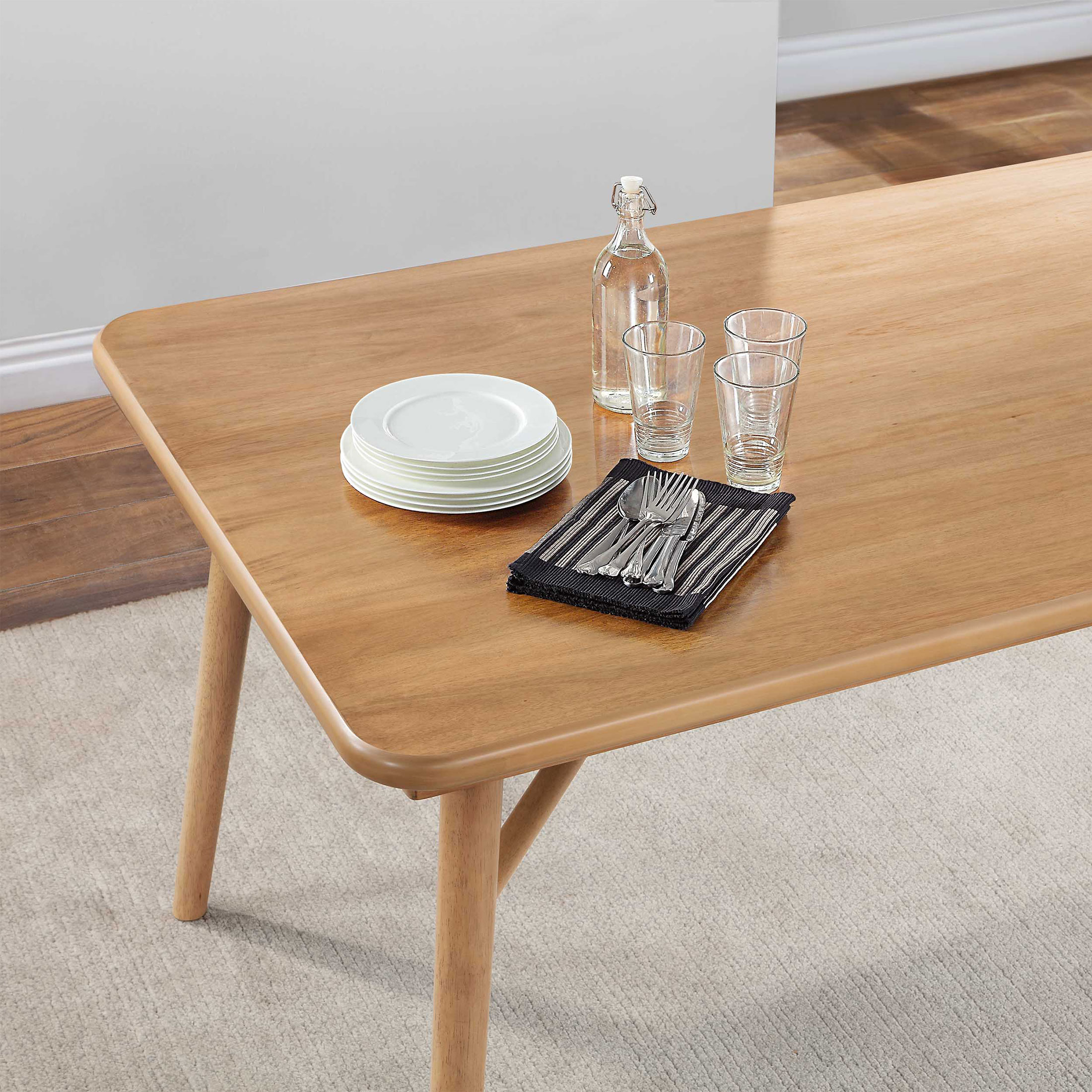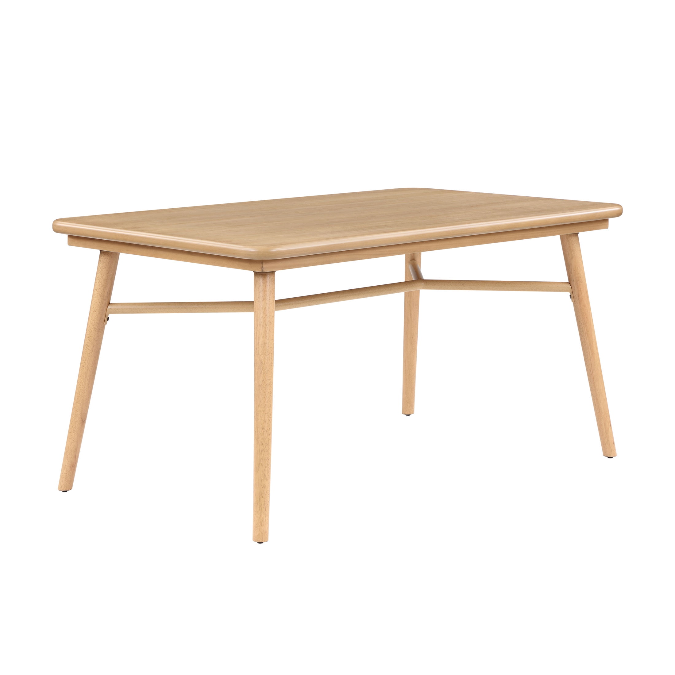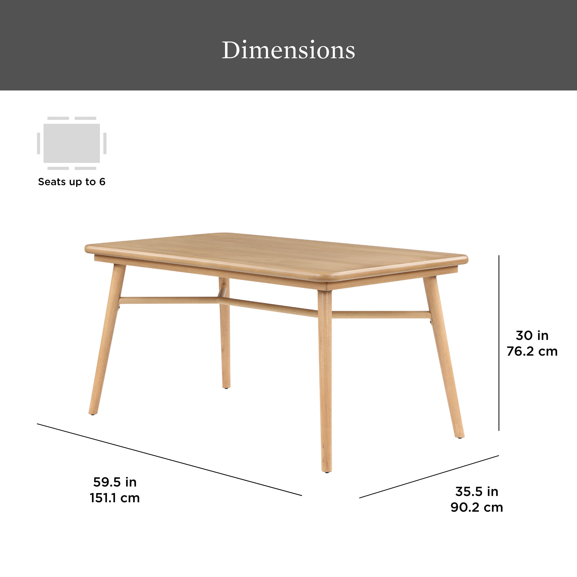 Better Homes & Gardens Springwood 59.5″ Rectangle Dining Table, Natural Wood Large table comfortably seats 6 people Versatile design allows it to be used as a desk in a home office Stylish black gunmetal painted support bar adds an industrial touch Sturdy wood construction ensures durability Mid-century design complements any kitchen or dining room