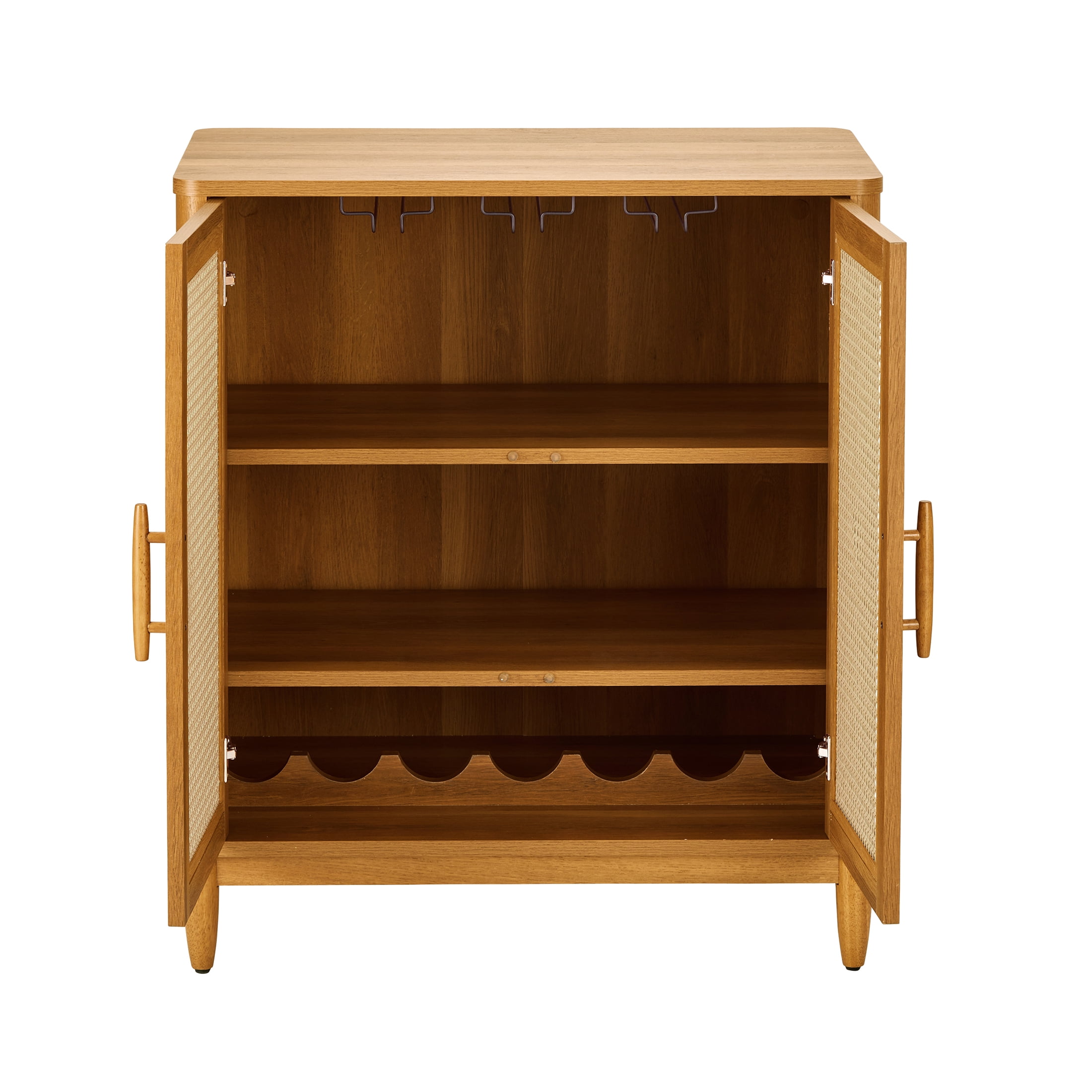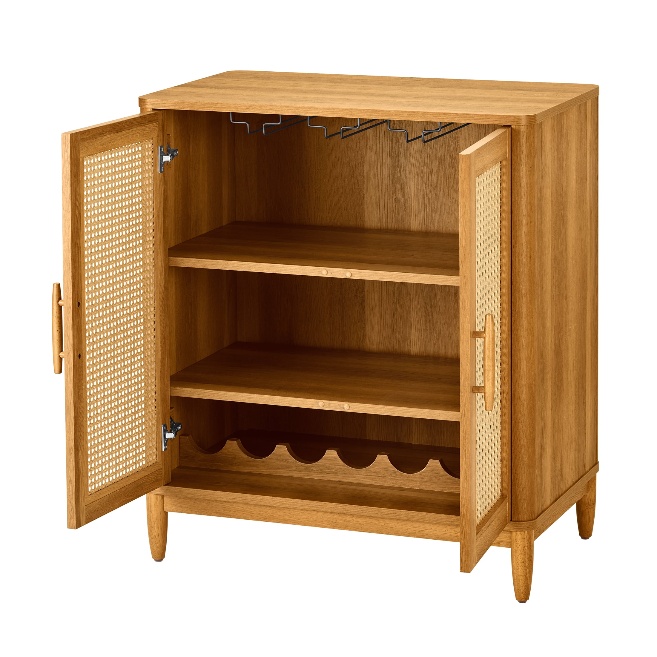 Better Homes & Gardens Springwood Caning Bar Cabinet, Light Honey Finish