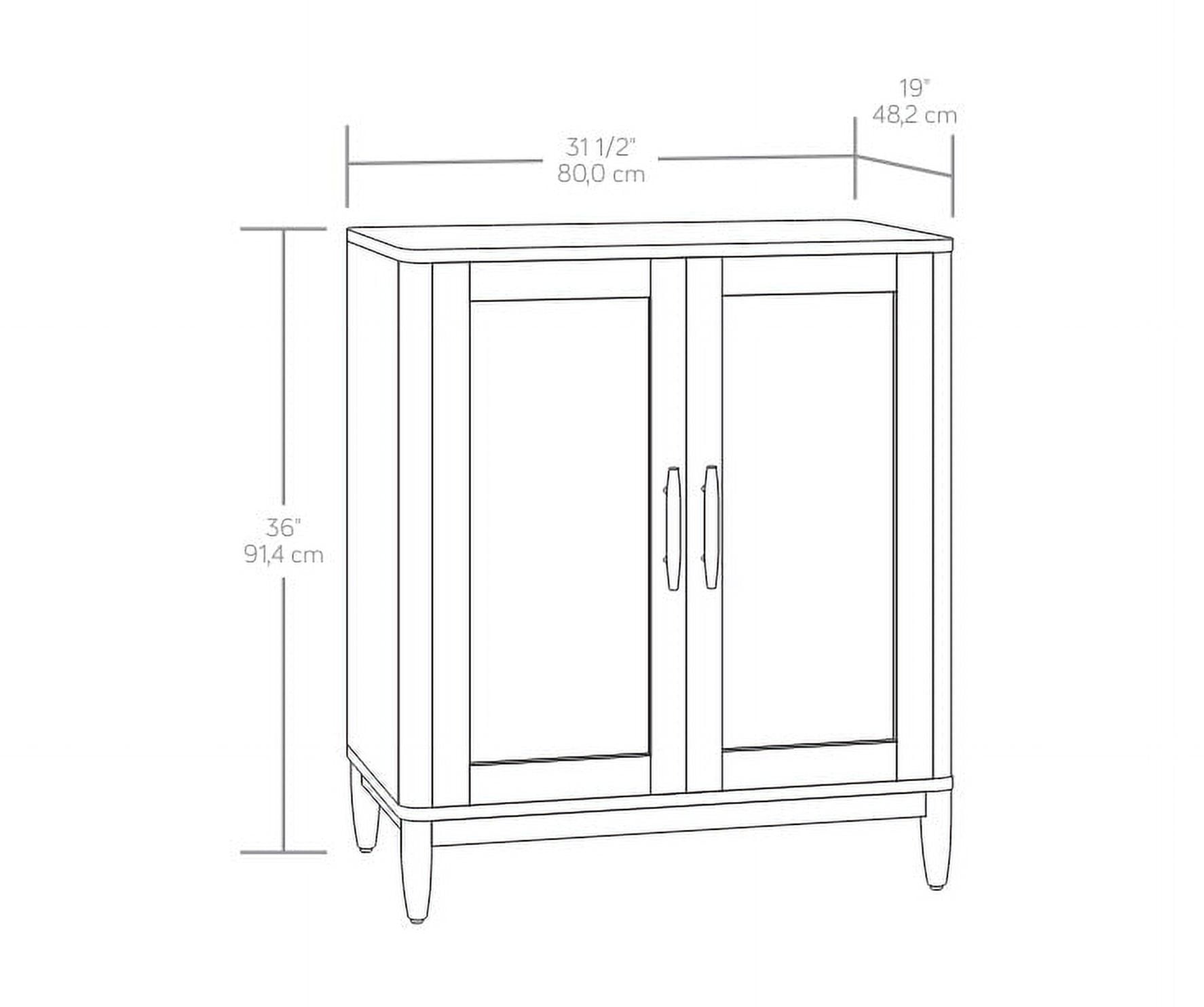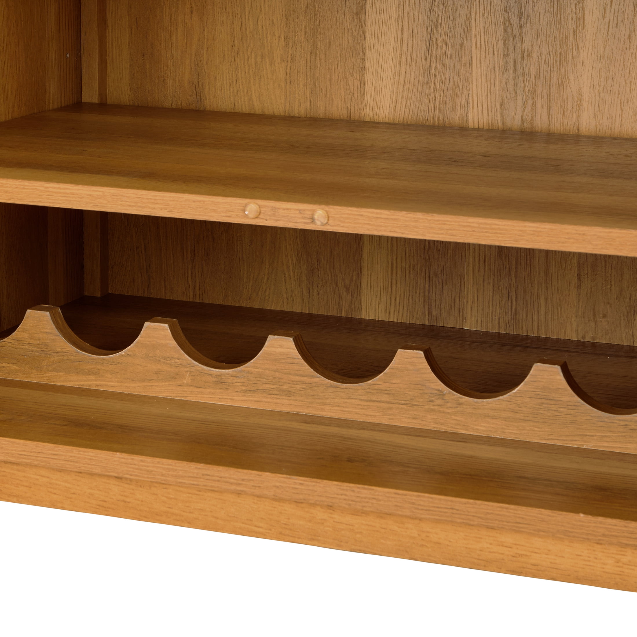Assembled Dimensions: 31.50″ L X 18.98″ W X 35.98″ H Hidden storage behind doors holds wine bottles, stemware, and bar accessories Three metal racks hold inverted stemware directly below the top surface to provide easy access Lower shelf features scalloped rail to hold seven wine bottles Two adjustable shelves accommodate various bar accessories Framed doors feature decorative rattan insert for a tropical appeal Solid wood feet with adjustable levelers ensure cabinet stability Solid Wood Accents Light Honey finish Model #: 437259 Box Dimensions: 37.52″ L x 22.87″ W x 12.52″ H For additional questions or any issues, please contact the manufacturer at 1-800-523-3987. Be sure to check out the Better Homes & Gardens collection for more great items!
