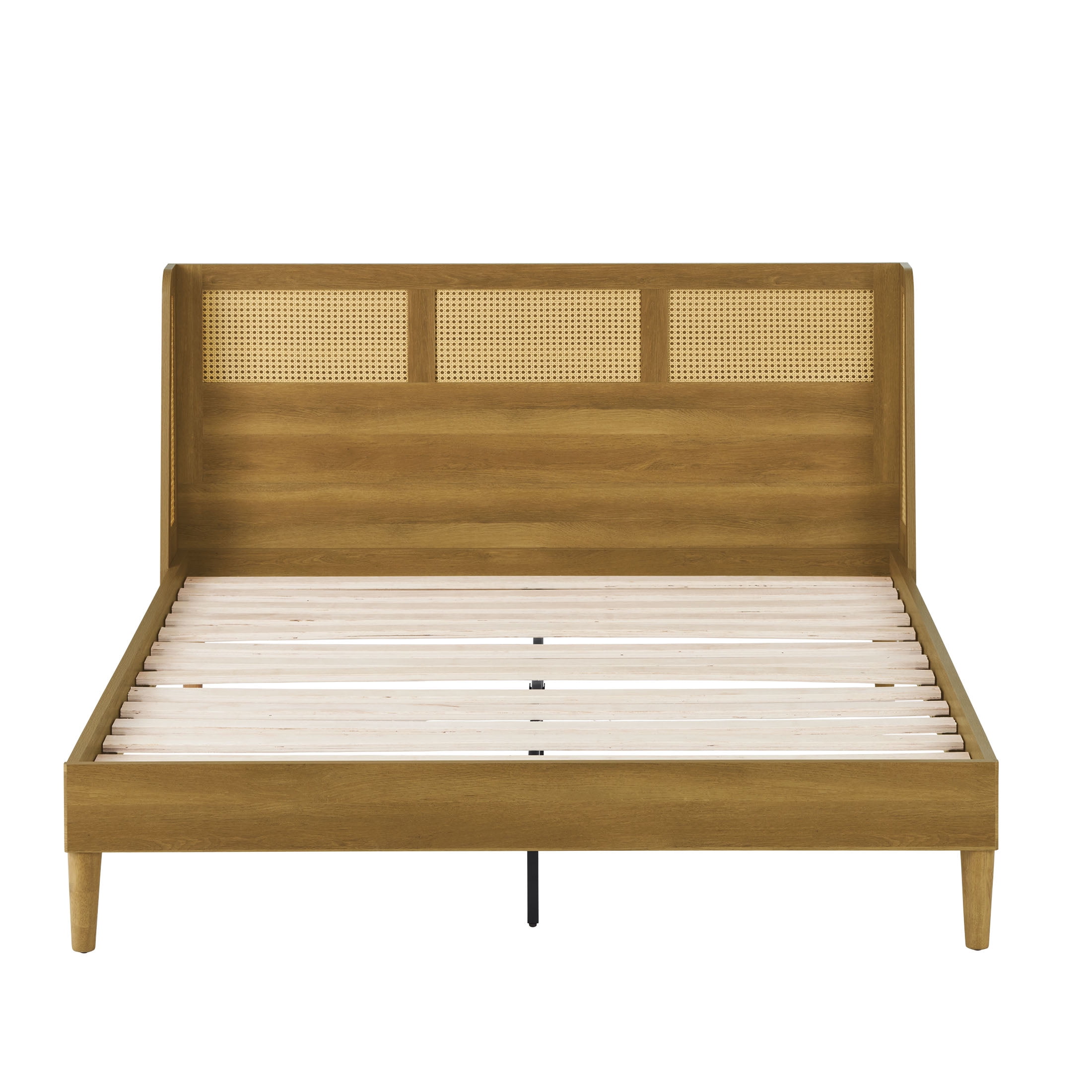 Better Homes & Gardens Springwood Caning King Platform Bed With Headboard, Light Honey Finish