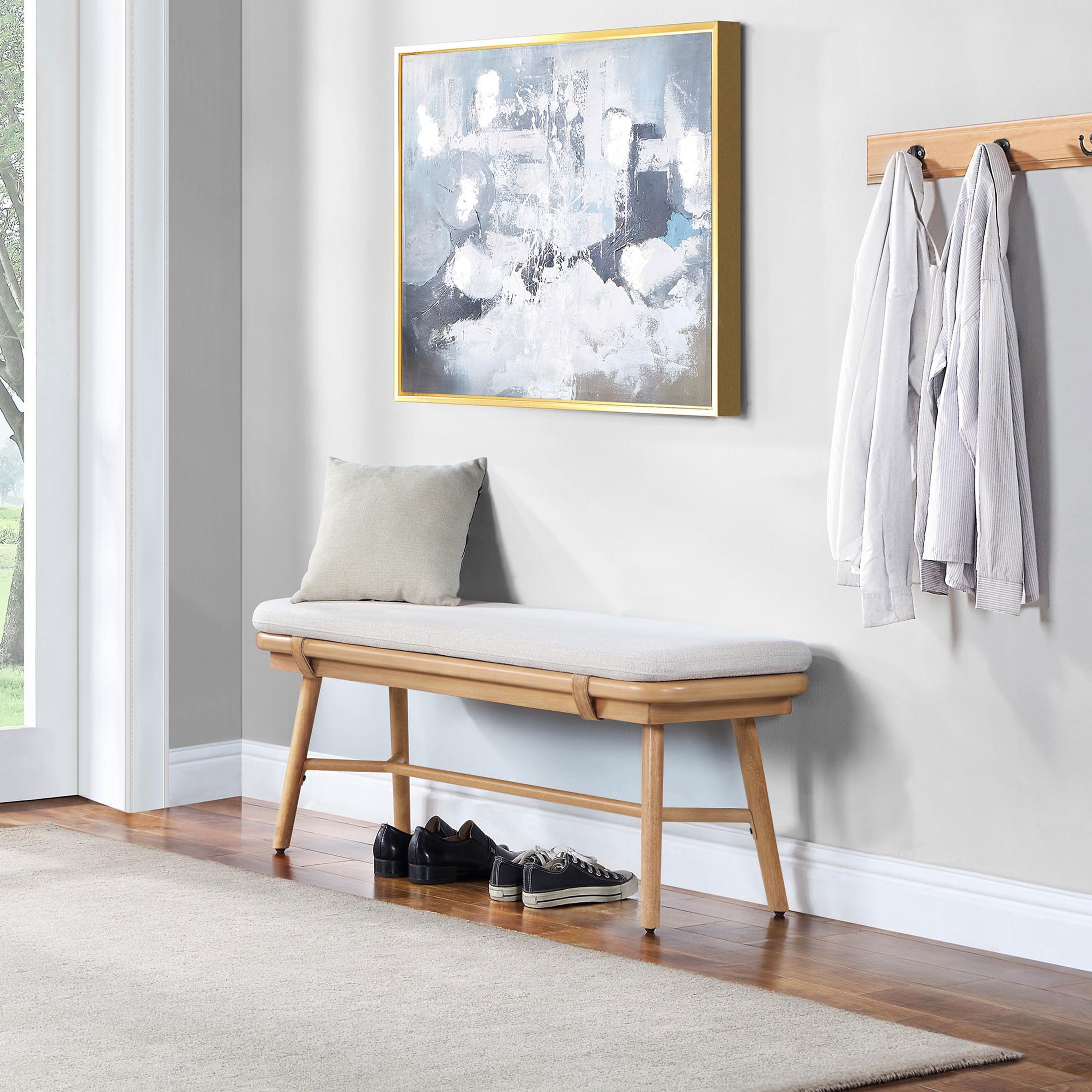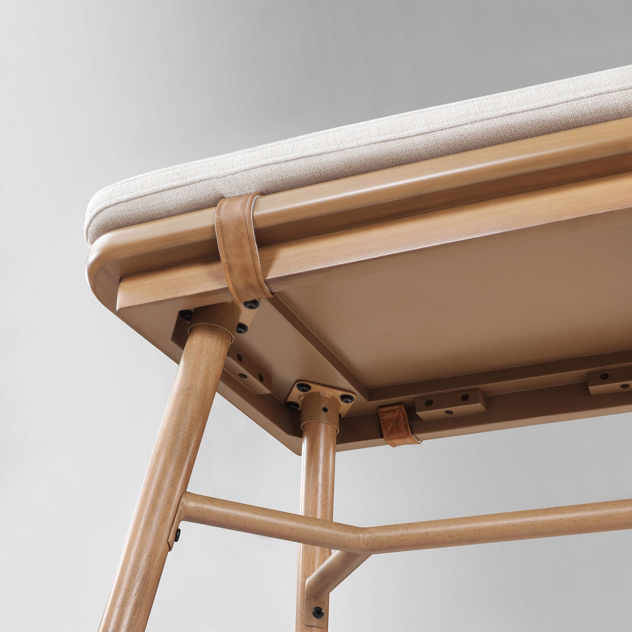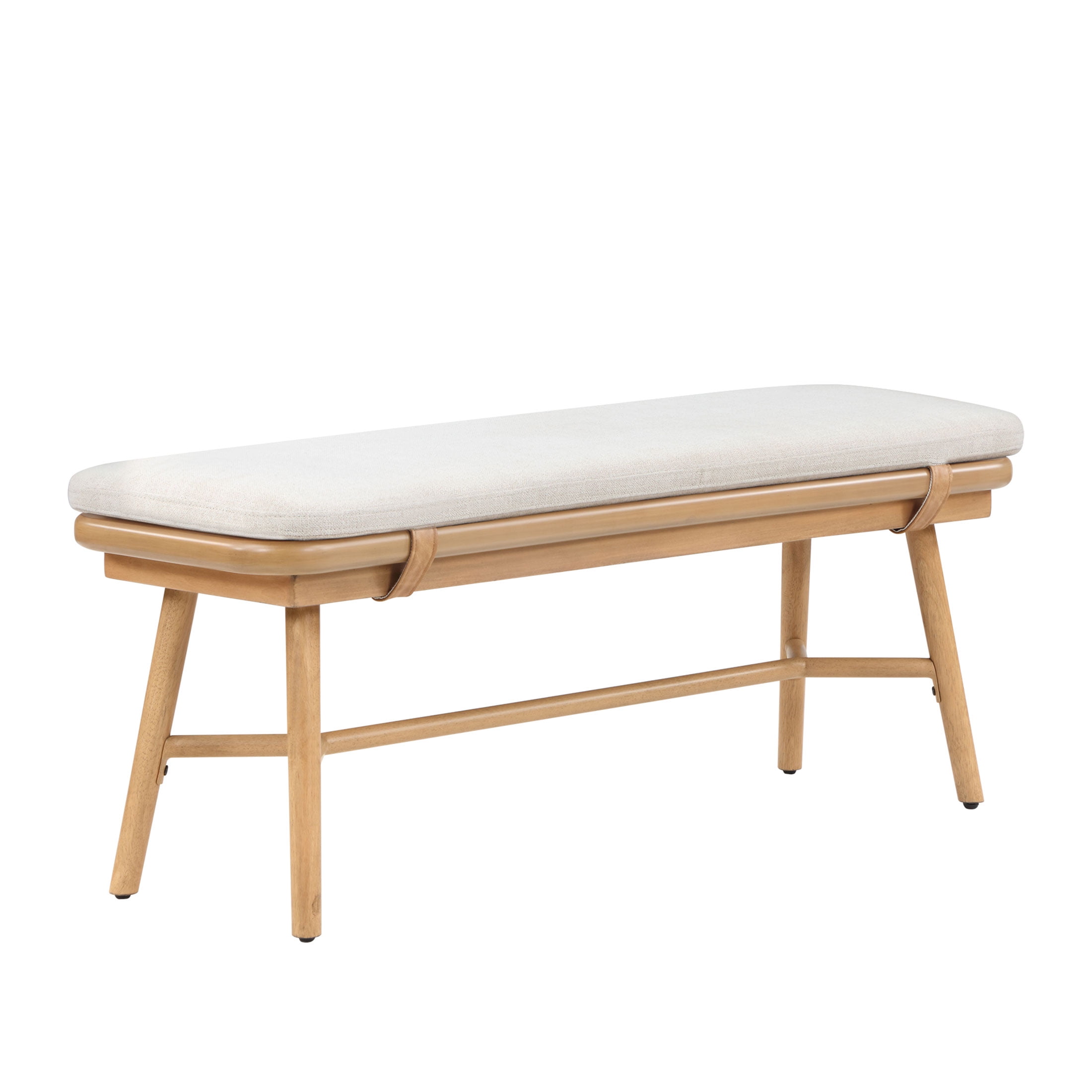 Comfortably seats 2 people Sturdy rubberwood construction Faux leather velcro fastening straps help hold seat cushion in place Bench is available in multiple finishes: Charcoal and Natural Seat cushion is filled with a comfortable foam padding Stylish, black gunmetal painted support bar Plush, removable beige fabric seat cushion Easy to assemble Dimensions: 48″ x 16″ x 18.25″ (121.9 cm x 40.6 cm x 46.4 cm) Packaging Dimensions: 50.75″ x 18.75″ x 7.75″ Packaging Weight: 46.06 lb (20.9 kg) Model# BHS336158813023, BHS336158813046, BHS336158813080