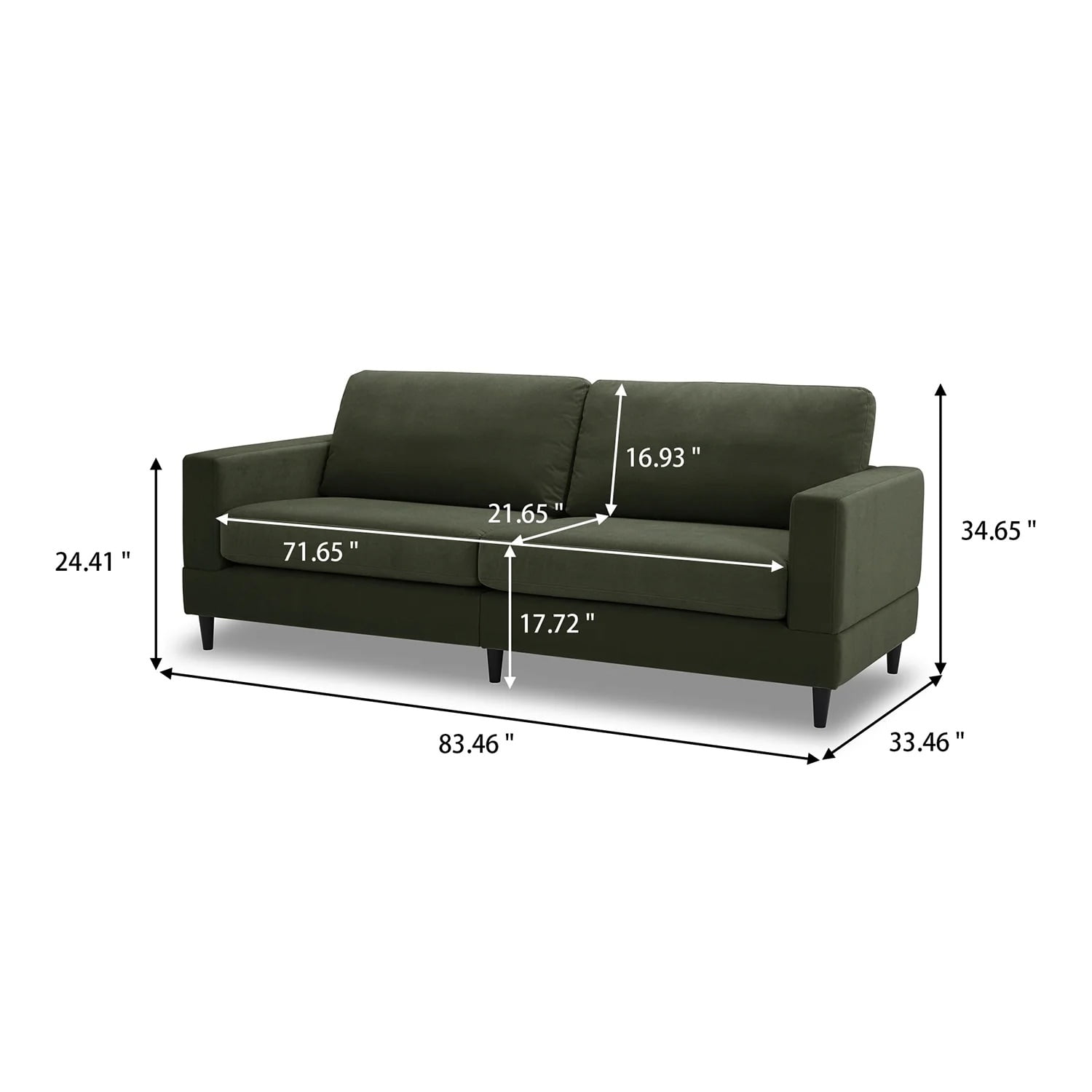 Better Homes & Gardens Springwood Wood Frame 83.46″ Sofa, Olive Velvet Padded track arms for exceptional comfort Premium reversible high-density foam cushions with no-sag seat suspension for quality you can trust Easy assembly – simply attach legs to base Sophisticated and timeless design Comfortable seating for three Olive Velvet Ideal for any living space This product is suitable for both adults and children