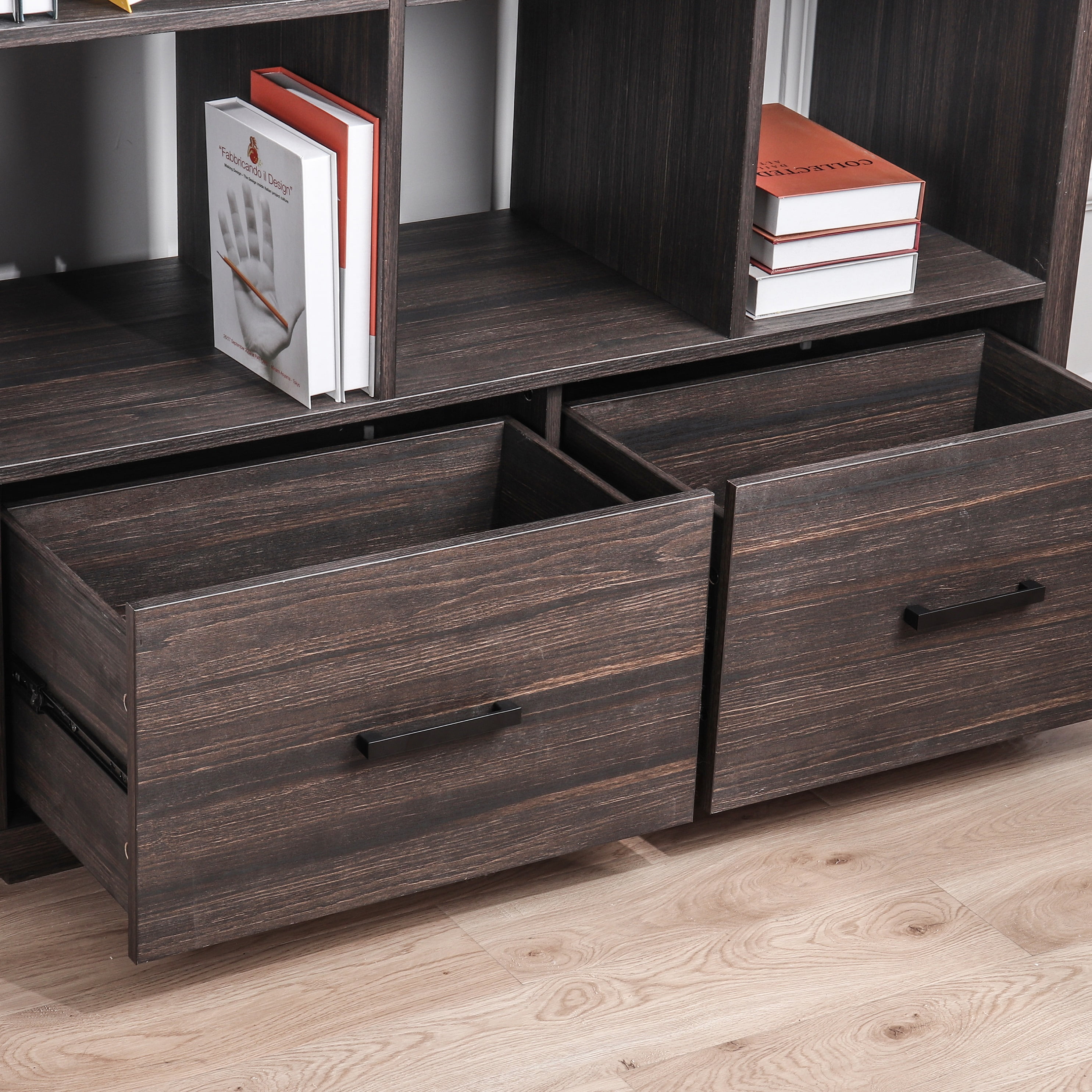 Stylish, contemporary shelves with an open cube structure provide ample storage and display options Coordinates with other items in the Better Homes & Gardens Steele collection Two large drawers allow you to store things out-of-sight N.W.: 48Kg/105.8lb G.W.: 54Kg/119lb Assemble Dimensions: 44.3″W*15.5″D*43.6″H/112.4W*39.4D*111.1H CM Accommodates most Better Homes & Gardens collapsible fabric bins ( Sold separately) Packaging dimensions: 48.8″W*19.3″D*14.8″H/124*49*37.6H CM Color: Tobacco Oak Full-extension metal drawer glides provide added support Easy to assemble