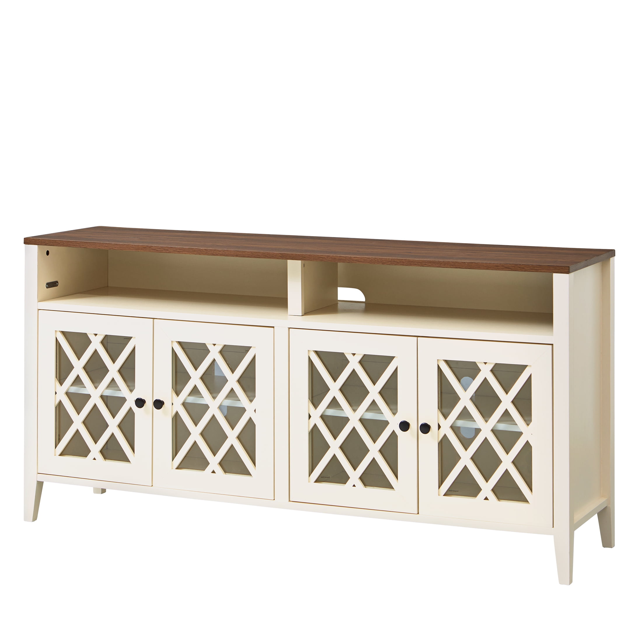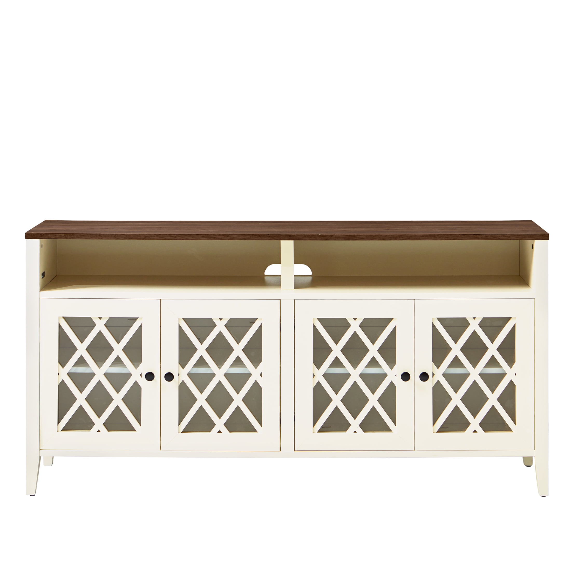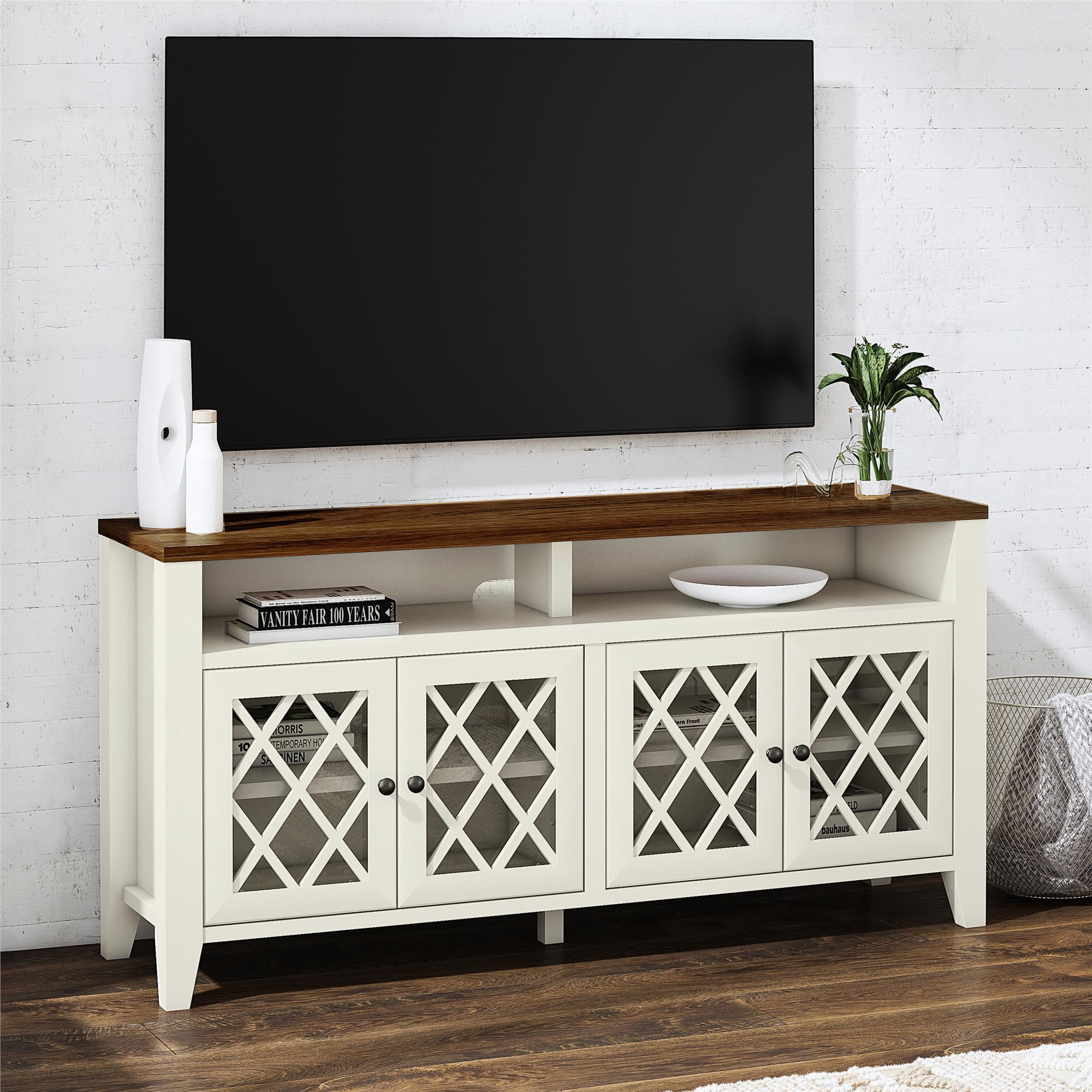Better Homes & Gardens Trellis TV Stand for TVs up to 65″, Ivory/Walnut