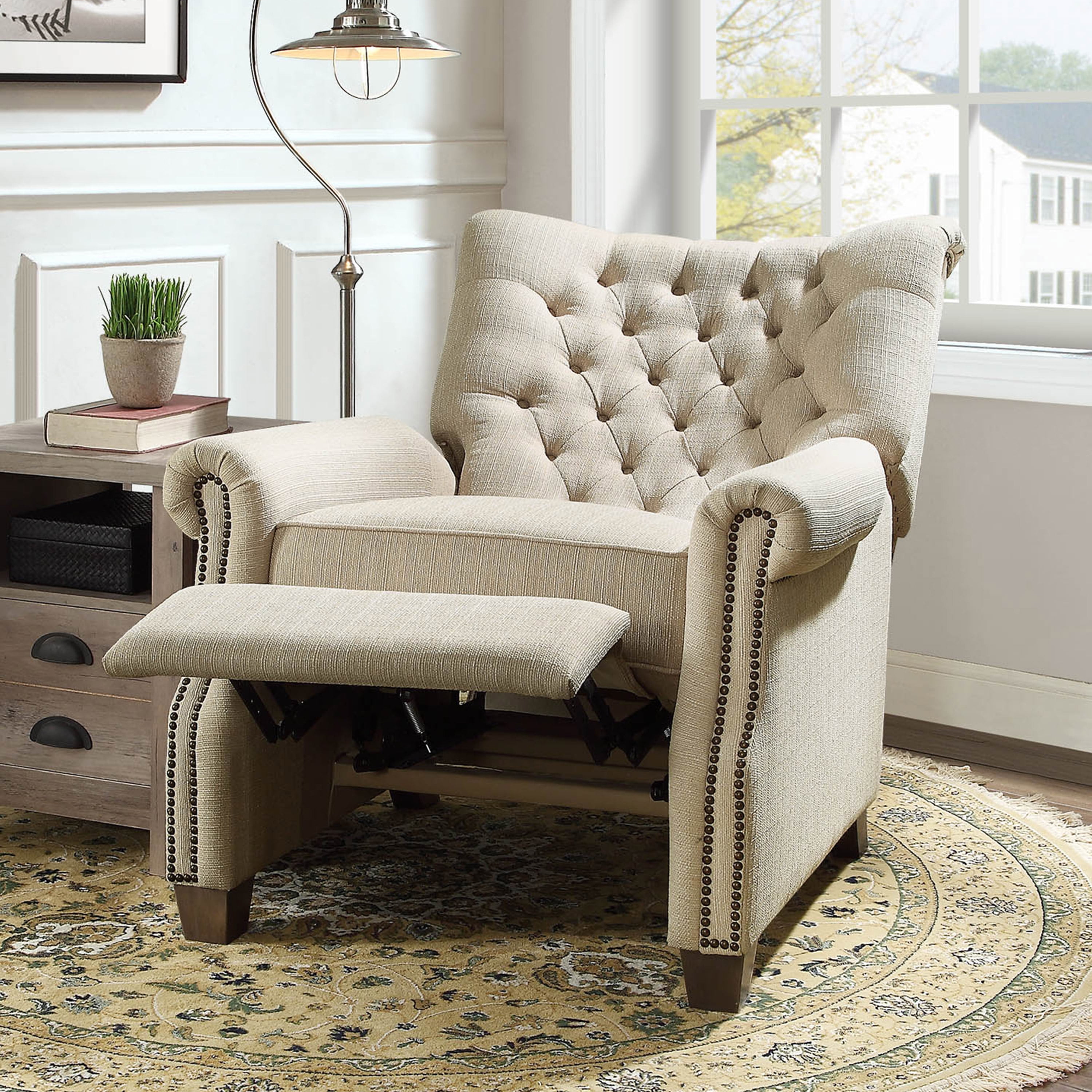 Better Homes & Gardens Tufted Push Back Recliner, Beige Fabric Upholstery