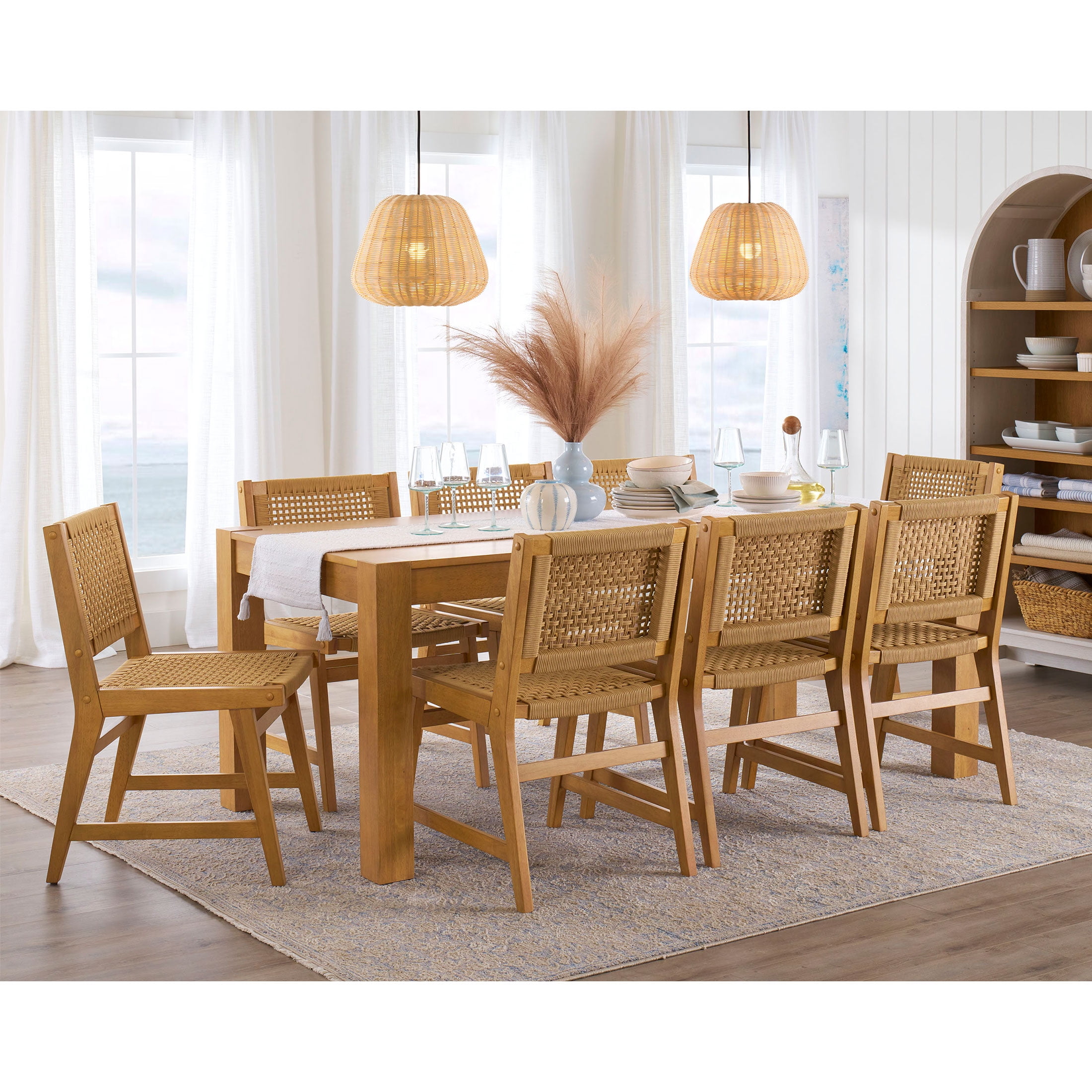 Better Homes & Gardens Vista Woven Coastal Dining Chairs 2 Pack, Light Honey Finish