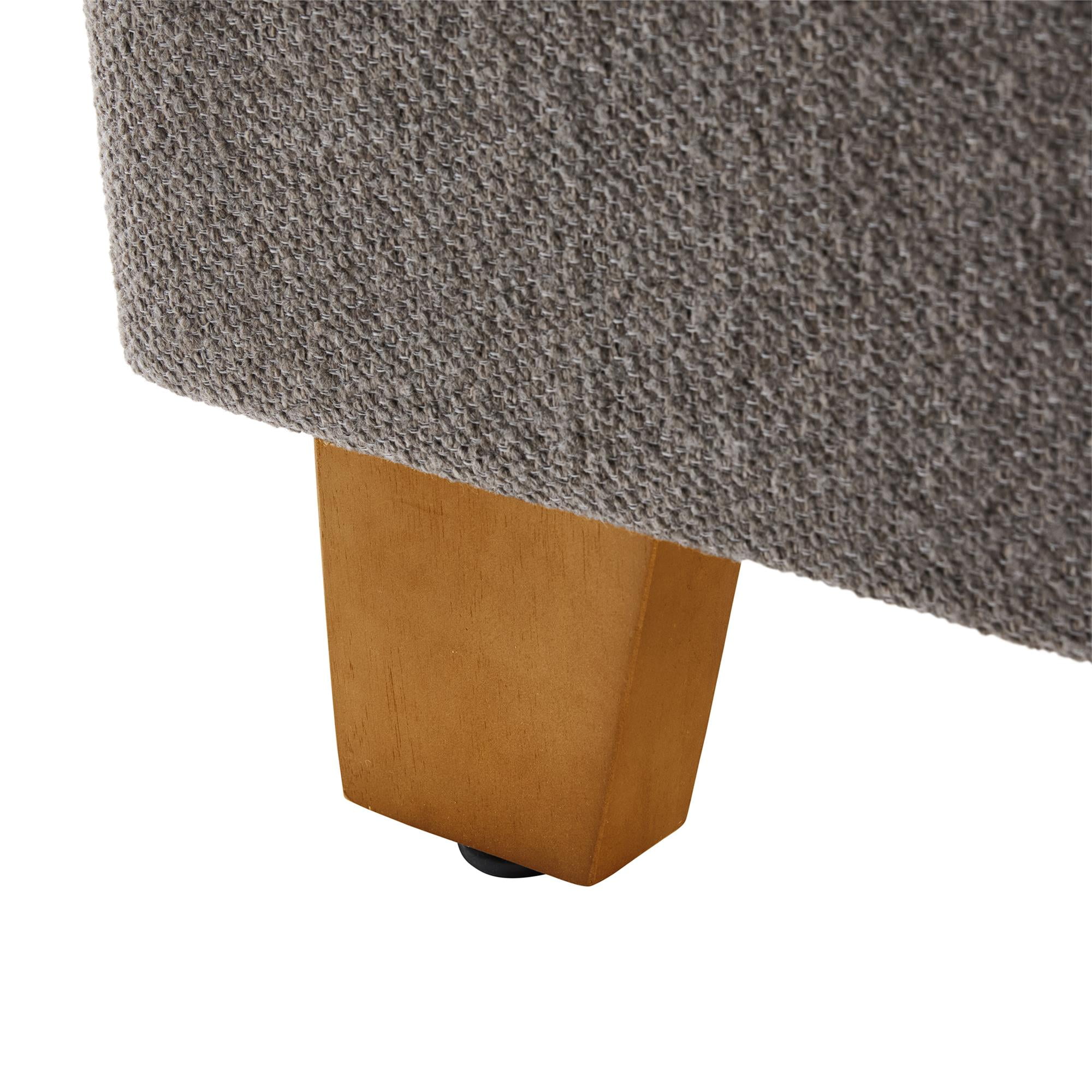 Add a touch of modern flair to your bedroom decor with the Better Homes & Gardens Windsor Platform Bed with Wingback Headboard. This upholstered bed offers both style and durability with luxurious gray boucle fabric, a soft-curving wingback headboard, and sturdy wood and metal construction. The plush cushioning on the headboard, footboard and side panels provides comfort, while the rounded corners provide safety. Plus, with a weight capacity of up to 1,000 lbs, this bed ensures a peaceful night’s sleep. Coordinate this queen-size platform bed frame seamlessly with other contemporary or modern furnishings and enjoy a stylish haven for relaxation.