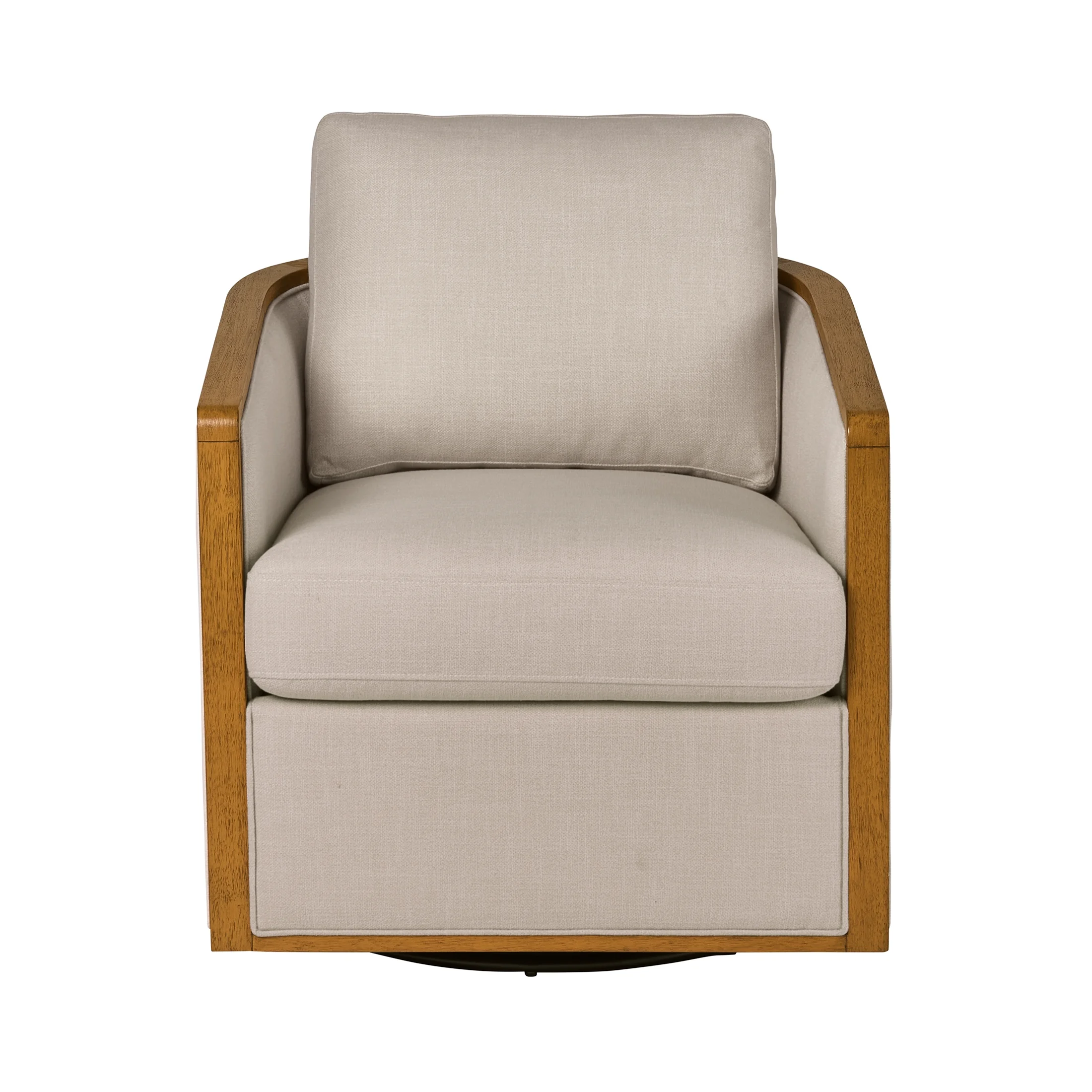 360-degree swivel for easy movement and versatility Durable fabric upholstery for long-lasting style and comfort Farmhouse-inspired barrel design adds a cozy charm to your space Plush pillow back and squared armrests for enhanced comfort and support Sturdy wood construction ensures lasting durability Available in 2 colors: A darker Gray and light Cream Product Dimensions: 29 IN x 32.5 IN D x 35.5 IN H (73.7 CM x 82.6 CM x 90.2 CM) Packaging Dimensions: 31.5 IN W x 30 IN D x 33.5 IN H Model# BH4433458397B01, BH443345W8170B1