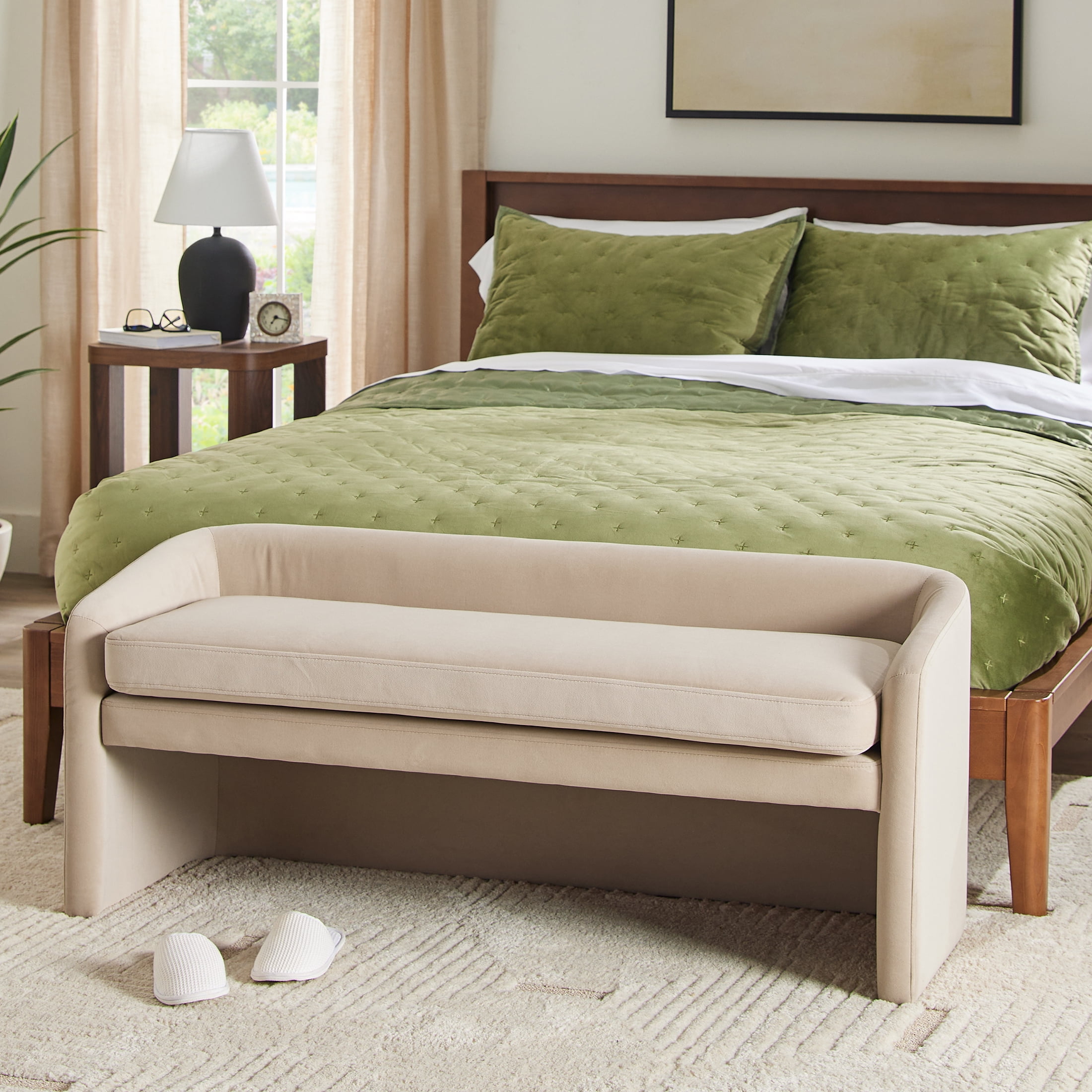 Better Homes & Gardens Wyatt 50″ Velvet Accent Bench, Beige