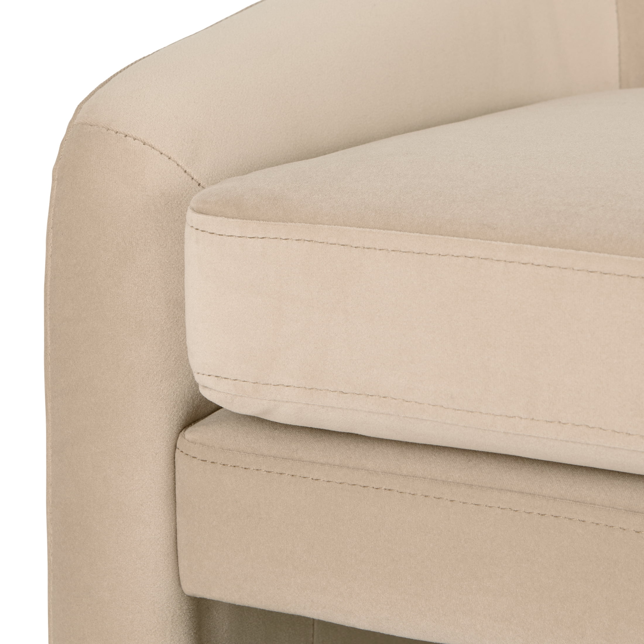 Stylish green velvet fabric with match color stitching Dacron and high-density foam cushion with webbed seat suspension for comfort Solid and engineered wood construction for durability Fully assembled for convenience Perfect for any décor style