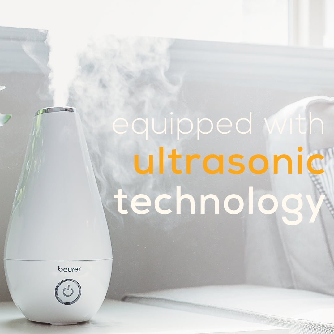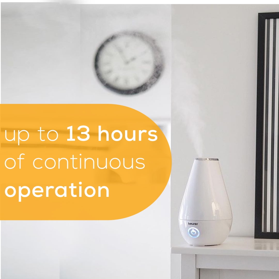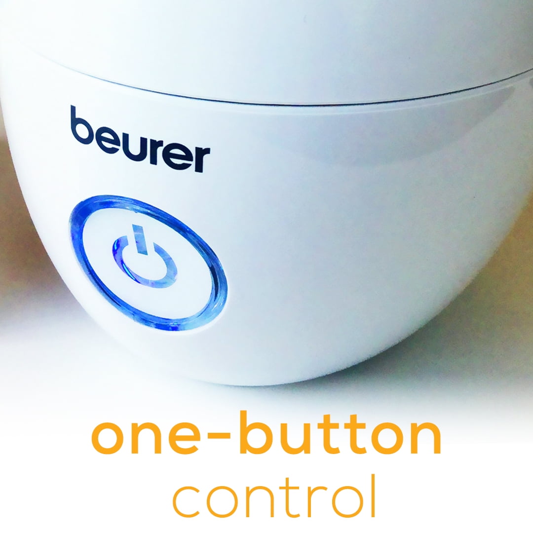 Ultrasonic humidification technology helps to quickly and quietly disperse fine humidifying moisture and prevent excessive dryness in the home The humidifier is equipped with an easily removable and refillable 67.6 fl. oz. tank that lasts for hours and automatically shuts off when the tank is empty Adjustable nozzle to control the amount of mist, plus includes 15 aromatherapy pads to diffuse your favorite scents By using aromatic oils, the humidifier exudes your favorite fragrance and ensures a pleasant feel-good atmosphere in all rooms up to 215 square feet When using the Beurer Ultrasonic Air Humidifier and Aroma Diffuser, night mode can be selected so that you can have the device in your bedroom and still get to sleep at night With a sleek modern design, this humidifier is a perfect fit for use in all rooms; living room, bedroom, kitchen, office, children’s room etc. Customer service in the USA