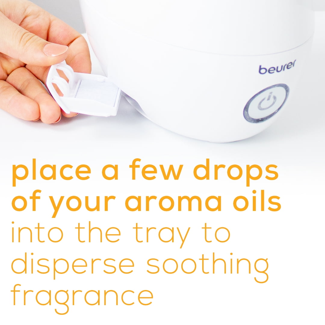 Beurer 2in1 Essential Oil Diffuser & Air Humidifier, 2L Tank, Night-Mode, Auto shut-off, for Bedrooms, Baby Kids Rooms, Choose from 10 Scents, Aromatherapy, Ultrasonic Air Vaporizer, Cool Mist, LB37