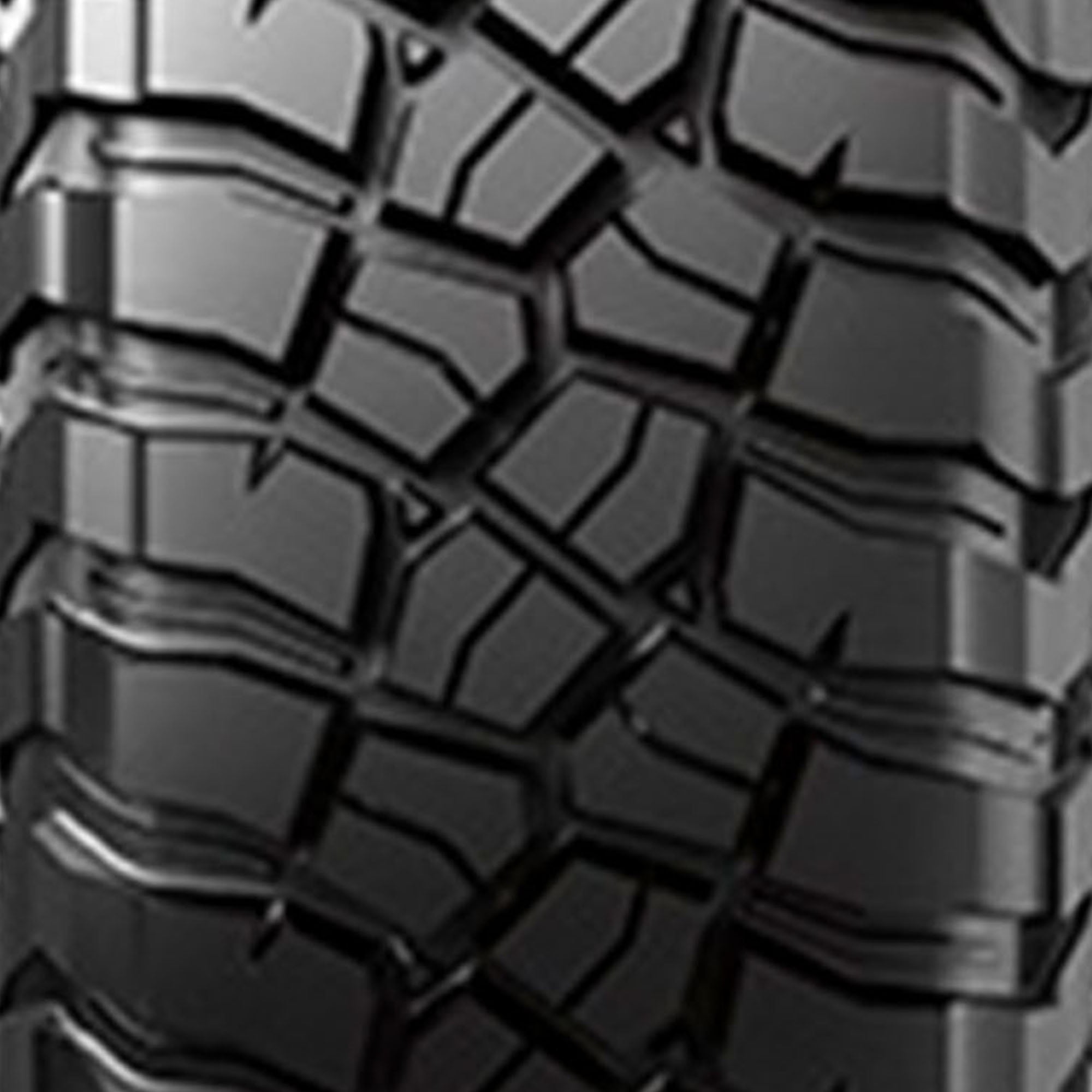 BFGoodrich Mud-Terrain T/A KM3 28X11R14 OVERVIEW The Mud-Terrain T/A KM3 from BFGoodrich is a mud-terrain tire built to tackle all obstacles and all possibilities. Featuring an innovative Terrain-Attack tread design with massive tread blocks, the tire is designed to power through mud and loose soil with superb grip from any angle. The advance Krawl-TEK compound improves grip on rock and slick surfaces, while the specially designed Linear Flex Zone gives the tire the flexibility to conquer anything in its path. A thick sidewall shield helps guard against sharp objects and prevent sidewall splitting.