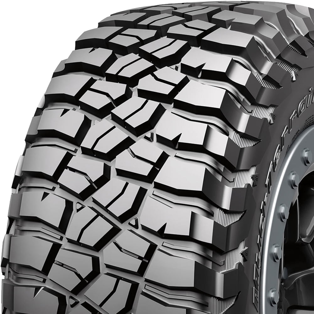 Bring on the unpaved road. The BFGoodrich Mud-Terrain T/A KM3 tire is must-have equipment for the serious off-road enthusiast, especially when conditions require extreme traction and toughness. Made to mud, built to climb and created to conquer, the BFGoodrich Mud-Terrain T/A KM3 tire was designed to power through mud and loose soil with ease thanks to its massive tread blocks that are uniquely engineered to deliver incredible grip from any angle of approach and Mud-Phobic Bars that release compacted mud for continued traction. If you’re looking for a tire with a pedigree, you’ve found it. The BFGoodrich Mud-Terrain T/A KM3 tire utilizes race-proven advancements like CoreGard Max Technology, providing a thick sidewall shield and specialized compound to help guard against sharp objects. We didn’t stop there. Our Traction-Armor Sidewall Sculpture helps prevent sidewall splitting, so you can go places others only dream about. Don’t let adverse weather stand in your way either. The BFGoodrich Mud-Terrain T/A KM3 tire provides all-season performance you can confidently rely on – rain, snow or shine. It’s also backed by the standard 6-year limited manufacturer’s warranty.[1] So, what are you building for? [1] All BFGoodrich tires have a Standard Manufacturer’s Limited Warranty, which covers defects in workmanship and materials for the life of the original usable tread, or for six (6) years from date of purchase, whichever occurs first.