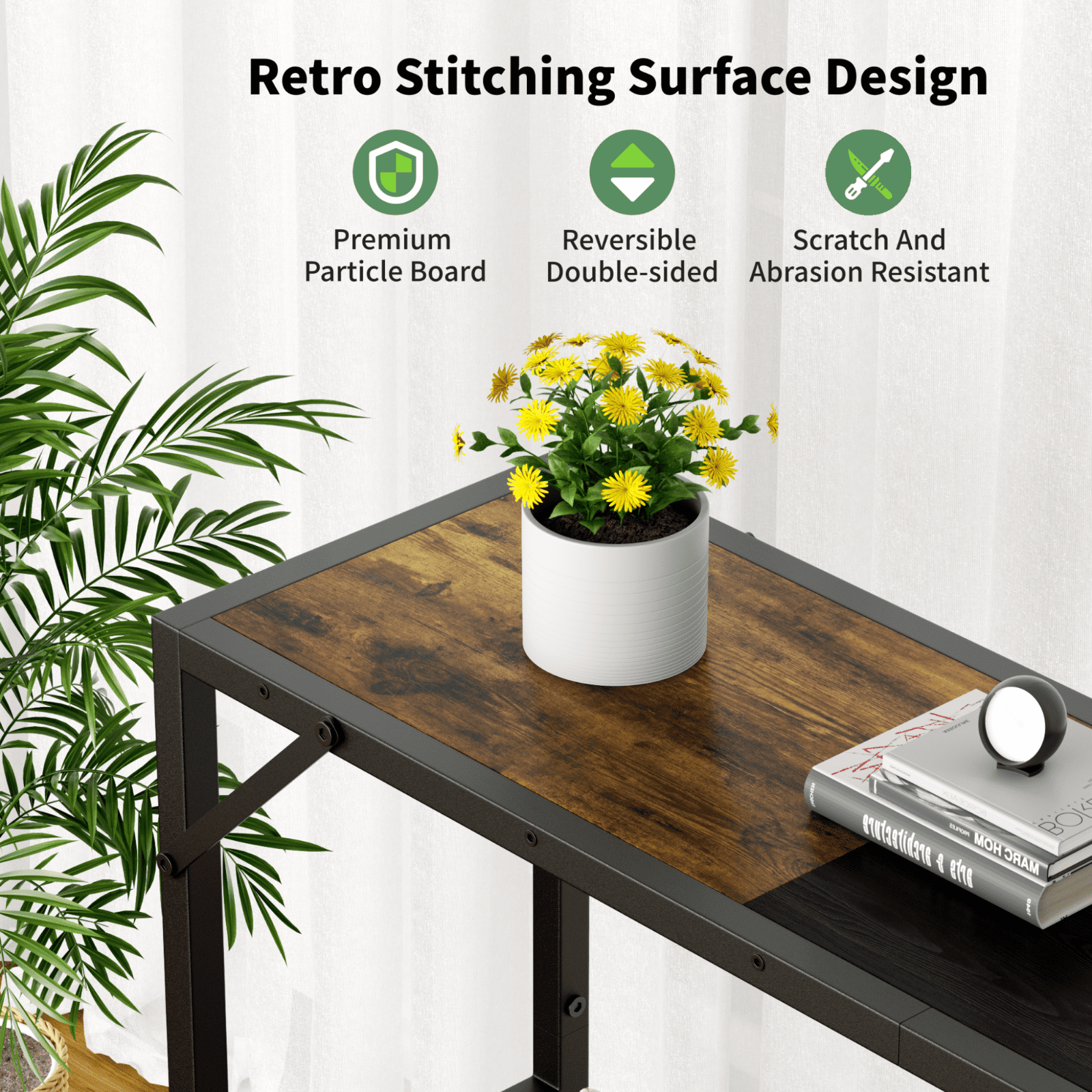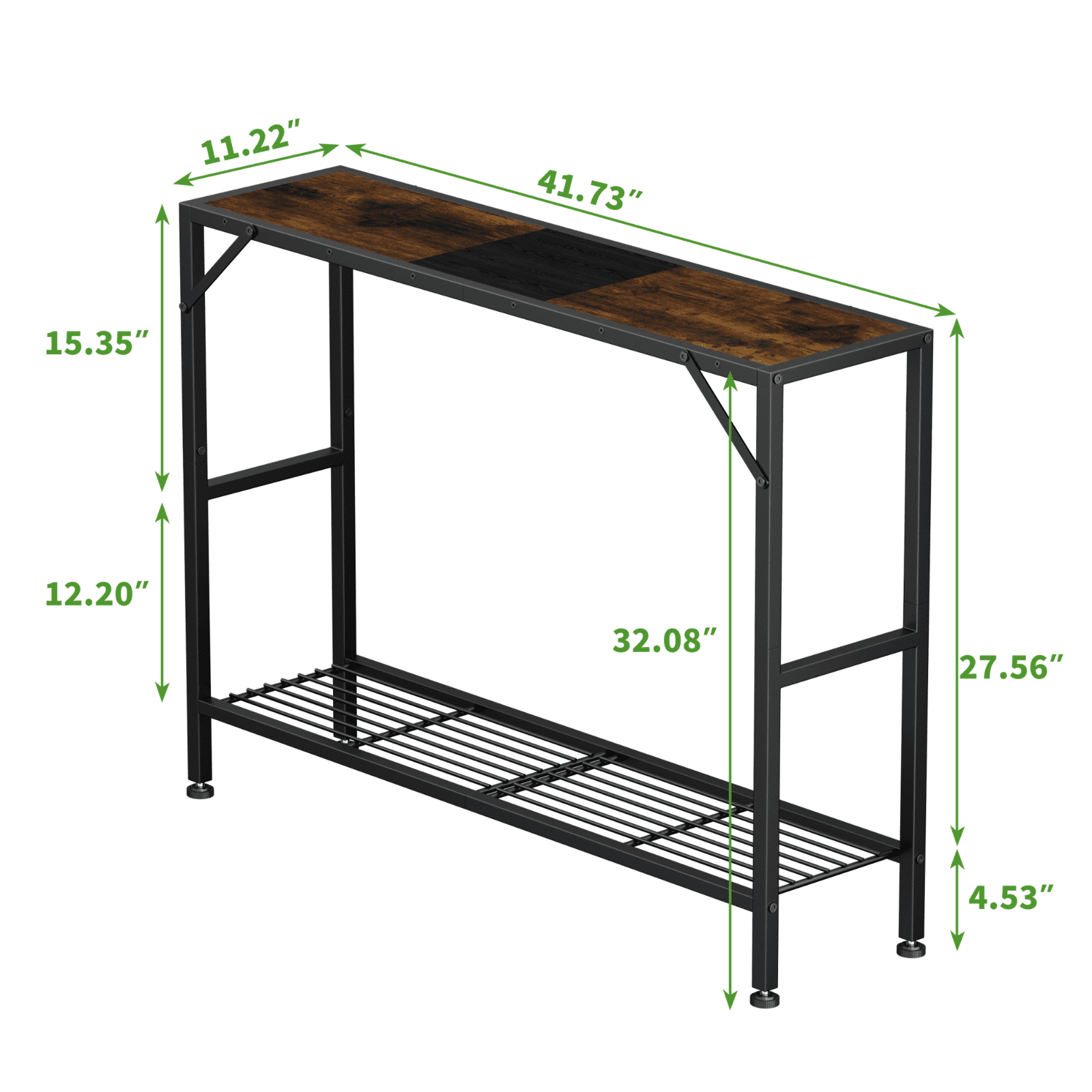 [Industrial Vintage Style]: This Biemlerfn console table blends a classic wooden finish with industrial matte black frames. The tabletop is made of three reversible panels and each panel has different colors on both sides, which allow you to choose your favorite combination according to your needs. Whether it is a brown and black splicing combination or a solid color combination, it can match to a variety of home styles and adds a vintage elegance to your home. [Sturdy Construction]: Made of sturdy metal frame and premium particle board, this Biemlerfn console table is stable enough to be used for a long time. The iron triangle bar and adjustable feet design will greatly double the stability of this table, so that this table can keep balanced even on uneven ground. [Multifunctional Narrow Table]: With a compact size of 41.73″×11.22″×32.08″, this console table is slim enough to fit easily in any smaller gaps. It is the perfect storage solution for tight spaces. Ideal as a sofa table, laptop desk, TV cabinet, entry table, hallway table, or even a plant table under the window. [Ample Space Storage]: 2-tiers open shelves design provides more storage space. The first tier will be an ideal place for your candles, keys, lamps, computers, and even more. The second tier offer extra space to put your books, plants, shoes, boxes ect. to keep your essentials, which will greatly help your desktop become neat and clean. [Easy Assembly]: The package contains clear and detailed instructions and tools needed for installation, and each accessory is labeled for easy installation. If you have any questions about our narrow console table, please feel free to contact us, and we will reply to you within 24 hours.