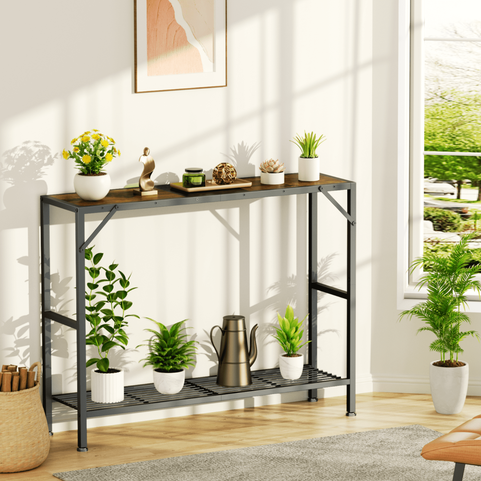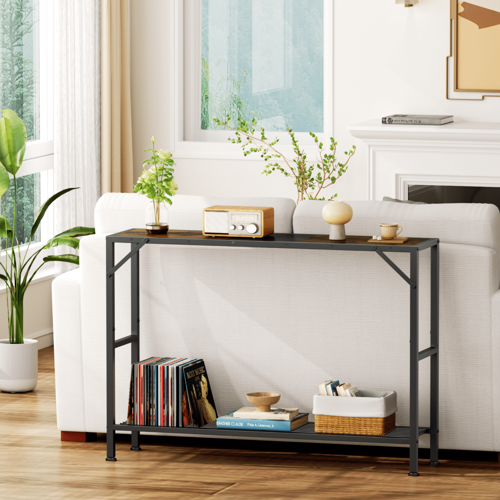 Biemlerfn 2-Tiers Industrial Console Table Perfect Partner for Small Space Are you still worried about limited space? This Biemlerfn Narrow Console Table will be a savior for your confined spaces. The 11.22-inch slim size allows it to be conveniently placed in any narrow passage, suitable for a entry table, hallway table, sofa table and so on. Besides, with the combination of classic wood finishes and industrial matte black, this skinny console table will greatly create a rustic and retro atmosphere to your home.