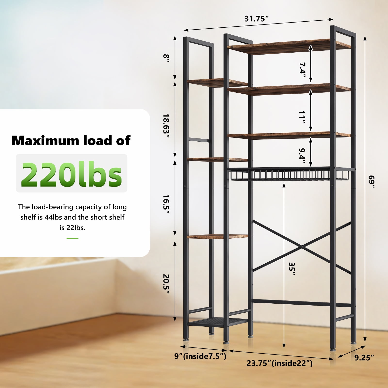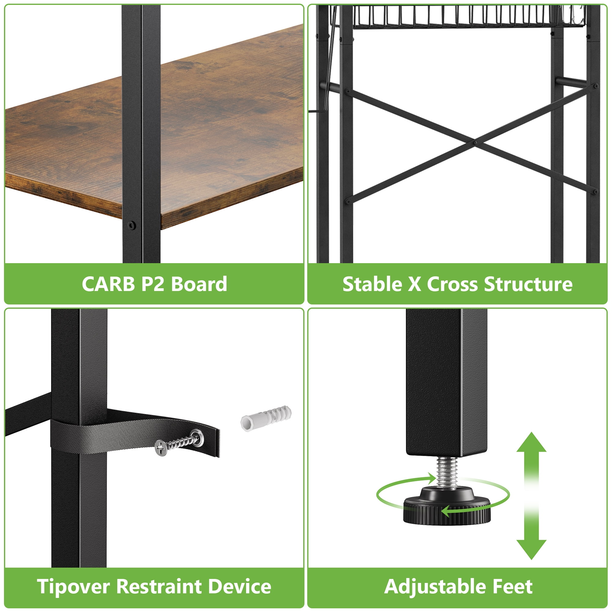[8-TIER LARGE STORAGE SPACE]: This Biemlerfn bathroom rack comes with 8 open shelves, providing plenty of room for bathroom essentials like towels, body wash, shampoo, candles, and plants. Additionally, an extra toilet paper holder and 3 removable hooks help keep the bathroom clean and organized. Size of the over the toilet storage rack is 31.5″D x 9.3″W x 68.5″H, fitting most toilets or laundry baskets on the market. [STABLE STRUCTURE]: The sturdy X-shaped metal bars on the back enhance the frame’s stability. Additional anti-tip fittings prevent items from falling due to the toilet rack wobbling, further increasing safety, making it a reliable storage solution for families with children and pets. [HIGHT-QUALITY MATERIALS]: The Biemlerfn toilet rack is crafted with a premium carbon steel frame and eco-friendly particle board. The metal surface is powder-coated for rust and corrosion resistance. In contrast to inferior MDF boards, the particle boards we utilized are stronger. Additionally, their melamine coating ensures waterproof and moisture-resistant properties, ensuring durability and functionality. [THOUGHTFUL DESIGN]: The side racks of this bathroom storage shelf are adjustable and can be installed on either the left or right side, making it suitable for various bathroom layouts. [VERSATILE STORAGE RACK]: Suitable for various settings such as bathrooms, laundry rooms, balconies, living rooms, kitchens, entryways, dorms, hotels, and porches. You can use it as a storage cabinet, kitchen rack, plant stand, laundry room organizer, and more, depending on your needs. [EASY ASSEMBLY]: Assembly is a breeze! With clear instructions and all necessary tools (such as numbered parts and an Allen wrench), the installation process is straightforward and worry-free, even if you’re not handy.