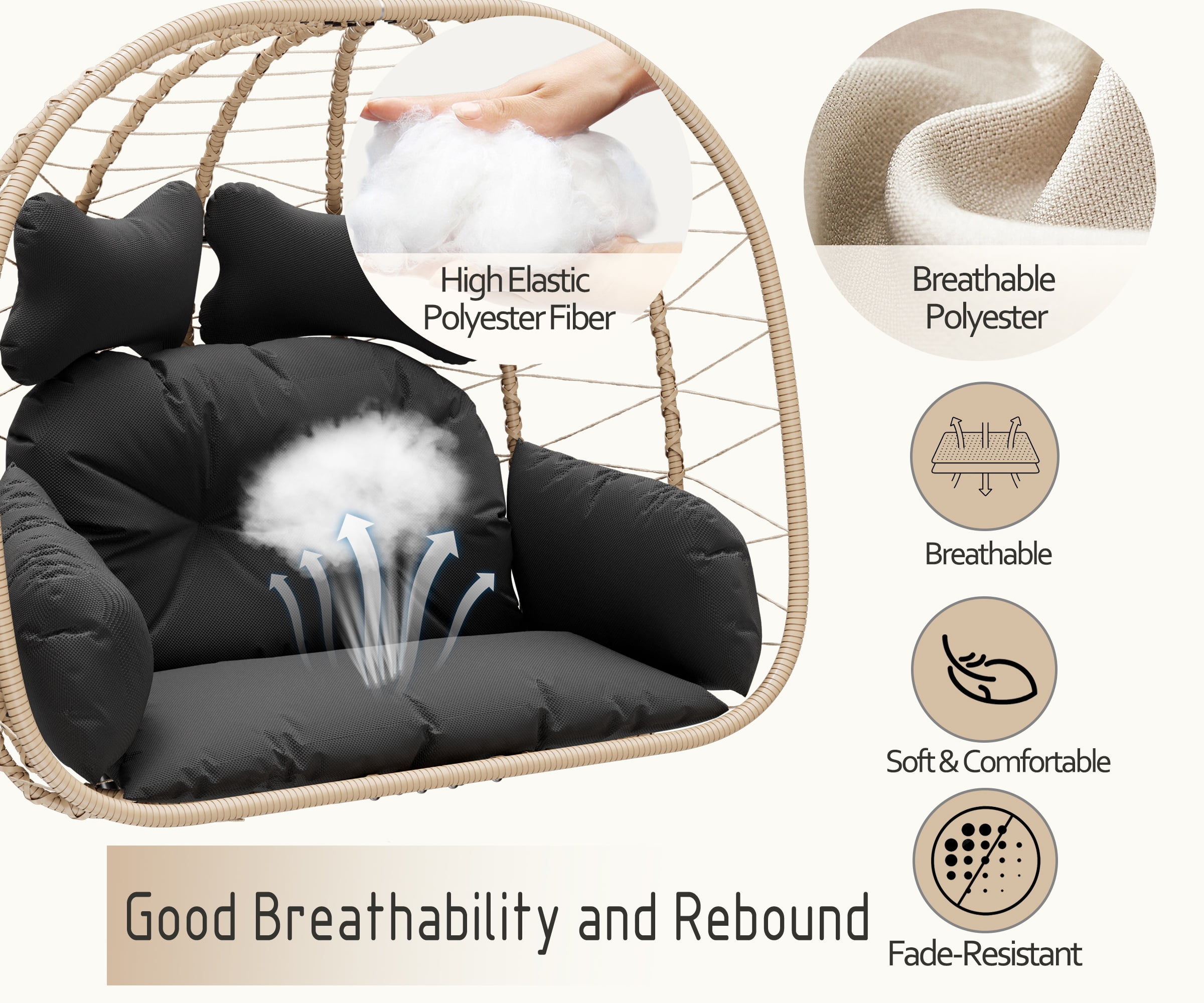 GOOD COMFORT: The Bifanuo swing egg chair has an ergonomic design that allows you to sit on it for a long time without feeling tired. The thickened cushion has good support and cushioning performance. The curves inside the egg chair support the natural contours of the body, providing you with a comfortable and relaxed experience. CHIC DESIGN: The Bifanuo Egg Chair differs from traditional chairs in terms of exterior design, and its unique design can add a fashionable atmosphere to any space. The unique shape makes it a personalized item that can enhance the aesthetics of any place in the home. SPACE SAVING: The Bifanuo egg chair has unique advantages over other egg chairs, allowing for compact folding. It is very suitable for small apartments, balconies, and gardens with precious space. VERSATILITY: The Bifanuo egg chair is made of high-quality materials such as PE rattan and metal, which makes it durable enough to be used outdoors in harsh weather for a long time without damage. And the Bifanuo egg chair is lightweight and easy to move. You can use it in different environments such as deck, terrace, living room, bedroom, etc. AFTER-SALES GUARANTEE: If there are any product quality or assemble problems, please contact us. Our team will respond to you within 24 hours and the powerful solutions.