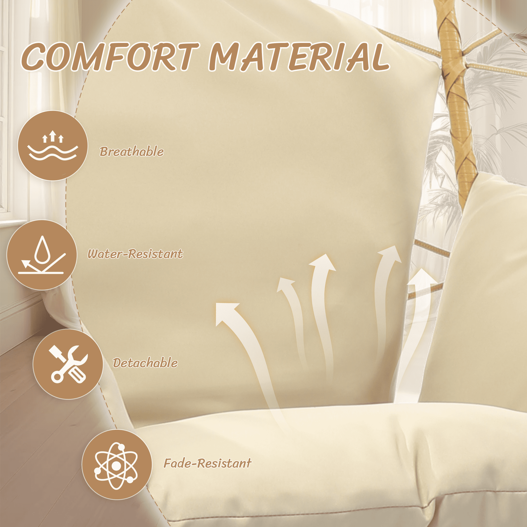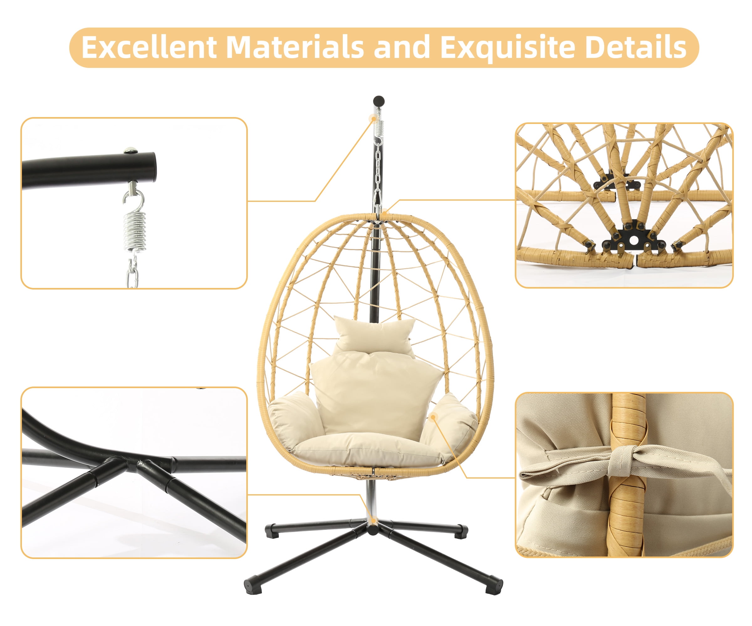 Bifanuo Indoor/Outdoor Wicker Swing Egg Chair Hammock Hanging Chair Nest Basket with Stand, UV Resistant Removable & Washable Cushions,350LB Capacity for Bedroom, Balcony, Garden (Yellow and Beige)