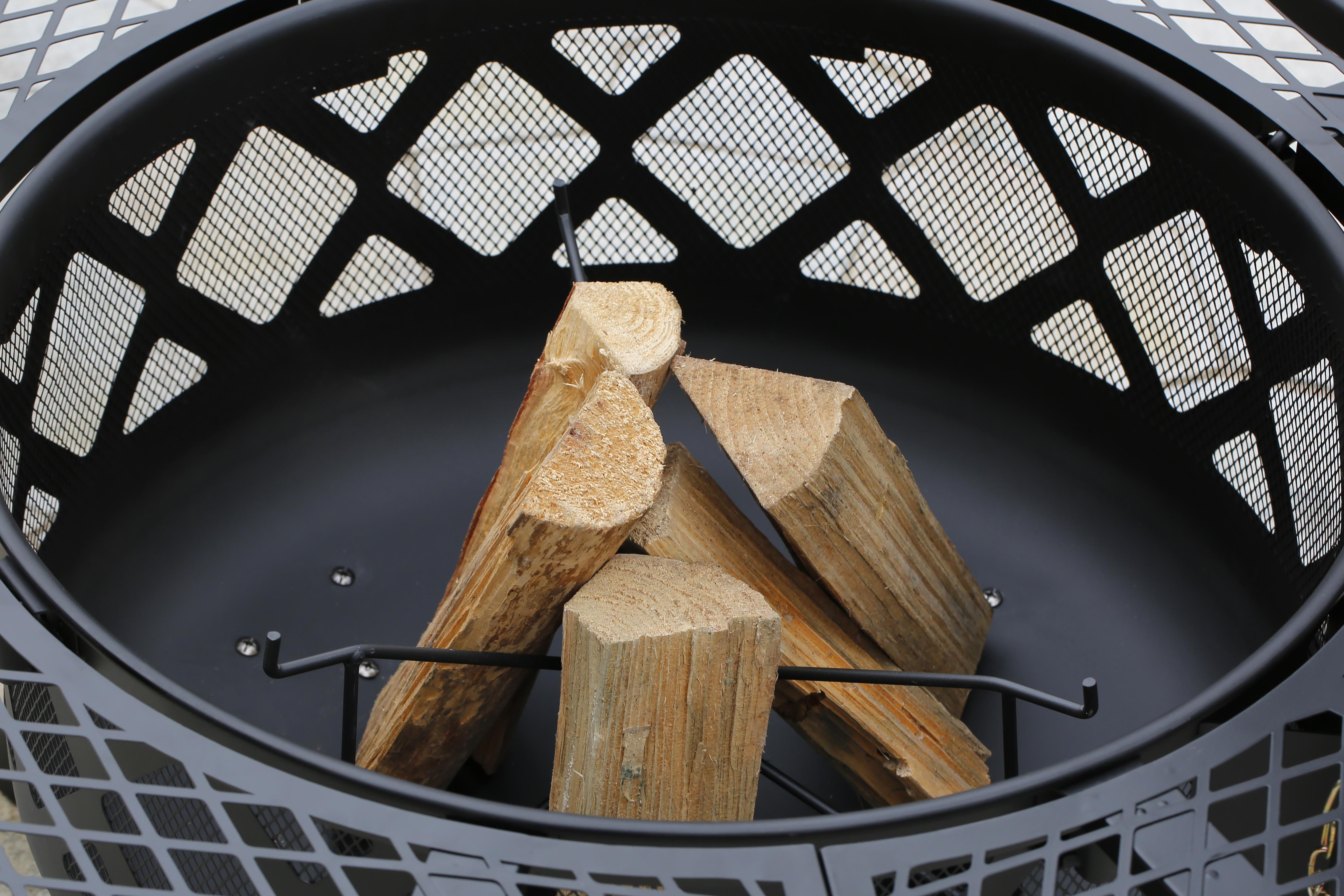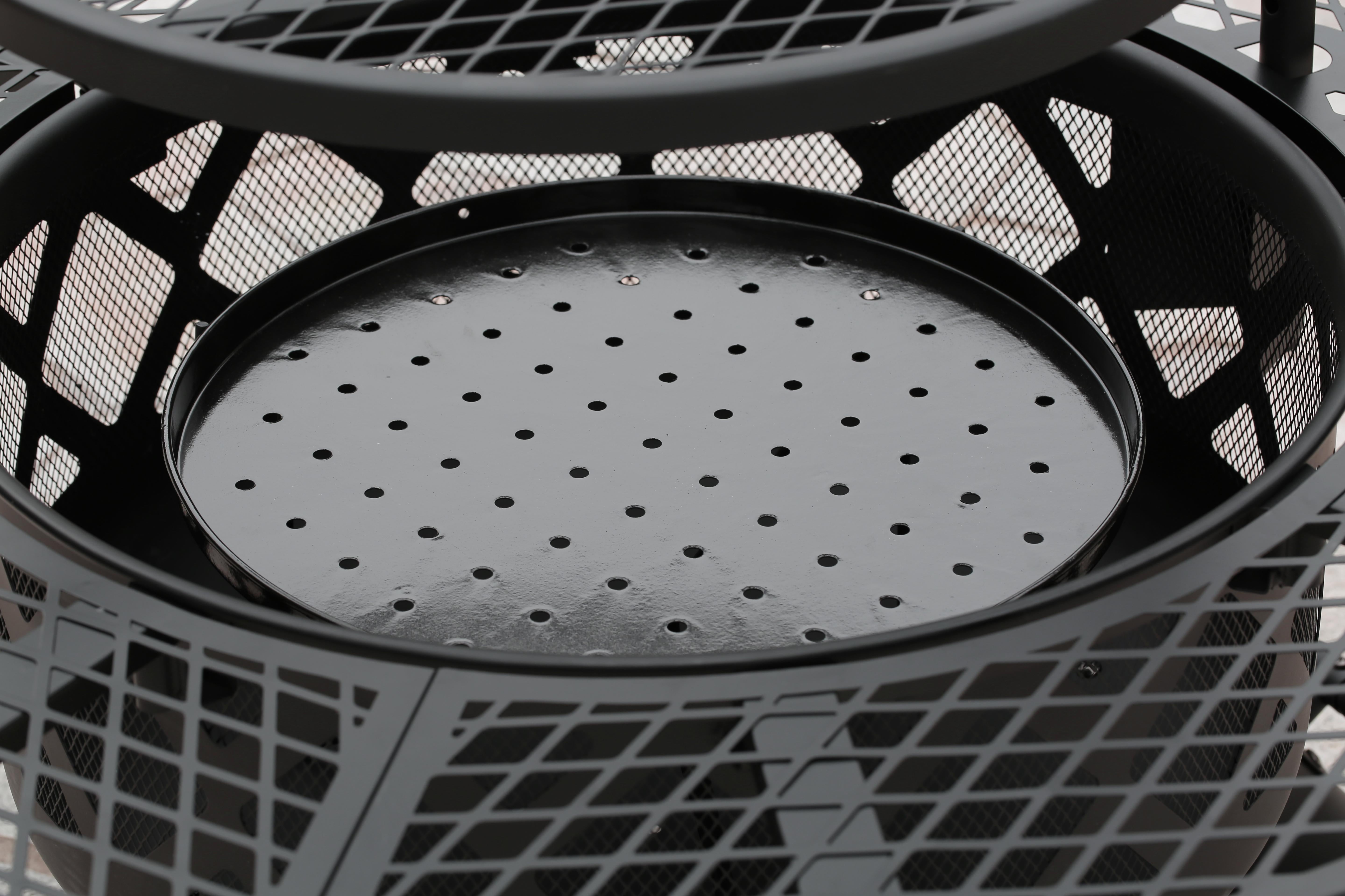 Includes a circular metal ring located at the base to stabilize and secure the fire pit. Collapsible triangle log rack will help build the perfect wood fire. Charcoal pan easily converts this fire pit to a tranditional grill. Cooking grate is FDA tested, it can swivel a full 360 degrees, allowing for easy reach and an evenly cooked meal. The height of the cooking grate is adjustable to achieve a more flexible cooking experience. Fire poker gives you access to the center of the firepit without your hands burning from close proximity of the heat. A durable protective cover included to prevent ourside dirt and weathering. Overall Dimensions: 40″L x 40″W x 31″ Fire Bowl Diameter: 24″