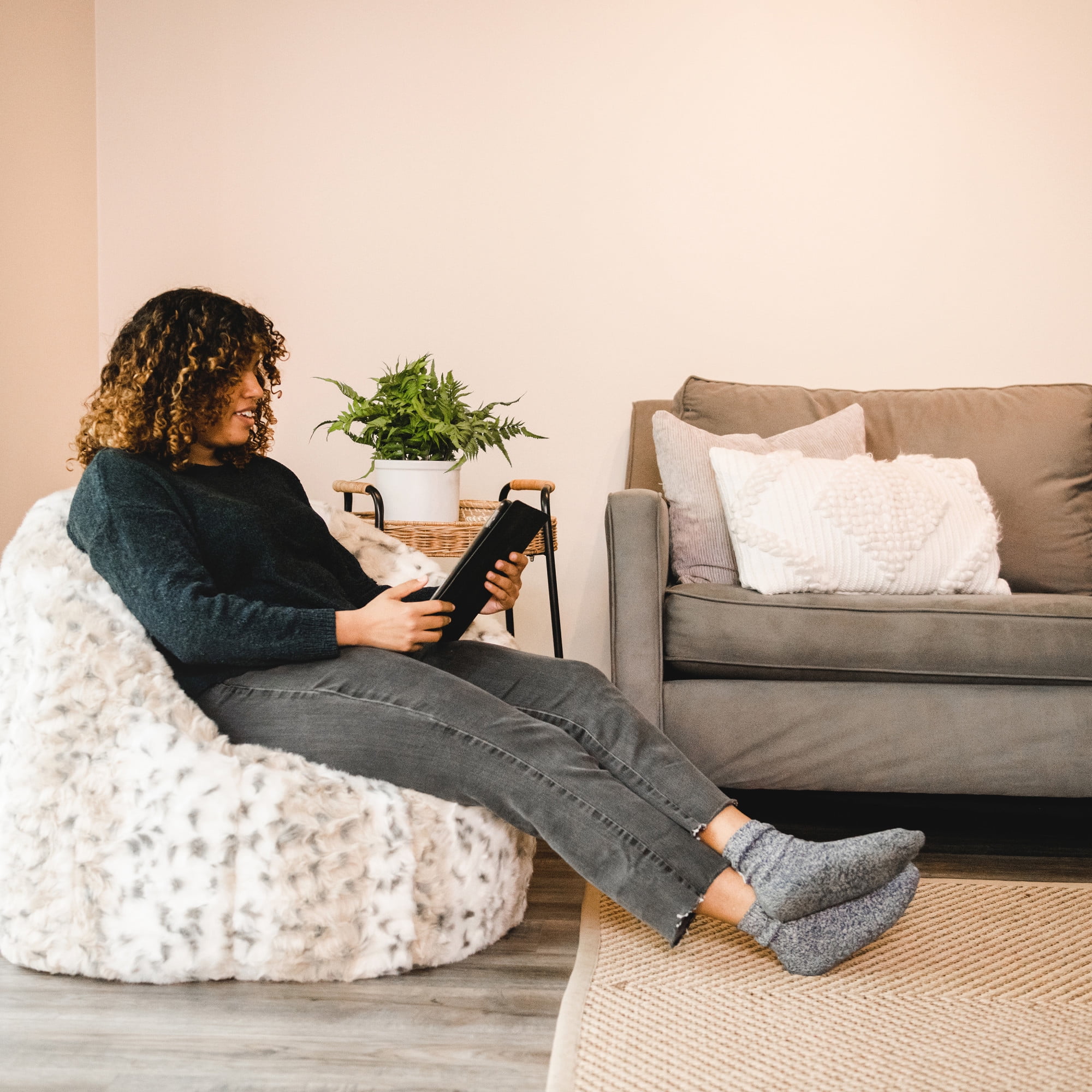COMFORT MEETS STYLE: This fan-favorite bean bag chair’s structured design not only gives you the support you need but also comes in a variety of styles to fit your personality! TRENDY MATERIAL: Designed with our soft and snuggly Super Soft Fur fabric. Although this cover is not removable, spot cleaning is easily accomplished. PERFECTLY FILLED: We purposely fill your bean bag with the perfect amount of beans, because we know an over-filled bean bag is not comfy! IT’S IN THE DETAILS: Double-stitched with dual zippers for extra safety and durability. Take the Milano bean chair with you wherever you go with the convenient built-in handle. HOME GROWN: Big Joes are designed and filled in the USA.