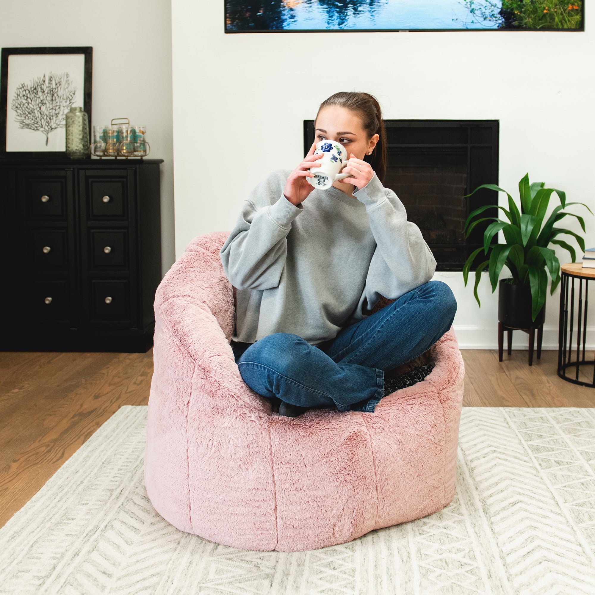 COMFORT MEETS STYLE: This fan-favorite bean bag chair’s structured design not only gives you the support you need but also comes in a variety of styles to fit your personality! TRENDY MATERIAL: Designed with our soft and snuggly Plushie Fur fabric. Although this cover is not removable, spot cleaning is easily accomplished. PERFECTLY FILLED: We purposely fill your bean bag with the perfect amount of beans, because we know an over-filled bean bag is not comfy! IT’S IN THE DETAILS: Double-stitched with dual zippers for extra safety and durability. Take the Milano bean chair with you wherever you go with the convenient built-in handle. HOME GROWN: Big Joes are designed and filled in the USA.