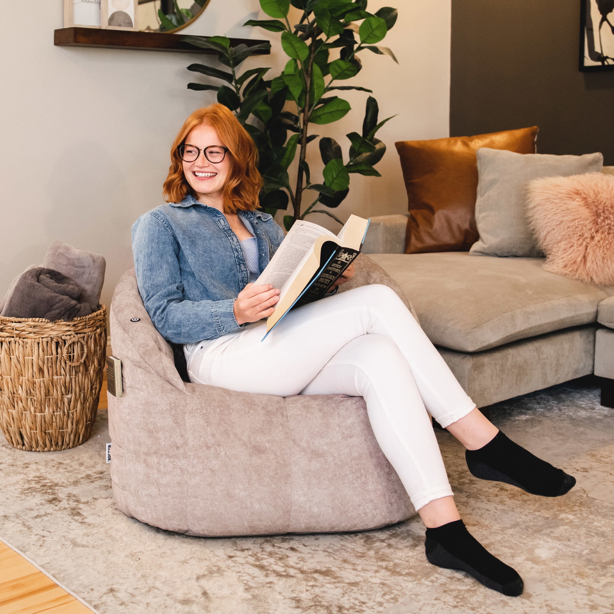 Big Joe Milano w/ Vibe Vibrating Massage Bean Bag Chair for Kids, Teens, Adults, Lunar Gray Hyde, Vegan Suede, Lightweight Seat for Reading Nook and Gaming, 2.5 foot Refillable