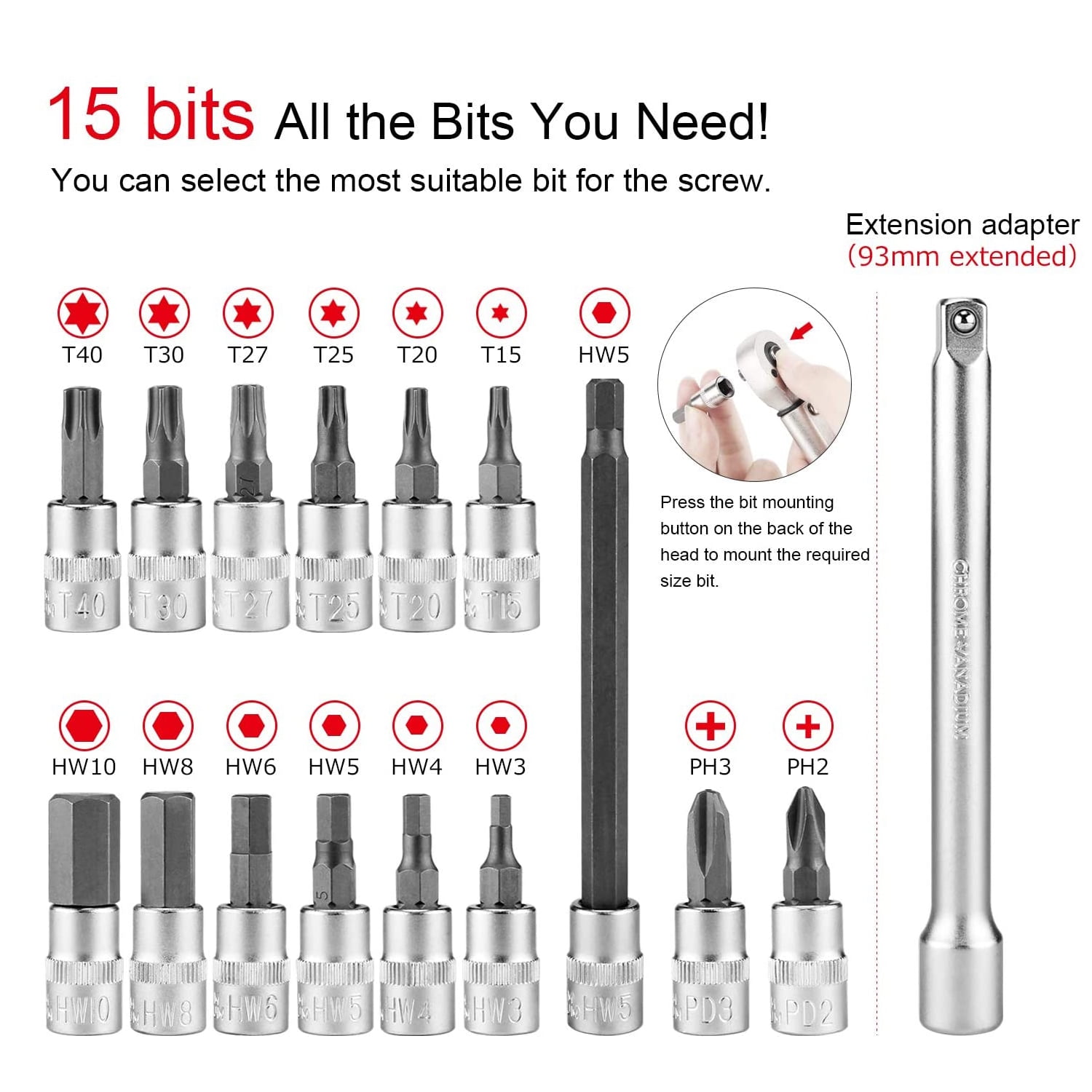 【Reliable & Safe】: You might think that you don’t need a torque wrench to work on your bike maintenance. However, many studies have shown that most riders tend to overtighten just about everything, which leads to damaged equipment, stripped threads, and broken bolts. With a torque wrench, the problem is solved. A “clicker” torque wrench will make an audible click once you’ve reached the torque level you’ve set. You could easily get the click and know where to stop 【Accurate Torque Wrench】: This scale torque wrench is designed for speed and accuracy, putting precision above almost anything else. Wider Torque Range with Industrial Level Accuracy- 1-25 N.m wrench capacity with fine tuning to 0.2 N.m. Its comfortable ergonomic handle makes it easier to keep your grip on the tool at awkward or difficult angles, making it useful for trickier projects or last-minute tightness checks 【Easy to Set & Useful to Have】: This accurate torque wrench helps you ensure that the fittings on your bike are tightened to the correct torque and that clamping forces are distributed evenly across clamping surfaces. It helps to prolong component life and ensure rider safety. With its wide 1-25 Nm range, you’ll be able to maintain and fit a wide range of parts without damaging them or the bike’s frame 【All the Bits You Need】: Includes Hex: HW3, HW4, HW5, HW6, HW8, HW10. Torx: T15, T20, T25, T27, T30, T40. Philip: PH2, PH3 socket/ key set and 100mm extension adapter, 100mm extended HW5 Hex for reaching concealed bolts. Total 15 heads and 1 extension adapter. They all stored in a bespoke case tightly in case of dust, oil, vibration. You’ll be able to fine-tune all of the key components on your bike, quickly, easily and accurately Specifications: Material: steel 1/4” Torque Fix Set Torque length: 227mm Torque range: 2-15 NM Tolerance in : Accuracy +/- 4% Bits:HW3, HW4, HW5, HW6, HW8, HW10, T15, T20, T25, T27, T30, T40.PH2, PH3 High quality. Great for bicycle parts or bolts Package List: 1* 3mm Hex Key 1* 4mm Hex Key 1* 5mm Hex Key 1* 6mm Hex Key 1* 8mm Hex Key 1*100mm extended HW5 Hex 1* 10mm Hex Key 1* T15 Torx Bit 1* T20 Torx Bit 1* T25 Torx Bit 1* T27 Torx Bit 1* T30 Torx Bit 1* T40 Torx Bit 1* PH2 Philip Bit 1* PH3 Philip Bit 1*100mm extension adapter 1* Torque Wrench 1* Storage Case Note: 1、Return the scale to zero after each use. While all torque wrenches will need to be calibrated regularly, you can prolong the life of each calibration by returning the setting of the torque wrench to zero after each time you use it. 2、Keep a tight grip on the torque wrench. Dropping your torque wrench onto any sort of hard surface can instantly affect the tool’s calibration. Be sure to set the torque wrench down in safe places to avoid letting it fall, and never use a torque wrench in place of a hammer or lever. 3、Use the torque wrench only for appropriate tasks. Because a torque wrench looks similar to a breaker bar, people often make the mistake of using them interchangeably. A torque wrench should only be used in instances that require specific torque specifications. Using it for other jobs can affect its ability to maintain its calibration. 4、Stay within the torque wrench’s upper and lower limits. Exceeding the prescribed limits of a torque wrench can damage it, or might affect the wrench’s calibration. Many torque wrenches have clearly indicated upper and lower torque tolerances. Never use the wrench for jobs that require more or less torque than your wrench is rated for. 5、Each part will have tolerance, tolerance to control how the entire product in the appropriate range, is an important science. CXEXC on torque wrench every part design to manufacturing, through detailed thinking, computer-aided design, to achieve the product quality requirements, higher than its peers.