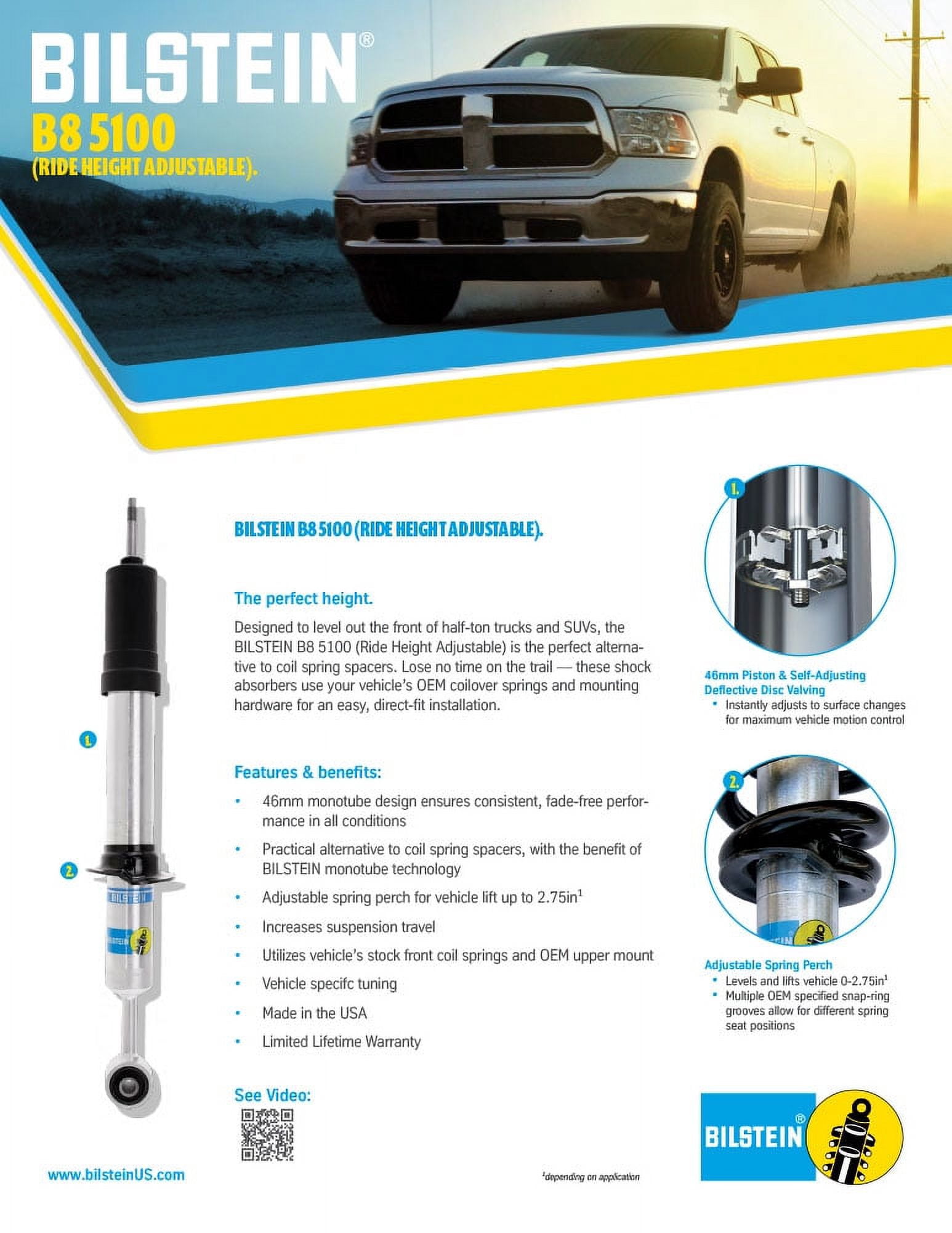 Bilstein 5100 Series 2000 GMC K2500 Sierra SL Front 46mm Monotube Shock Absorber Additional Features Finish:Zinc Plated