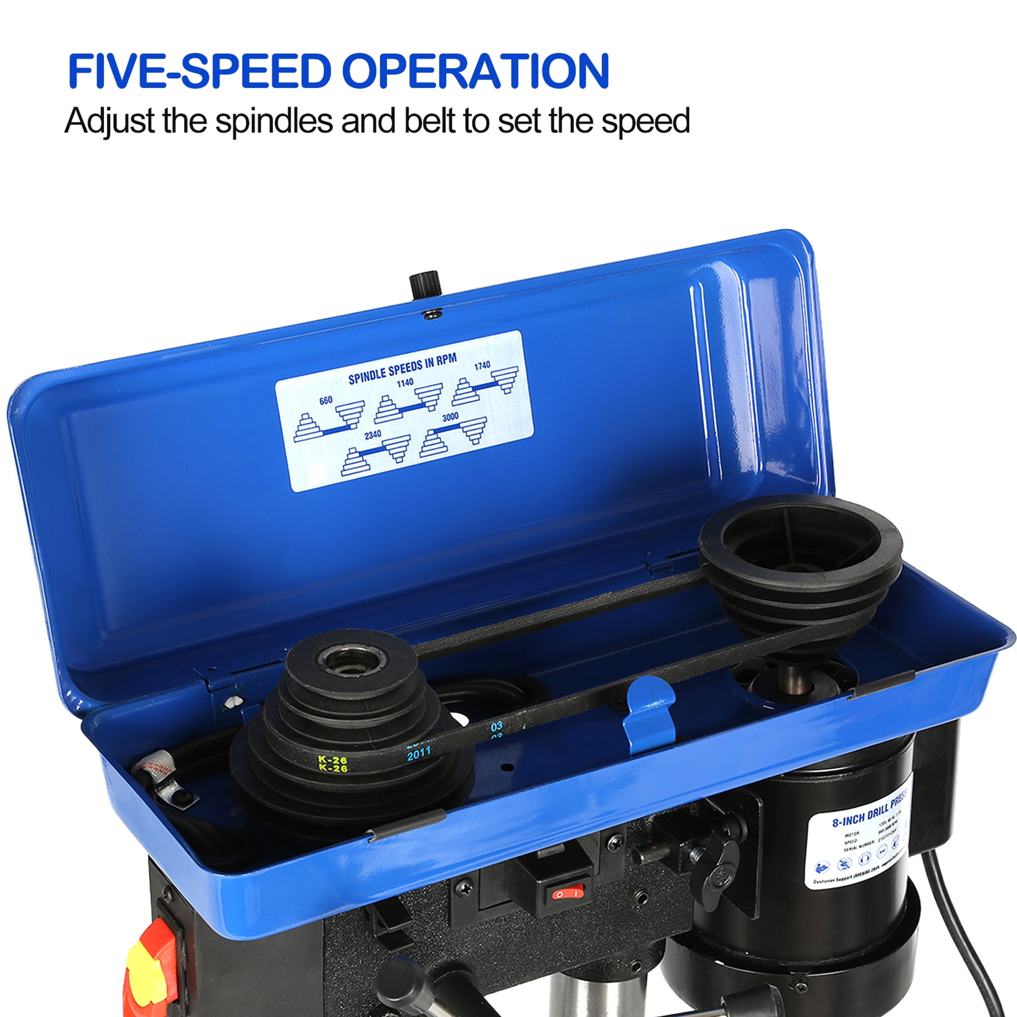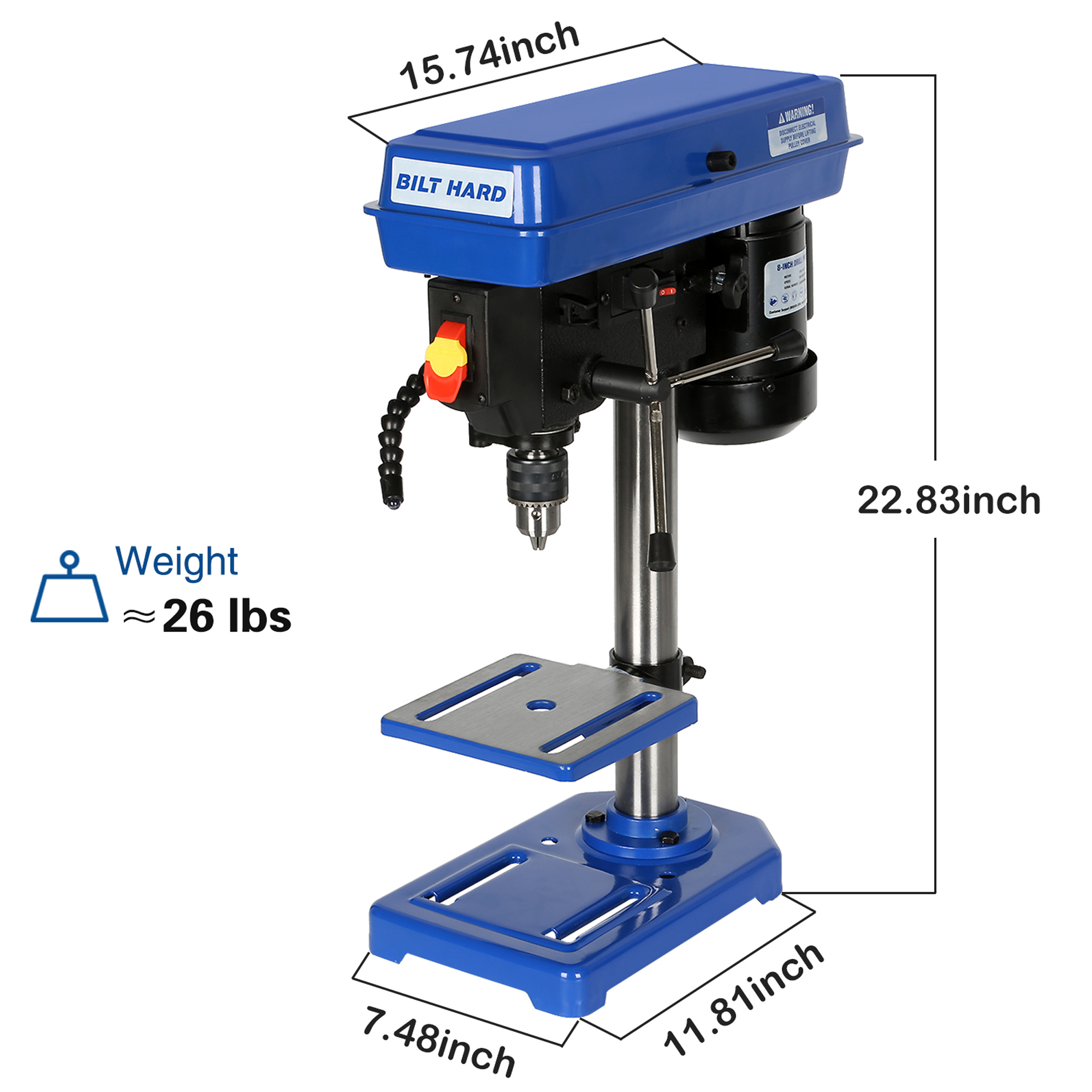 BILT HARD 8 inch 5-Speed Drill Press With Worklight, Benchtop Machine With Vise and Bit Set