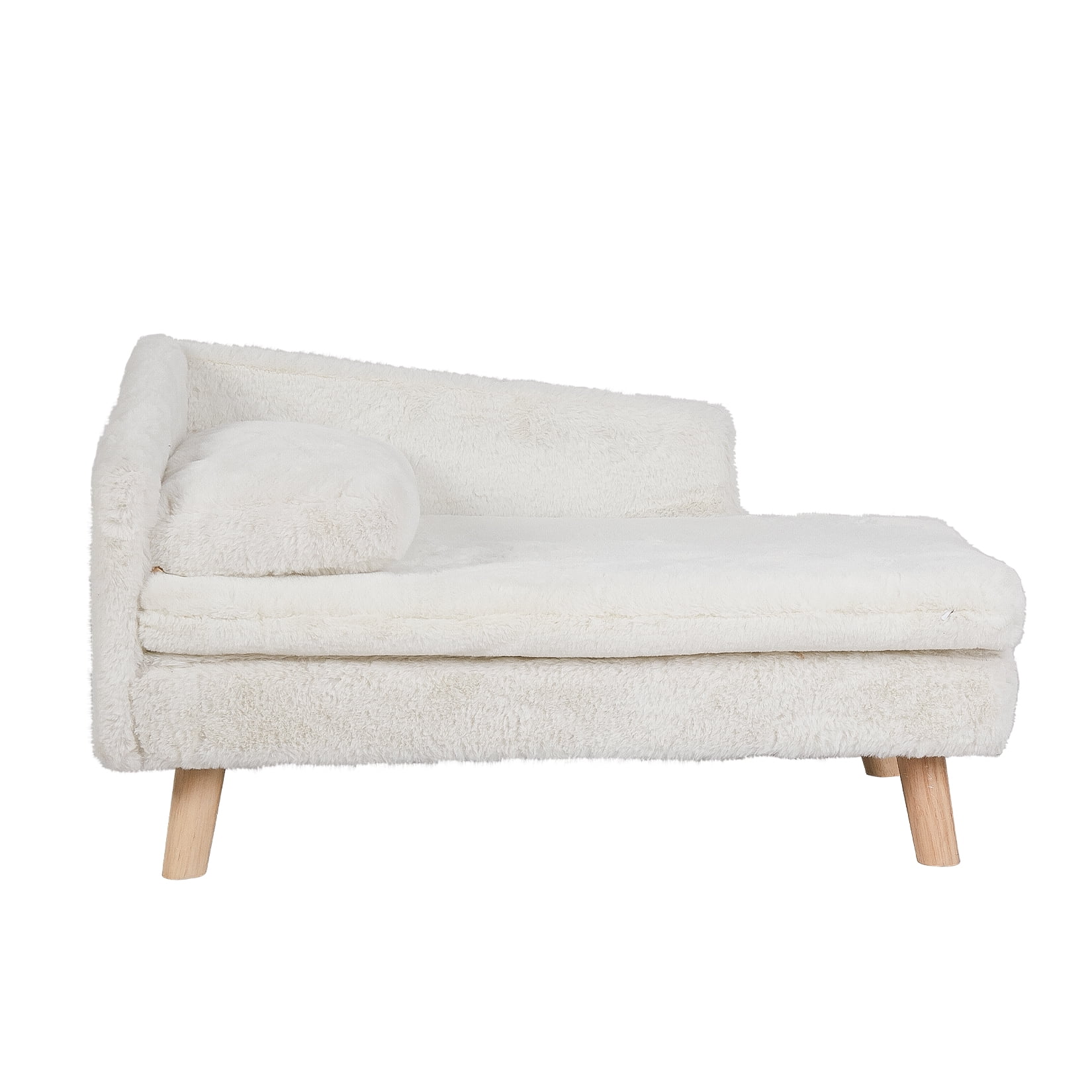 Cushion mattress and pillow are made of plush linter fabric, feels smooth and soft. Easy to clean the cover with zippers, waterproof function protects from liquid. L shape backrest, open space, Cats or dogs can stretch out while resting without limitation. Compared to a typical cat bed, it features a minimalist look and heavy duty sturdy wood frame. Easily tie pillow to the mattress using elastic band.