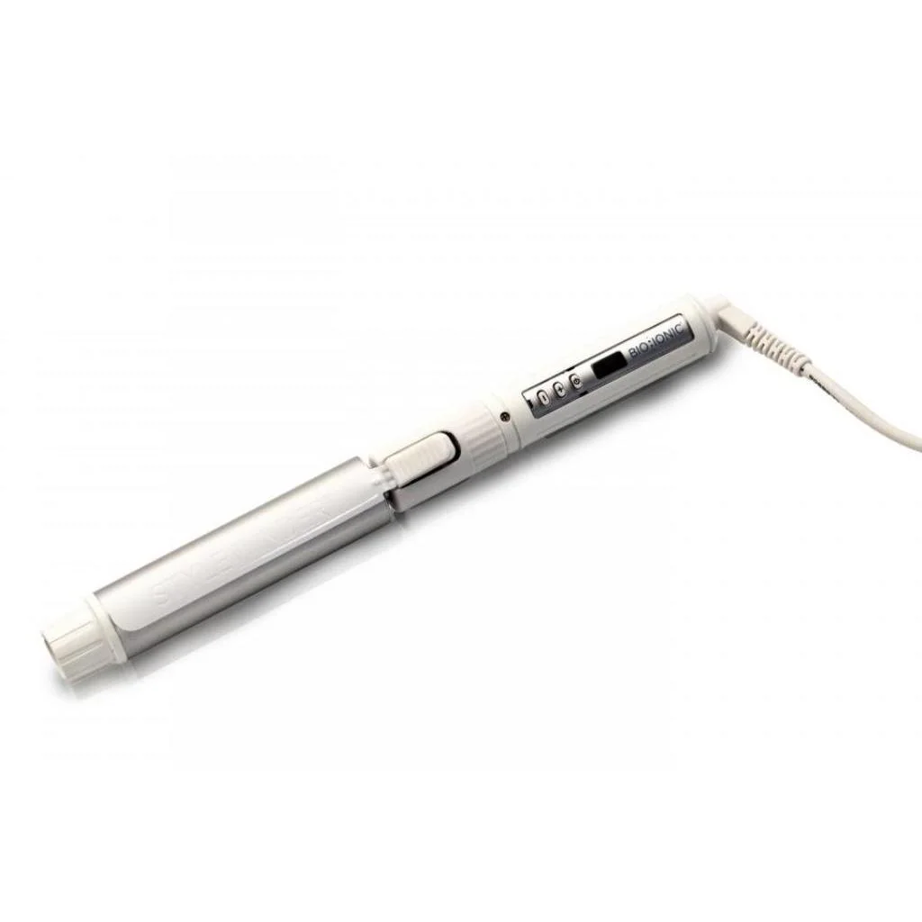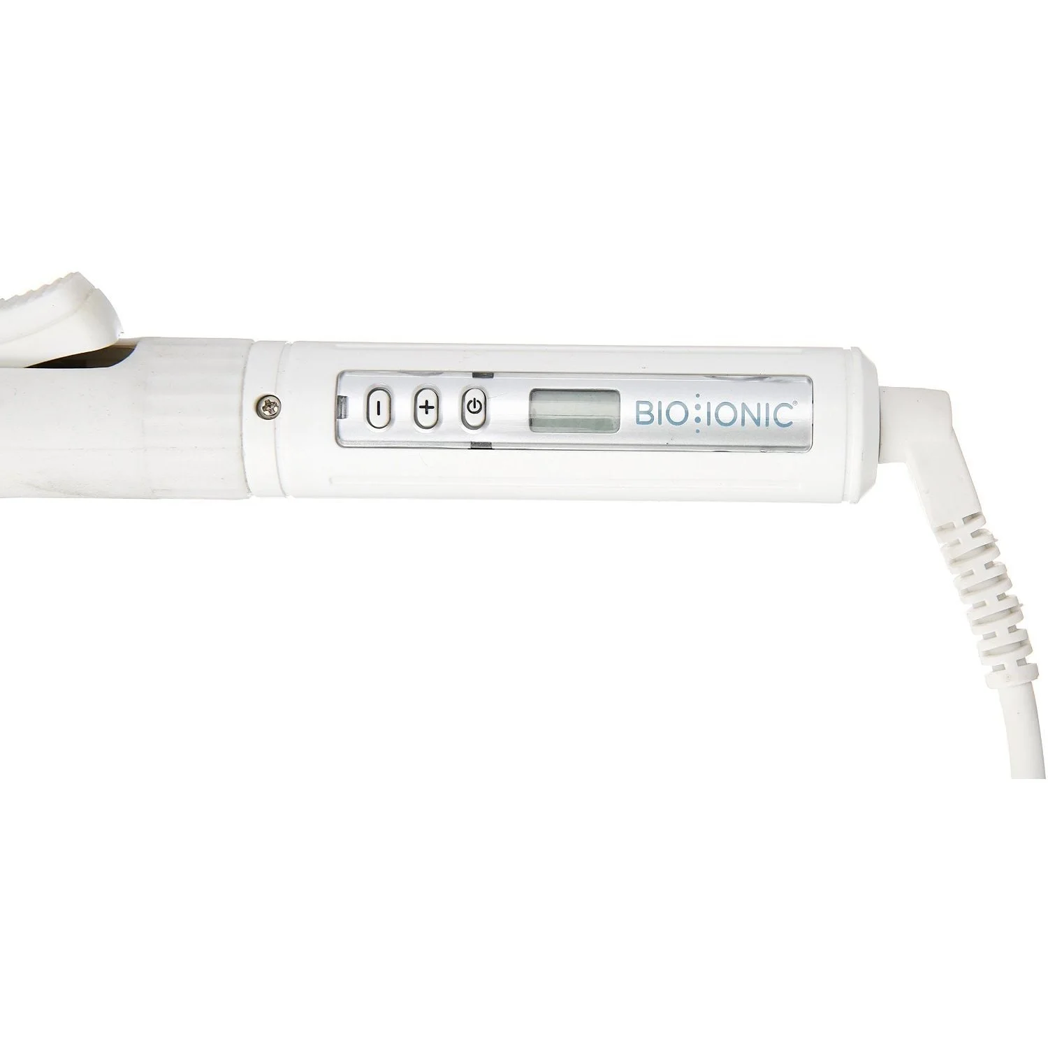 Get flawless curls and waves with the Bio Ionic Stylewinder Rotating Styling Iron that helps protect & hydrate your hair Unlike other hair styling irons that dry out your hair, this curling iron locks in moisture & conditions as you style Powered by NanoIonic MX, this ceramic curling iron deeply hydrates and leaves curls irresistibly soft, silky, and shiny With BioCeramic MCH Heater, this styling iron delivers consistent, even heat to reduce damage and create frizz-free curls This lightweight hair curler has a 9-ft swivel cord for maneuverability, & 1-hour auto shut-off feature for added safety Ceramic Mineral Complex gives smooth curls & features an ergonomic design with digital temperature control up to 440°F Whether you want tight ringlets, loose beachy waves, or something in between, this versatile hair styler delivers The patented rotating clamp design lets you create stunning styles with ease in three simple steps: clamp, wrap, & roll Craft beautiful, lasting styles with Bio Ionic without compromising your hair health, for smoother, softer, shinier hair