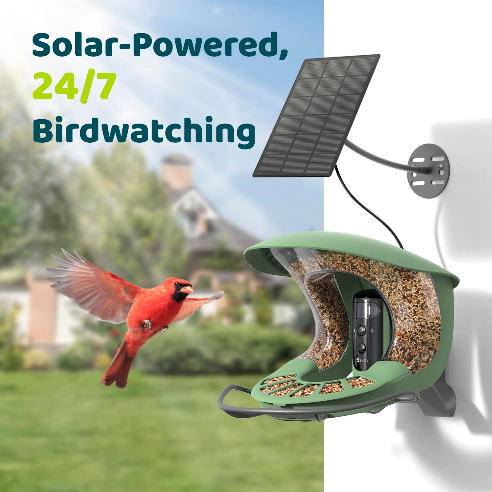 While the wide-angle lens captures video clips, the smart portrait lens automatically zooms in, sending feather-detailed bird photos straight to your device, making your backyard the goal of every birdwatcher