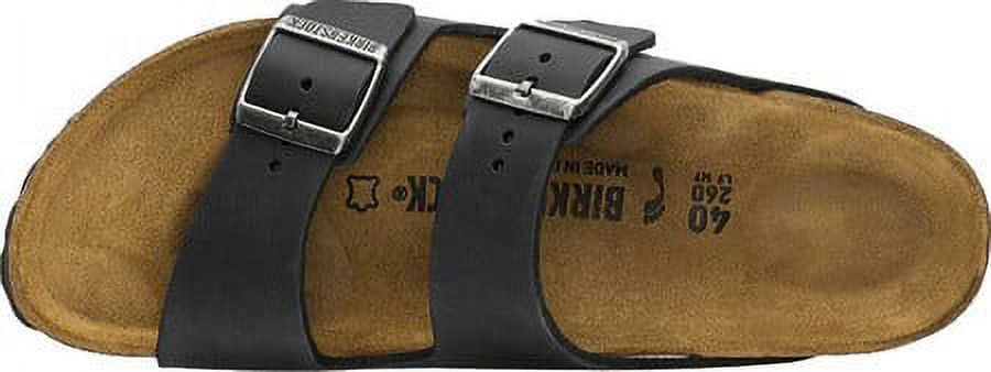 FEATURES of the Birkenstock Arizona SandalCork and latex footbed designed to mirror the shape of a healthy foot and provide a natural walking environmentMore toe room allowing toes to move naturally, which promotes better balance and correct foot alignment from toe to heelRaised toe bar encourages natural gripping motion of your feet, exercises the legs and stimulates circulationContoured footbed ensures even weight distribution and proper postureDeep heel cup cradles the heel and keeps natural cushioning right under the calcaneous (also known as the heel bone)Shock absorbing sole is flexible, durable, lightweight, repairable and replaceable, like almost every part of our shoesJute fibers made of two layers – one wicks away moisture, the other adds strengthCork footbed is firm and resilient for maximum supportFootbed Liner made of soft suede keeps your feet comfortable and dry