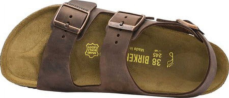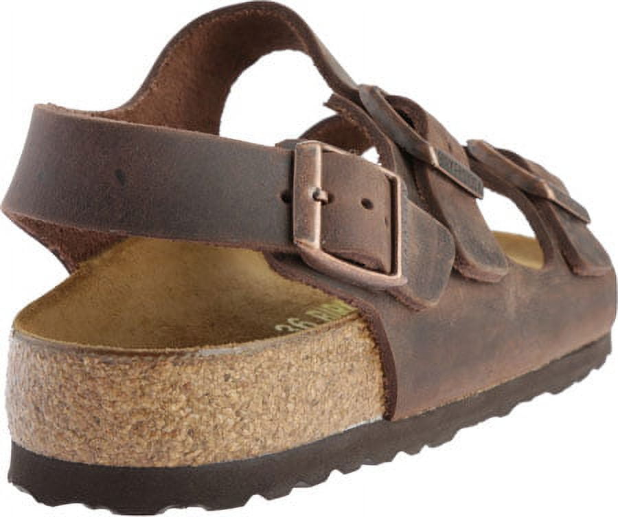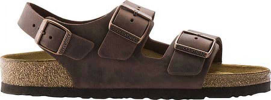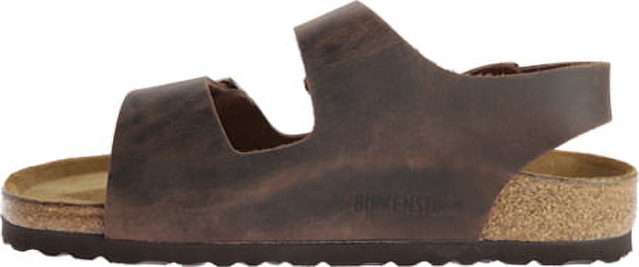 The Birkenstock Milano is our classic backstrap sandal. With high-quality materials and excellent craftsmanship. Shown in oiled leather. Anatomically shaped cork-latex footbed Upper: Oiled Leather Footbed Lining: Suede Sole: EVA Two straps and a backstrap with an individually adjustable metal pin buckle Made in Germany
