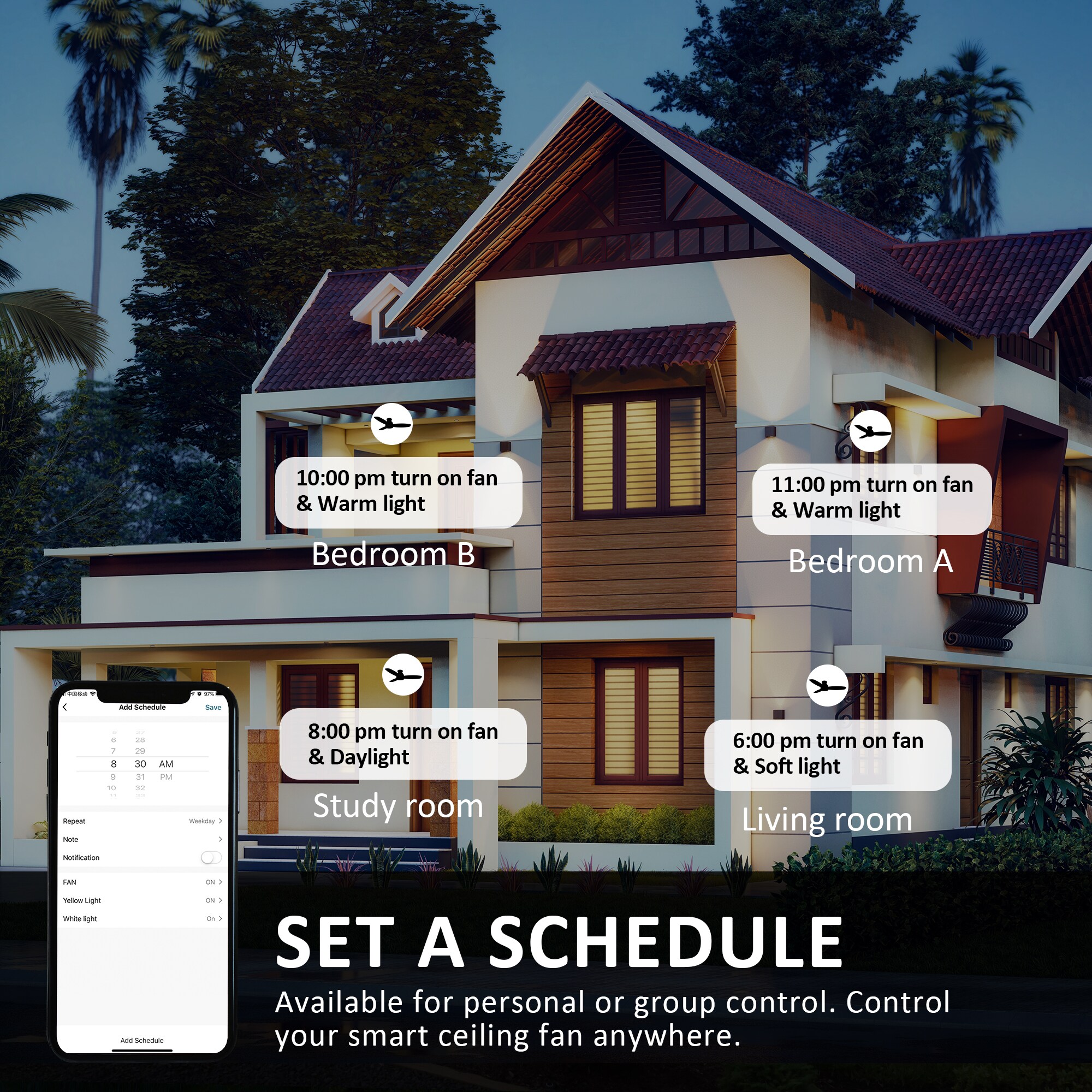 The Biscay 48-in smart ceiling fan offers a combination of cooling, illumination, and aesthetics, making it an ideal choice for spacious indoor living areas. With its sleek design and Black finish, this Wifi-enabled smart ceiling fan showcases a blend of simplicity and elegance. It incorporates elegant Plywood blades and has an Integrated 4000K LED daylight, enhancing both functionality and style. The fan provides convenient features such as a Remote control, Wi-Fi apps, Siri Shortcut compatibility, and Voice control technology, making it compatible with Amazon Alexa and Google Home Assistant for effortless fan customization.