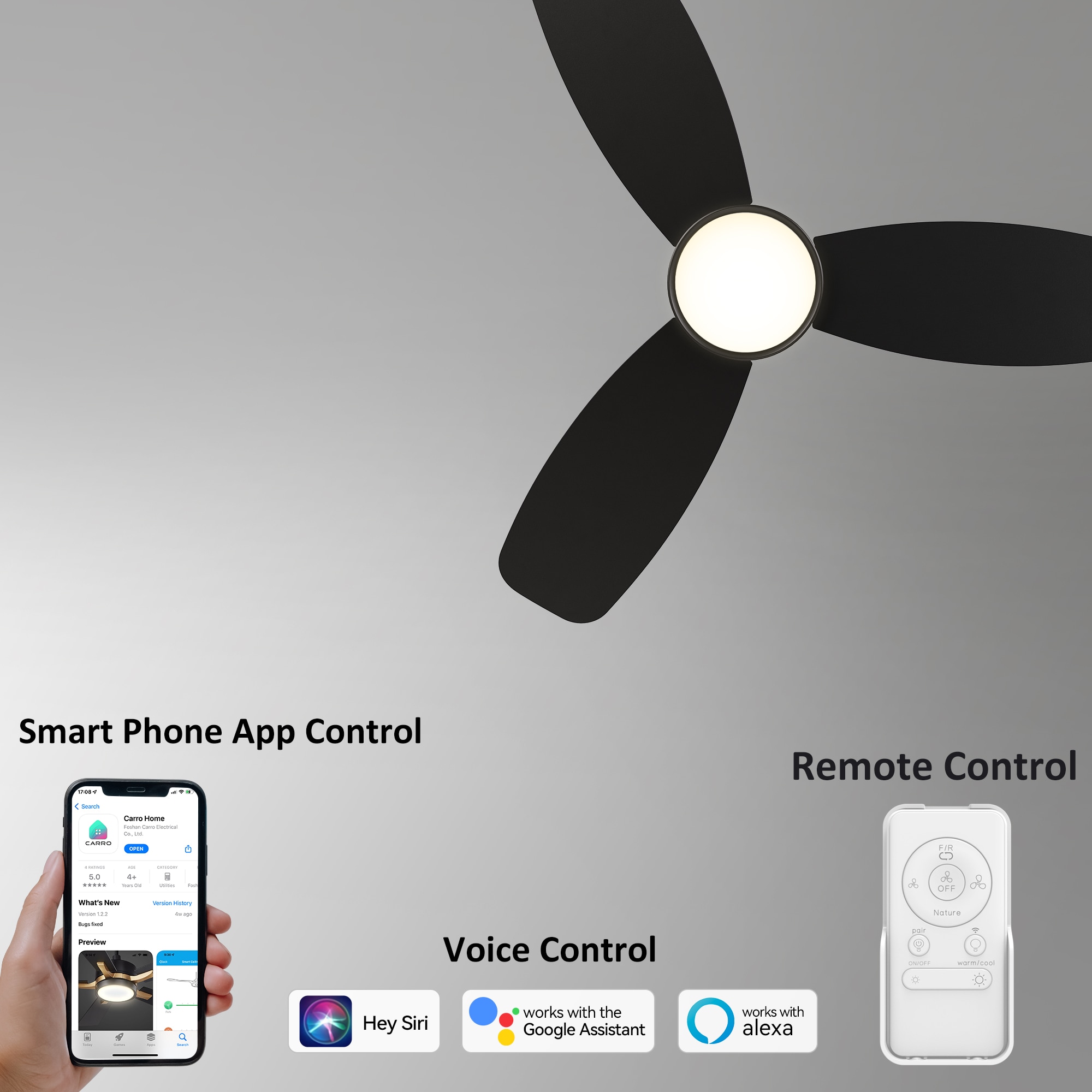 Biscay 48-in Integrated LED Outdoor Flush Mount Smart Black with Black Blades Ceiling Fan With Light – Remote Included ( 3 -Blade )