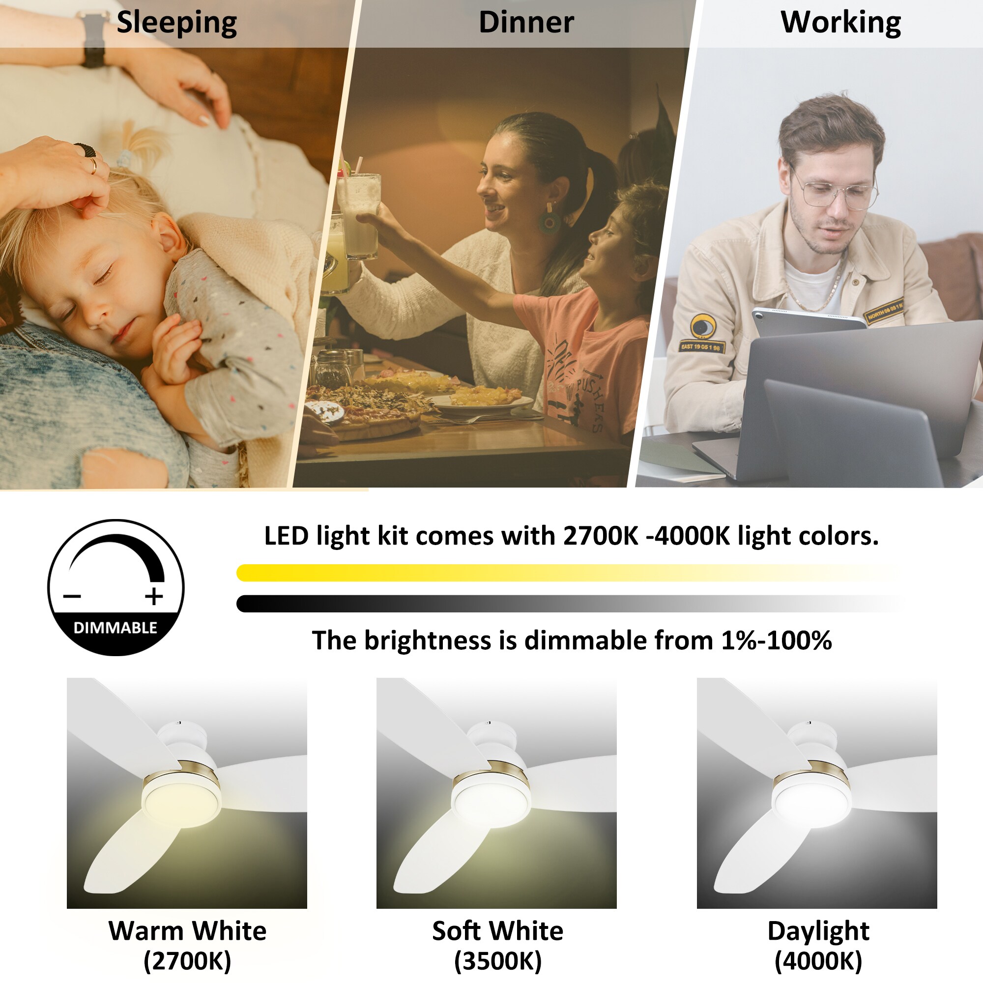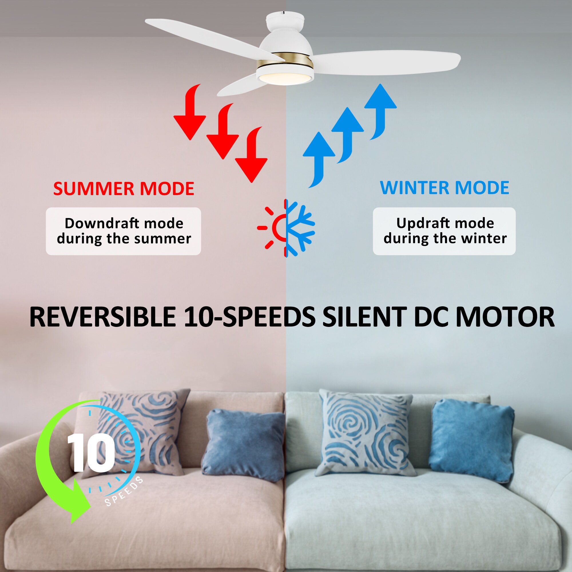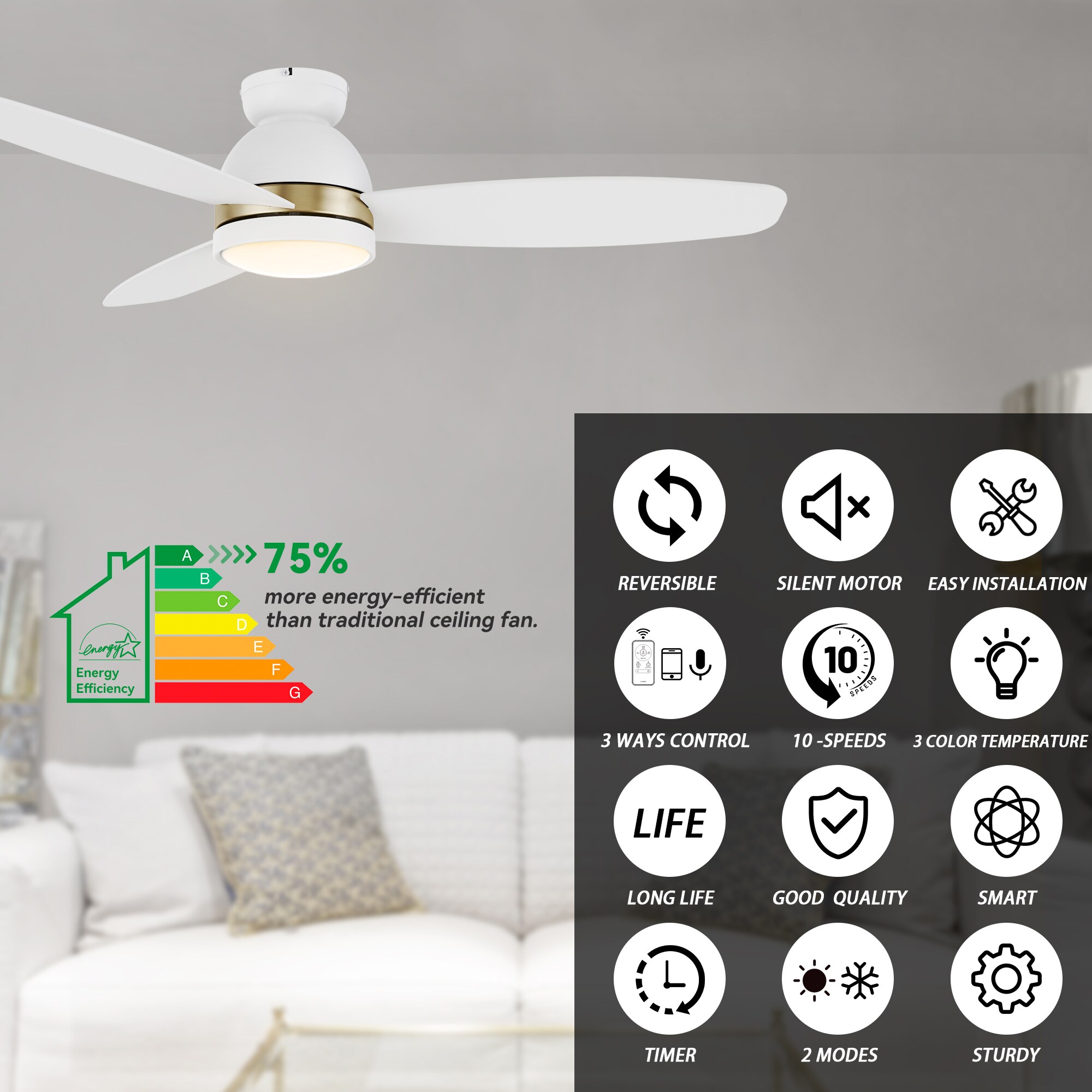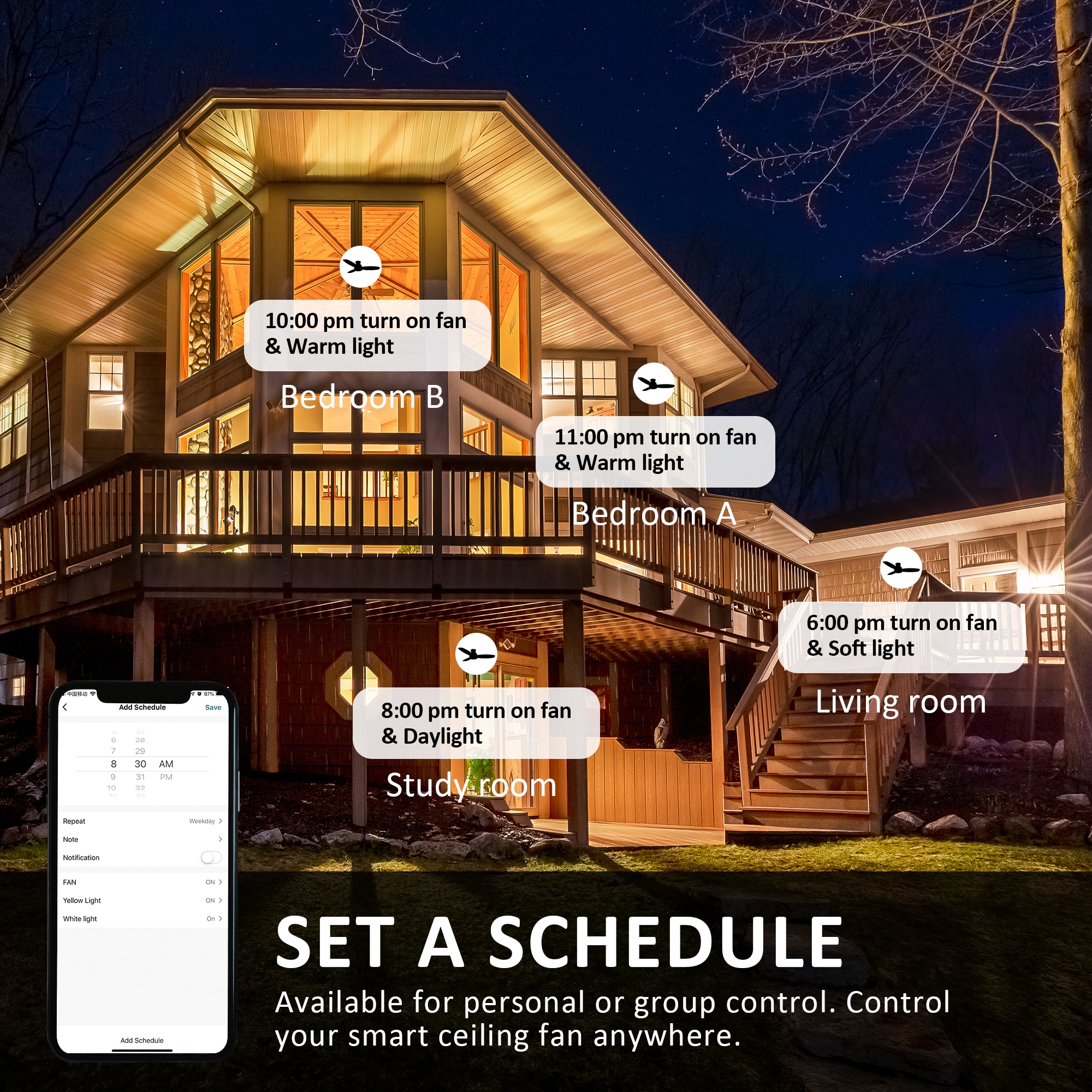 The Biscay 52-in smart ceiling fan offers a combination of cooling, illumination, and aesthetics, making it an ideal choice for spacious indoor living areas. With its sleek design and White finish, this Wifi-enabled smart ceiling fan showcases a blend of simplicity and elegance. It incorporates elegant Plywood blades and has an Integrated 4000K LED daylight, enhancing both functionality and style. The fan provides convenient features such as a Remote control, Wi-Fi apps, Siri Shortcut compatibility, and Voice control technology, making it compatible with Amazon Alexa and Google Home Assistant for effortless fan customization.