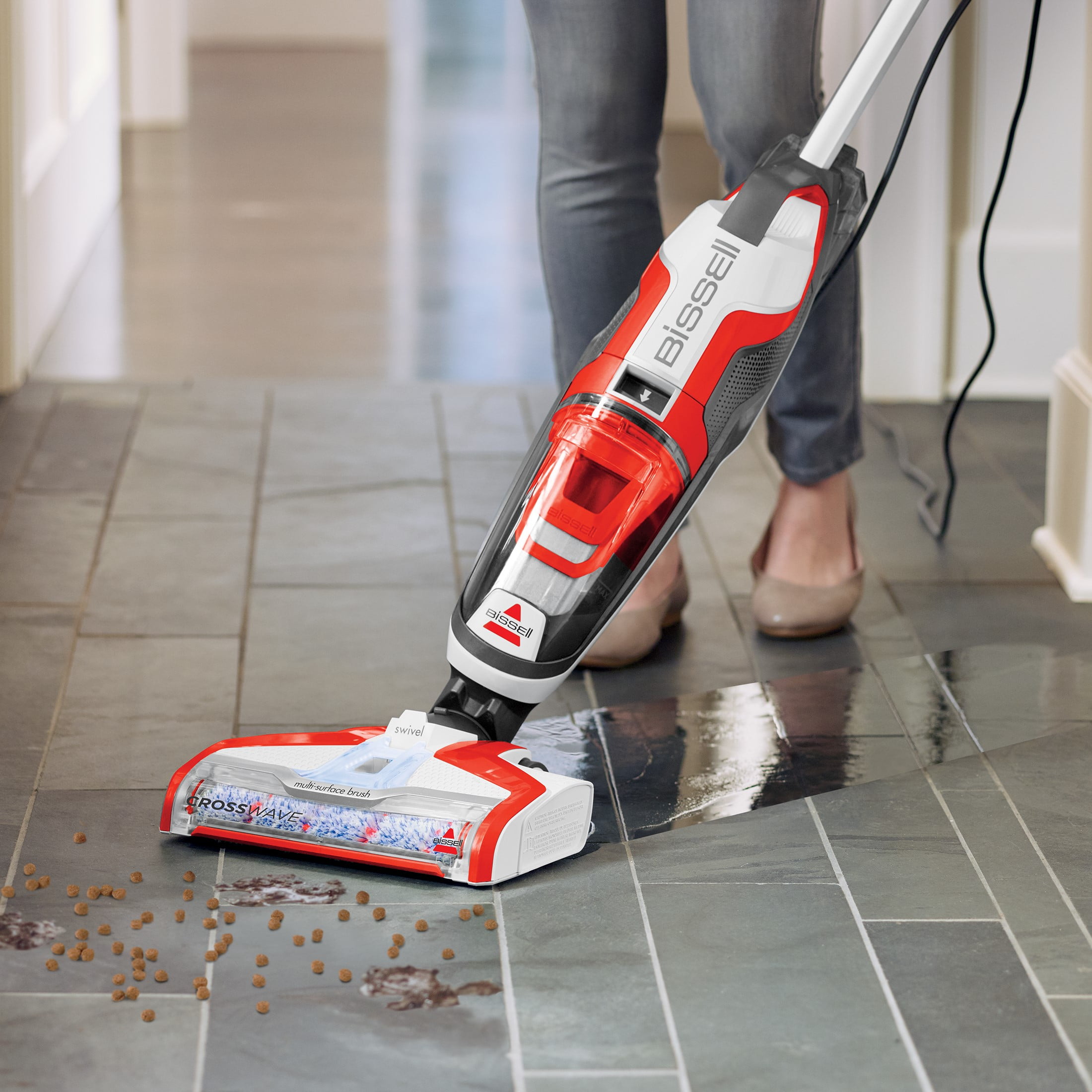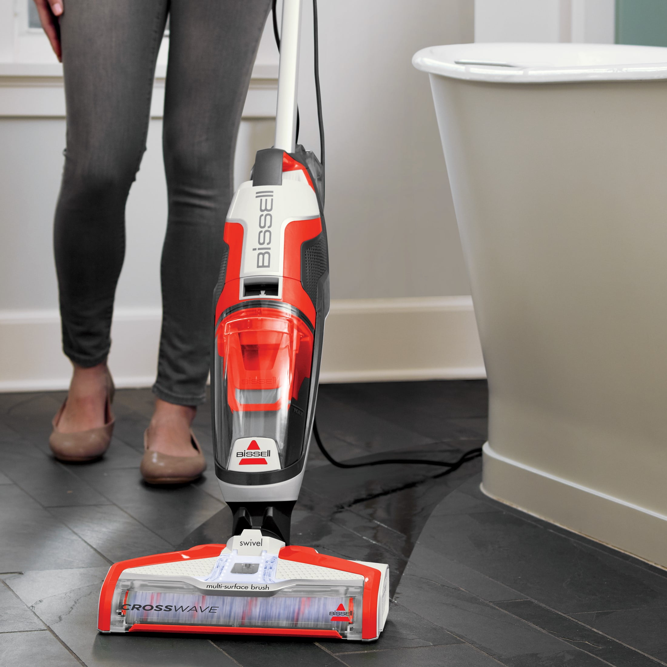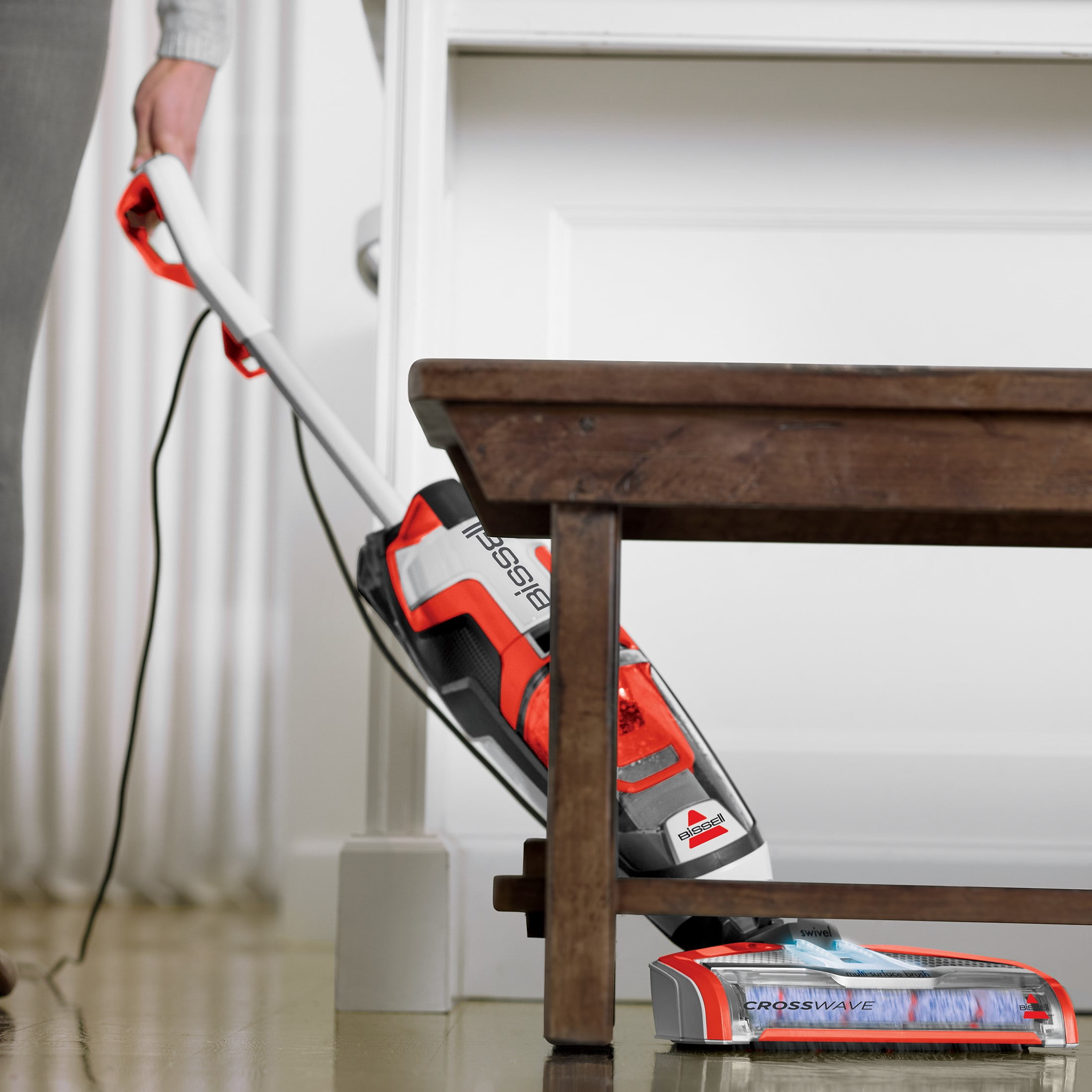 Get your hard floors cleaner than you could have ever imagined! The BlSSELL?? CrossWave?? is a revolutionary, all-in-one, multi-surface cleaning system that vacuums and washes floors at the same time. With a Dual-Action Brush Roll and an innovative multi-surface cleaning solution, the CrossWave?? cleans better than a sponge mop and bucket, in less time*. Plus, with the touch of a button, you can seamlessly switch from cleaning hard floors to vacuuming and washing your area rugs. All with one machine.