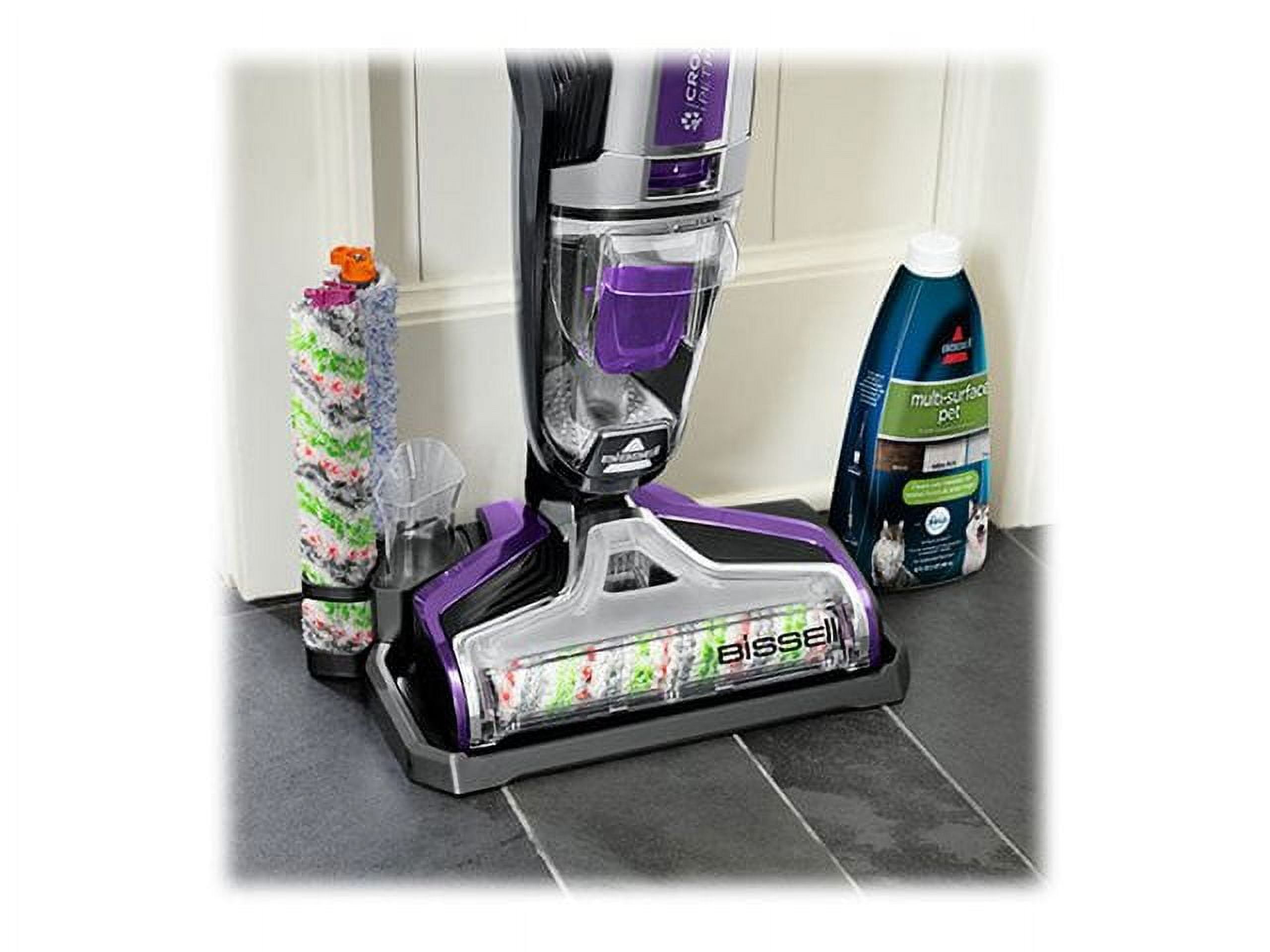The Bissell CrossWave Pet Pro Multi-Surface Cleaner vacuums and washes floors at the same time and in one easy step The Tangle-Free Pet Brush Roll and innovative multi surface pet formula allow the CrossWave Pet Pro to clean better than a sponge mop and bucket in less time. The Tangle-Free Brush Roll scrubs to remove debris and minimizes annoying pet hair wrap. You can seamlessly switch between cleaning hard floors to area rugs by the Fingertip Controls, while delivering the right amount of formula to your floors with the On-Demand Formula Trigger. The Bissell CrossWave Pet Pro is safe for tile, sealed wood floors, laminate, linoleum, rubber floor mats, pressed wood floors, area rugs, and more. Two-Tank Technology keeps the cleaning solution separate from the dirty water to ensure a fresh mix of formula and water is always being used to clean your floors. The included pet multi-surface with Febreze formula helps eliminate pet odors, so you will not need to ask the question “how do I remove pet odors from my floor?” After cleaning, the Pet Hair Strainer separates pet hair and large debris from the dirty water in your dirt tank, so hair and debris can be disposed into the garbage and not down your sink. The special Rinse and Clean Out Storage Tray helps you easily clean the machine out after use and store the brush rolls for next time The Crosswave Pet Pro is truly a groundbreaking multi-floor cleaner that is a must-have for homes with or without pets. Bissell proudly supports Bissell Pet Foundation and its mission to help save homeless pets. When you buy a Bissell pet product, you help save pets, too. We’re proud to design products that help make pet messes, odors and pet homelessness disappear. Tested with hair length up to 8 inches. Measured by BTP0257 hard floor soil cleaning test. Certain trademarks used under license from the Proctor and Gamble company or its affiliates.