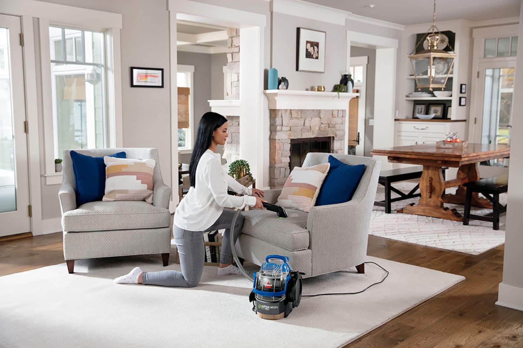 The BISSELL Little Green Pet Pro Portable Carpet Cleaner is our most powerful spot and stain cleaner for pets! It uses a combination of superior suction, scrubbing action and specially formulated BISSELL cleaning solutions to remove spots, stubborn stains and embedded dirt. This compact, 13-pound machine is easy to take to hard-to-reach areas, so you can remove spots and stains from carpets, area rugs, stairs, upholstery, auto interiors, and similar soft surfaces. This portable carpet cleaner comes with a Pet Stain Tool, 3″ Tough Stain Tool, Spraying Crevice Tool, and one trial-size bottle of our PET PRO OXY Urine Eliminator formula to permanently remove tough pet stains. And it doesn’t just clean up after pets, this machine helps save them, too! BISSELL proudly supports BISSELL Pet Foundation and its mission to help save homeless pets. When you buy a BISSELL product, you help save pets, too. We’re proud to design products that help make pet messes, odors and pet homelessness disappear.